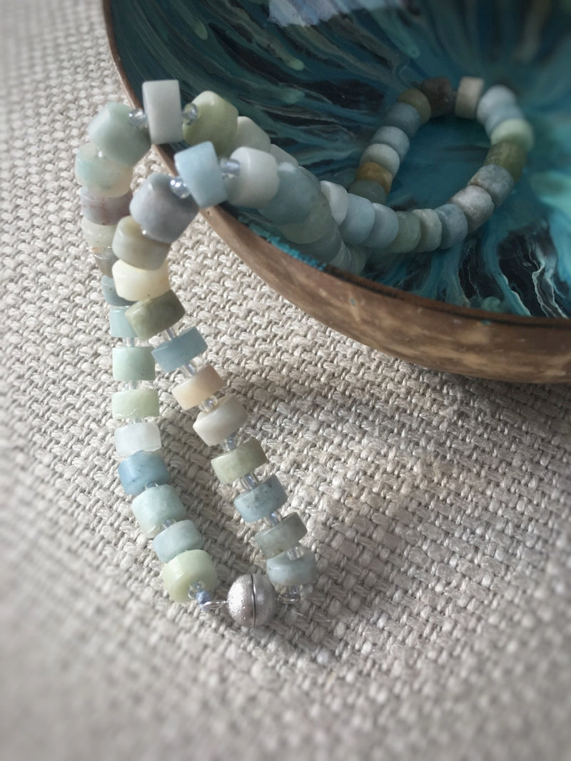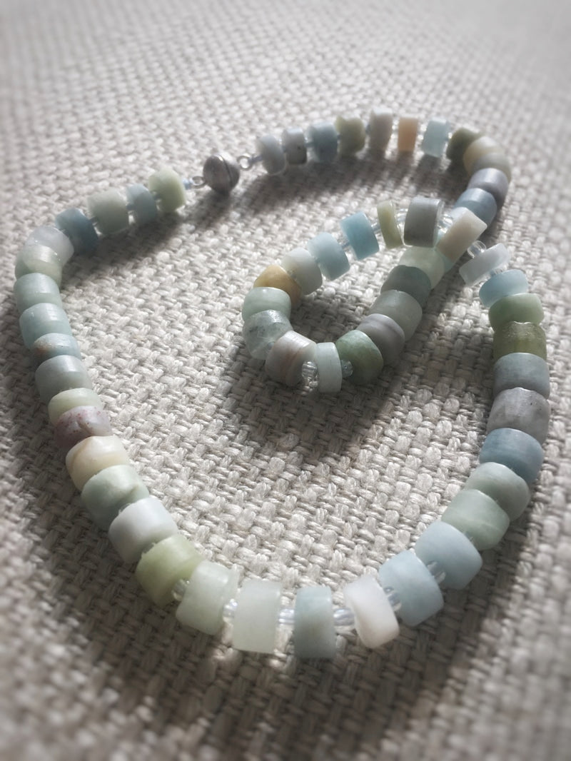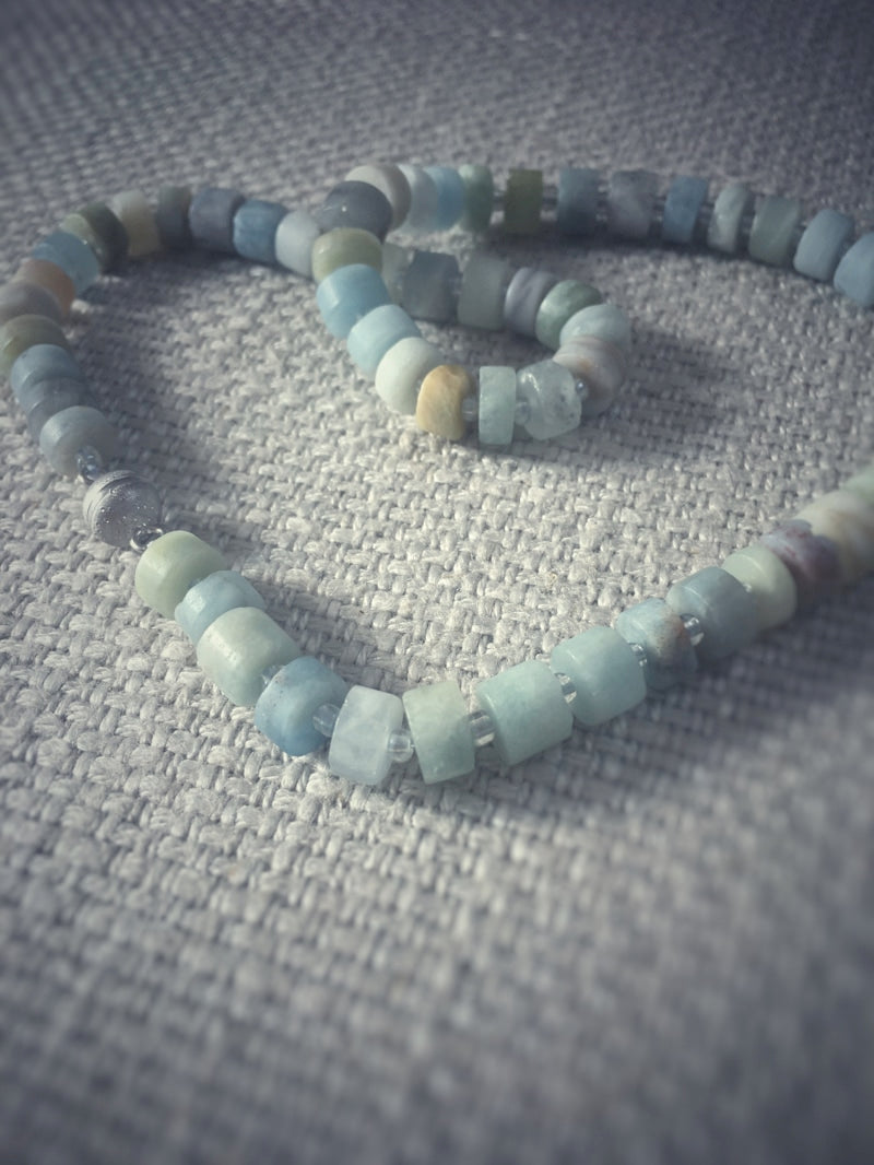 Ausgefallene Kette aus Scheiben von mattem Aquamarin