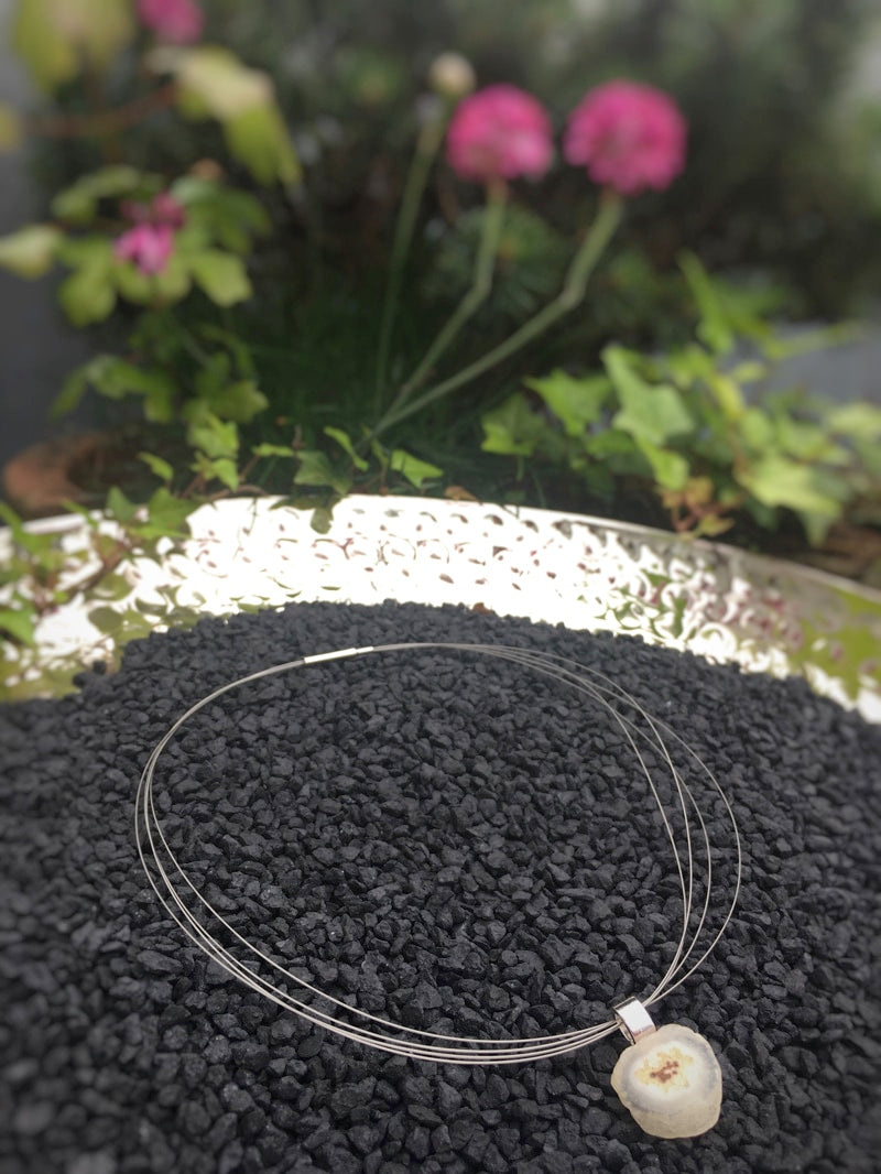 Hübsche Achatdruse auf silberfarbenem Stahlreif mit Drehverschluss