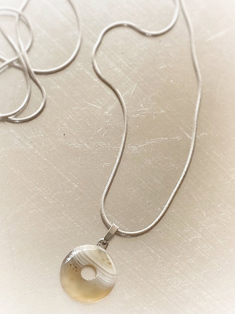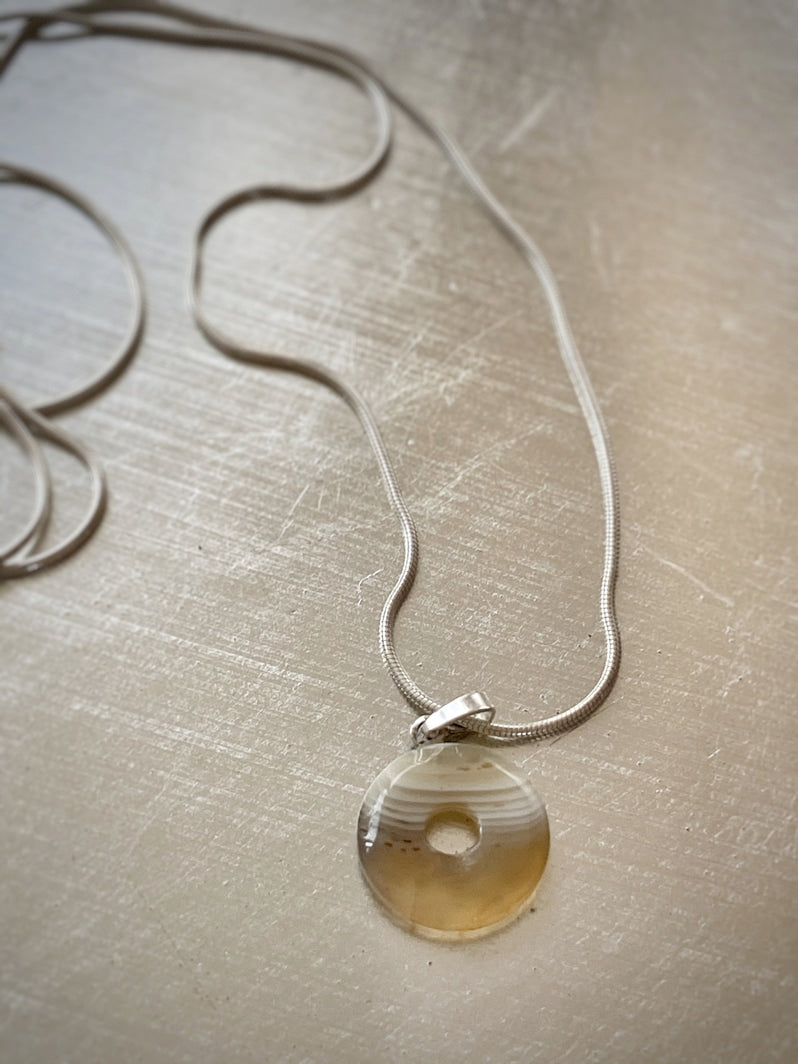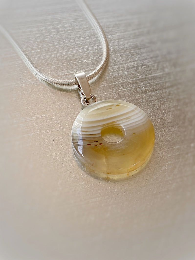 Feiner Achat-Donut in Natur-Farbtönen an silberner Schlangenkette