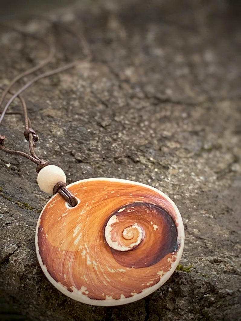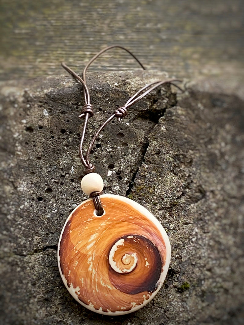 Braunes Lederband mit Shiva's Auge und Holz-Zierperle, mit Schiebeknoten in der Länge regulierbar