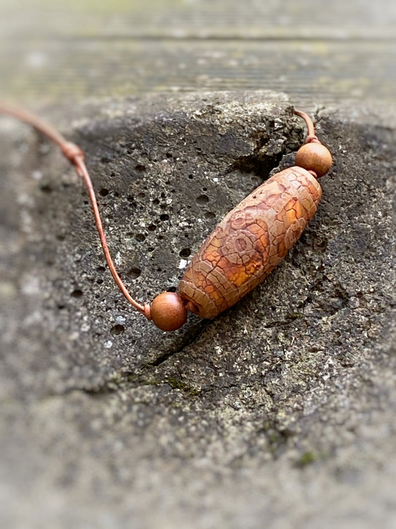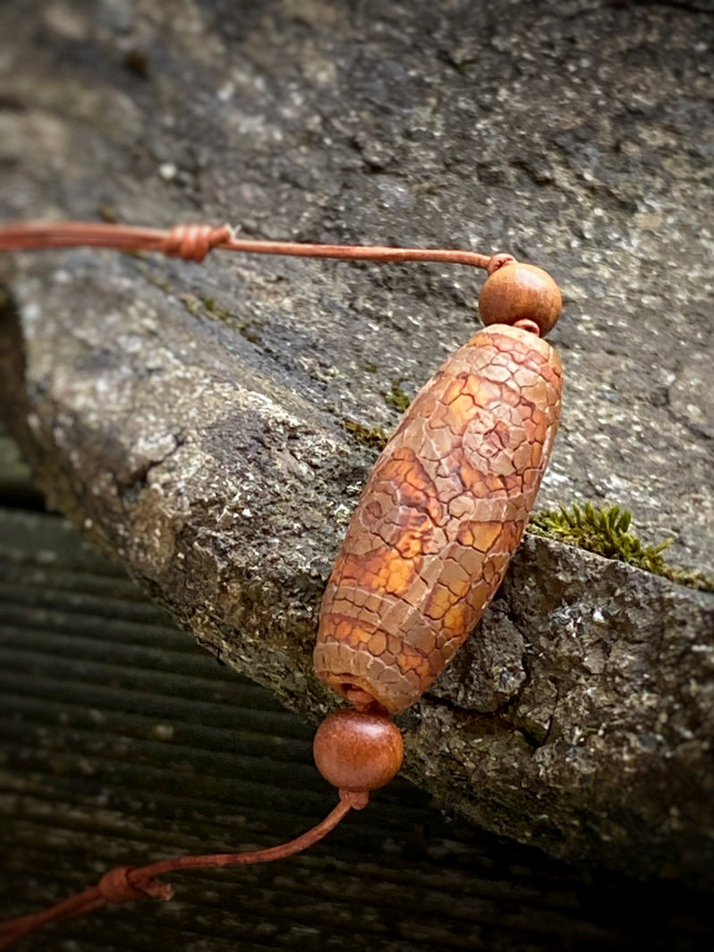 Braunes Lederband mit tibetischer Achat-Trommel und Holzperlen, mit Schiebeknoten in der Länge regulierbar