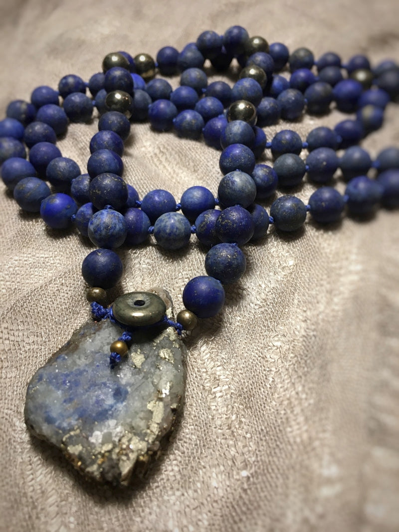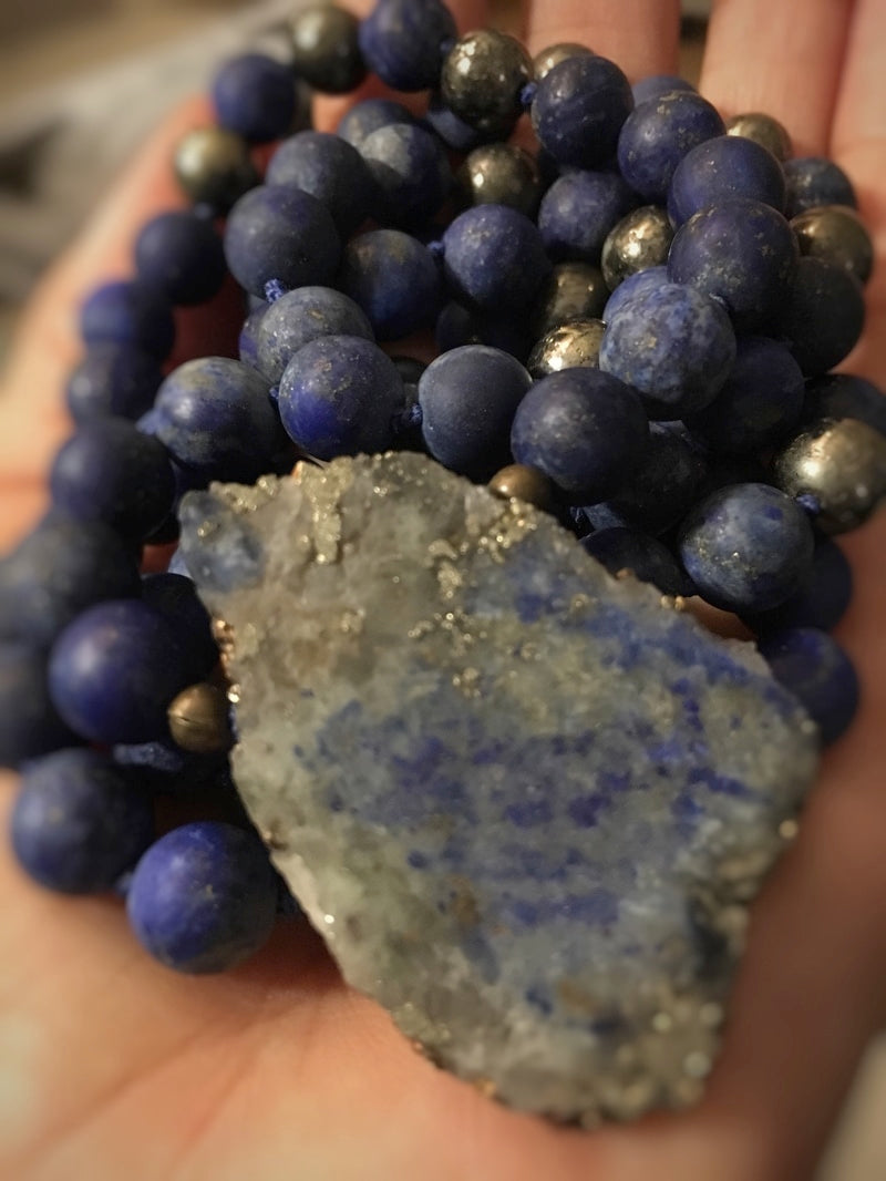 Abschluss: Lapislazuli-Scheibe mit natürlichem Pyritmantel