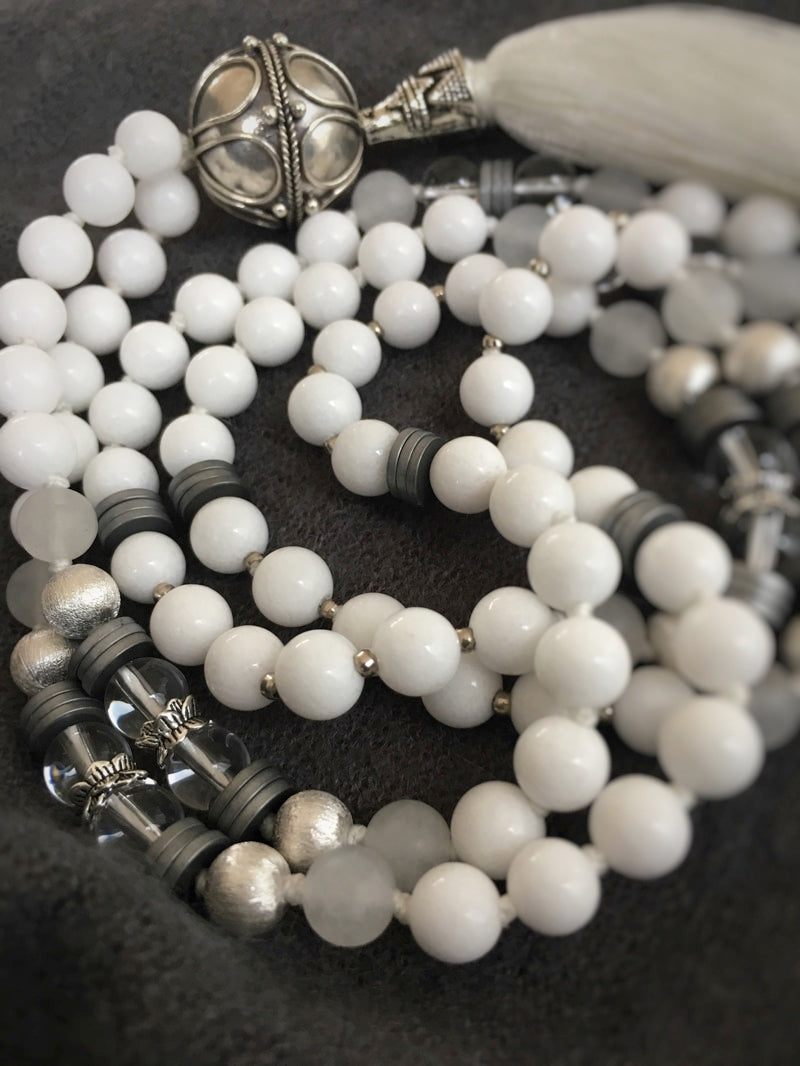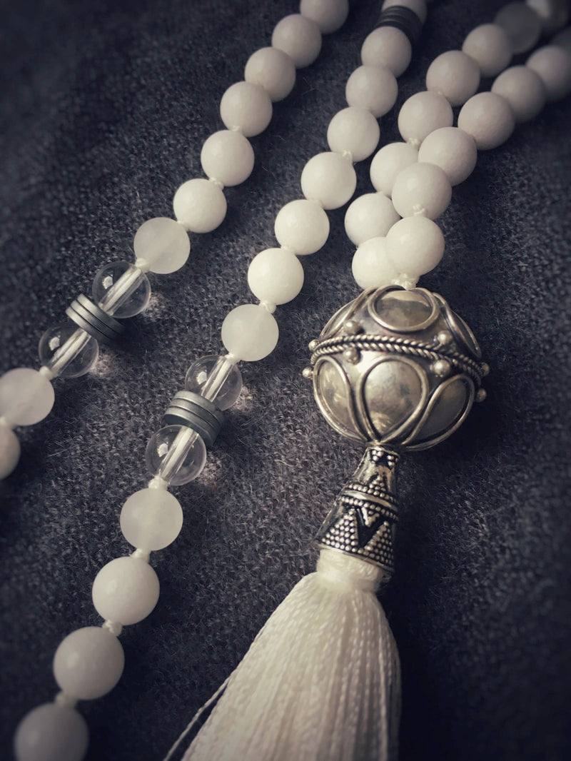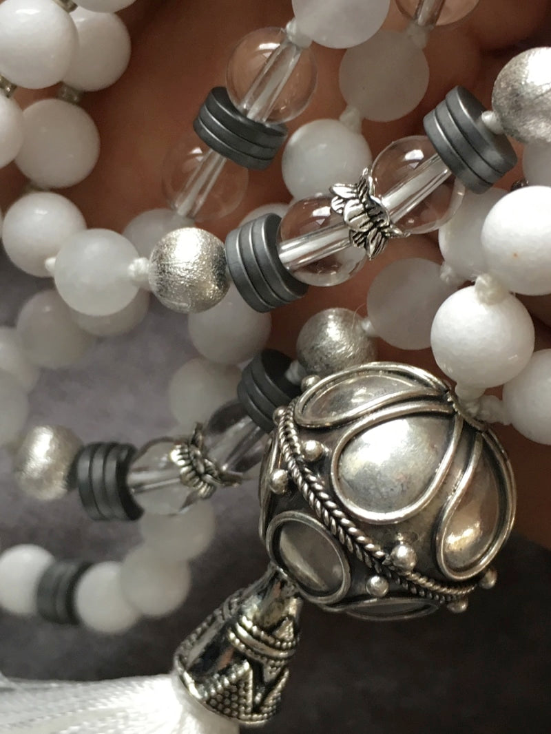 Marker: Echtsilber-Perlen, Bergkristall mit Perlkappen und Hämatitscheiben