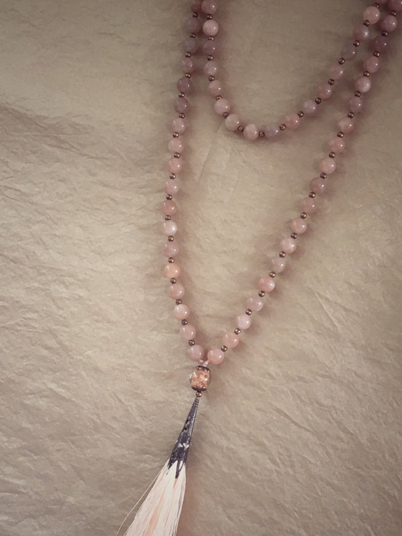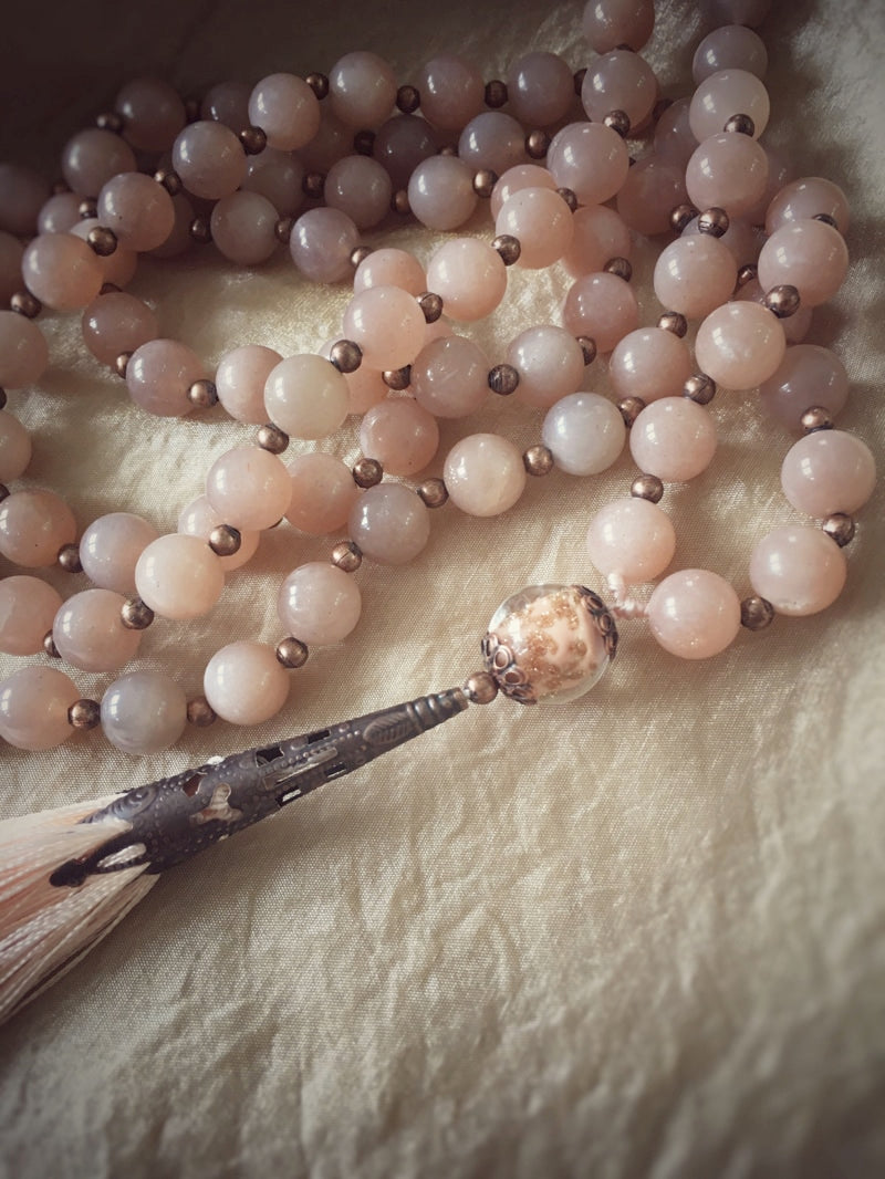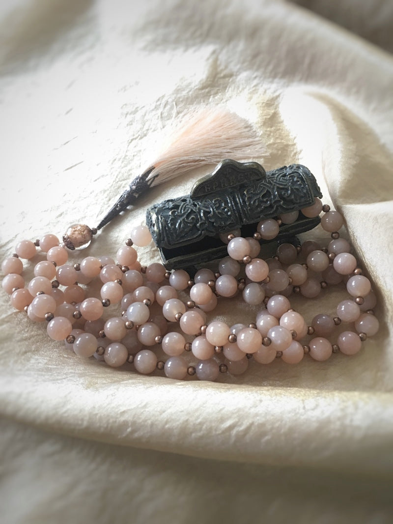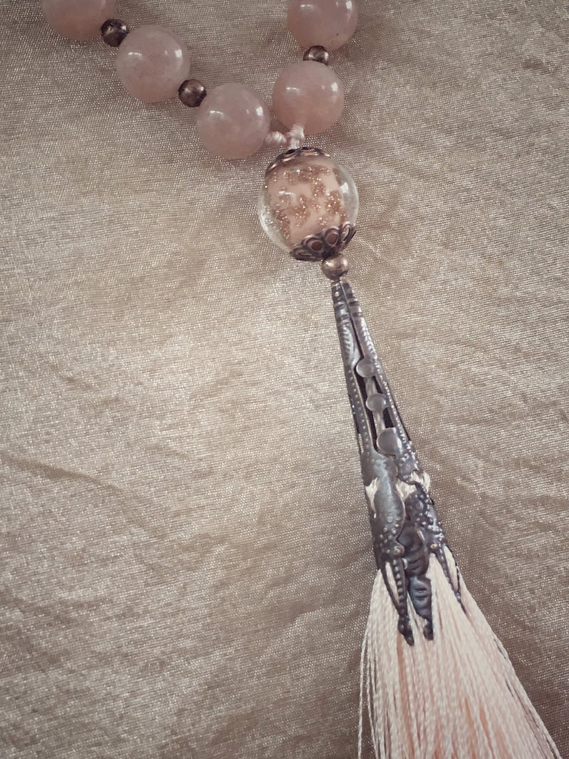 Abschluss: Lachsrosa Quaste mit filigraner Kupferkappe