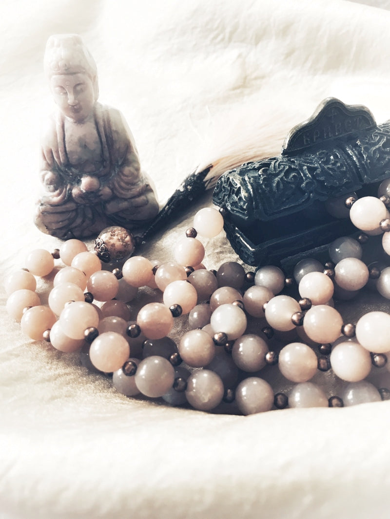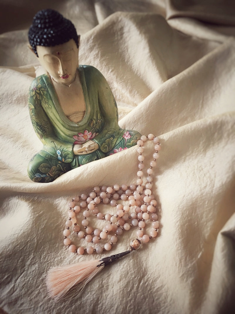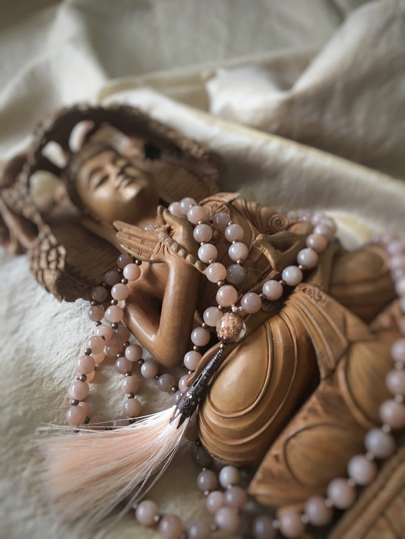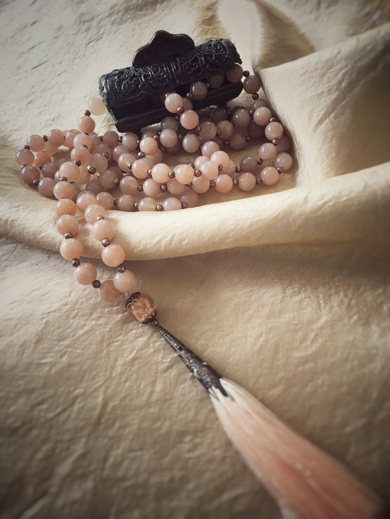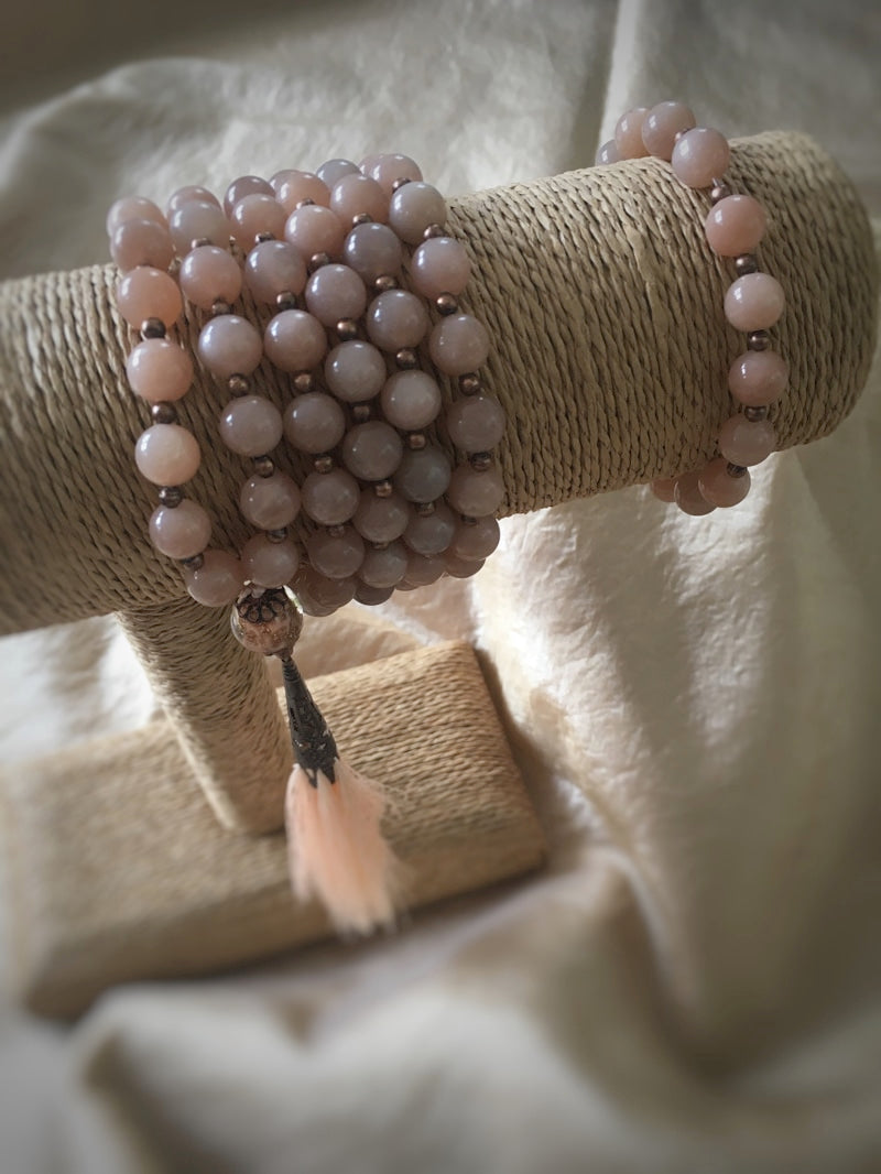 Abschluss: Lachsrosa Quaste mit filigraner Kupferkappe