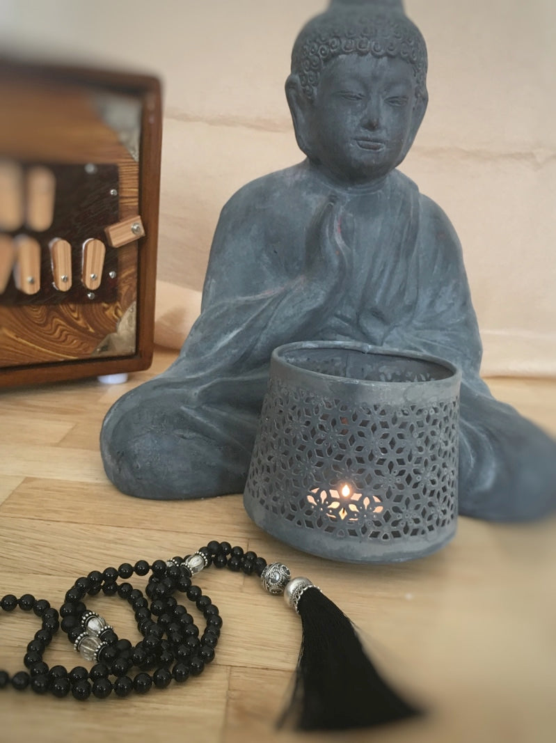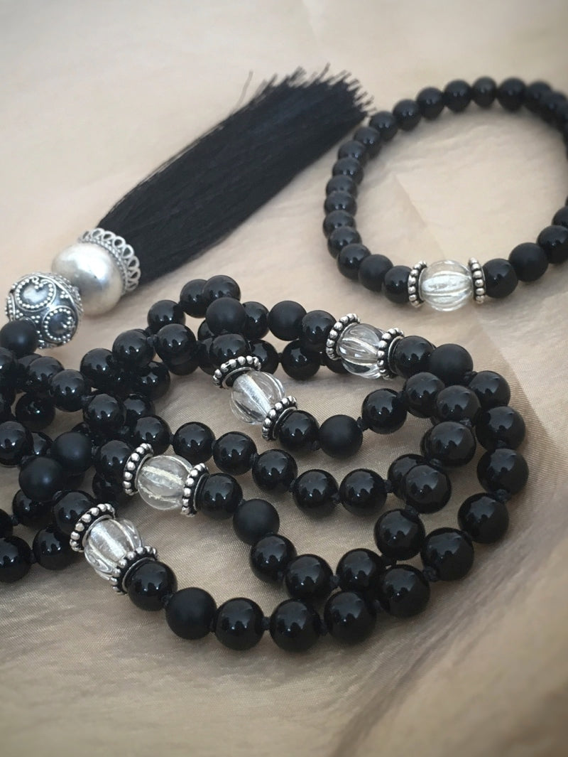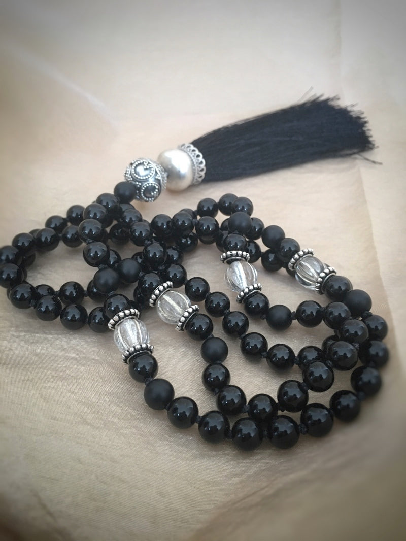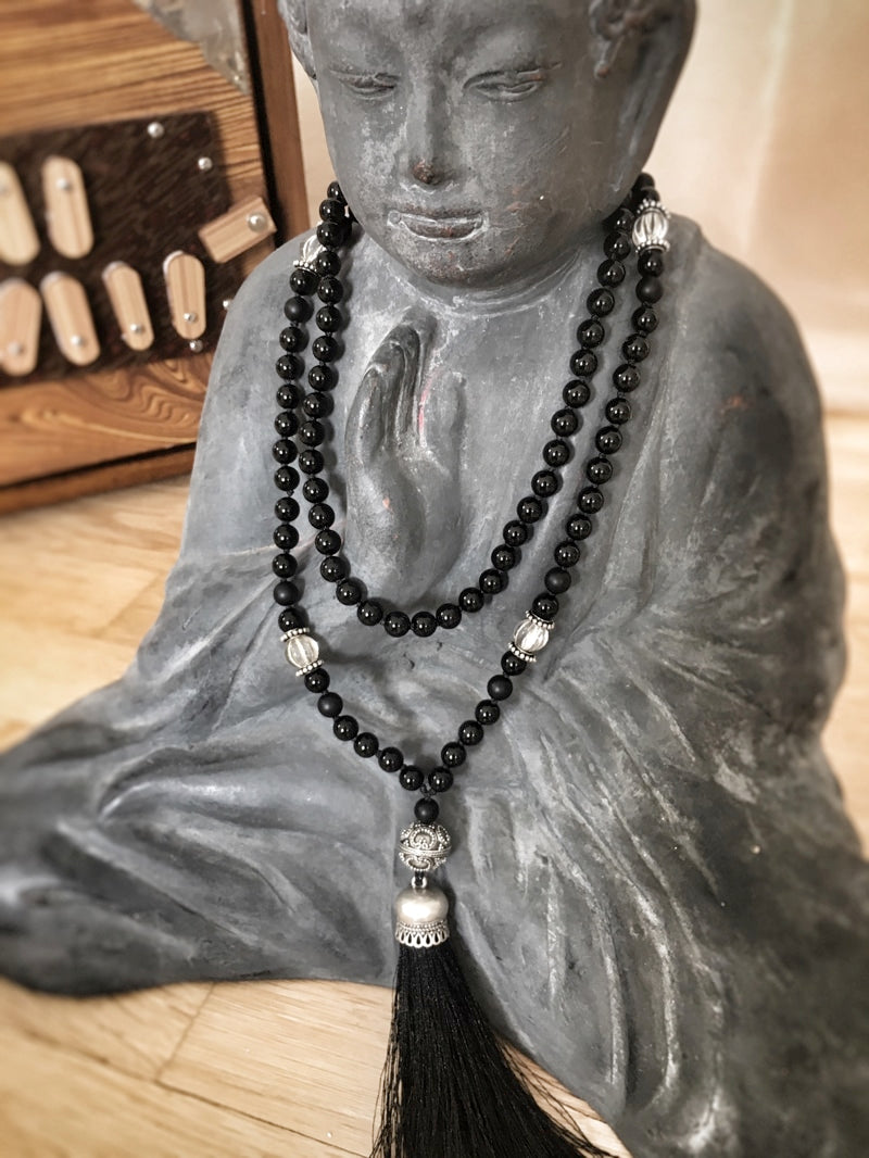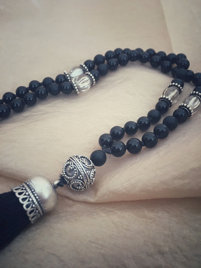 Guru-Bead: Echt-Silber Bali-Perle mit schwarzer Quaste