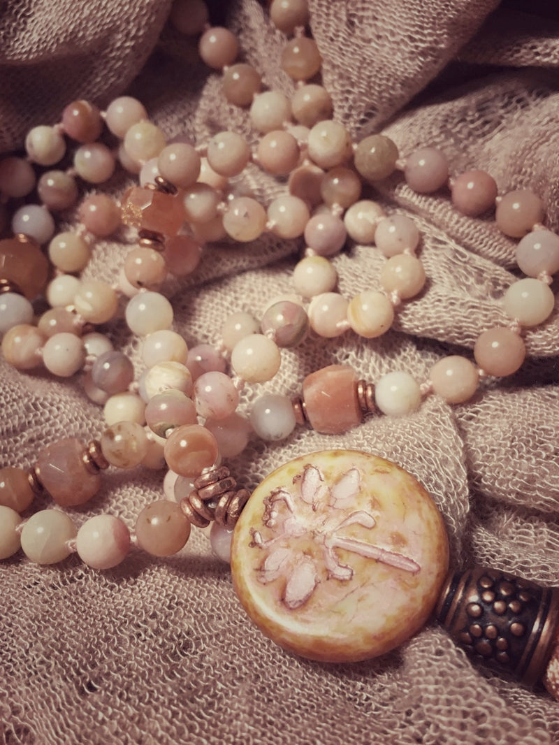 Herrlich ursprüngliche Opal-Perlen aus den Anden kombiniert mit äthiopischem Kupfer und facettiertem schimmerndem Mondstein