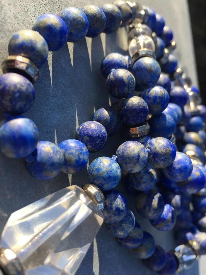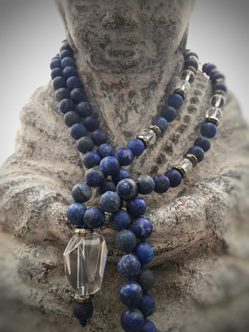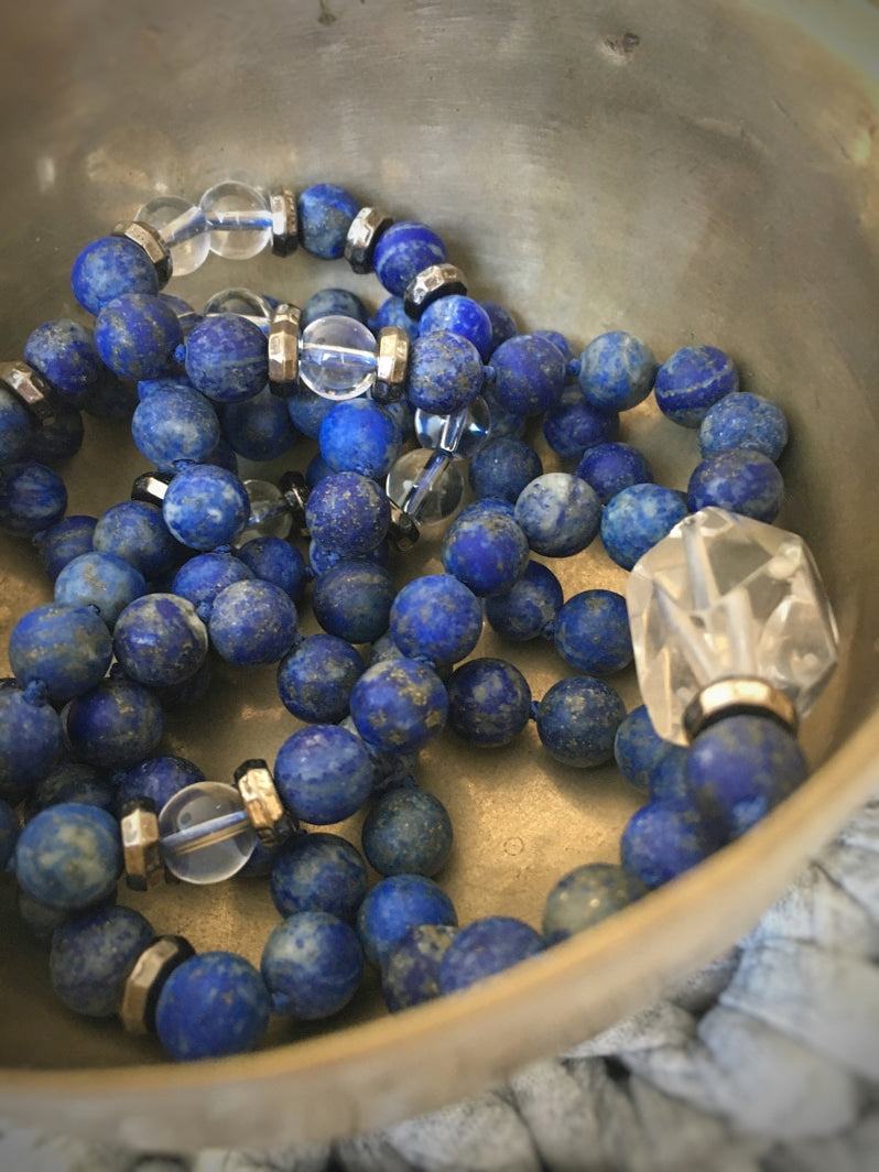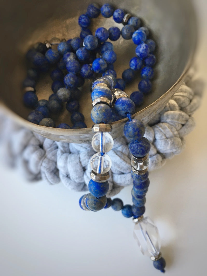 Wunderschöne Mala mit Lapislazuli und Bergkristall