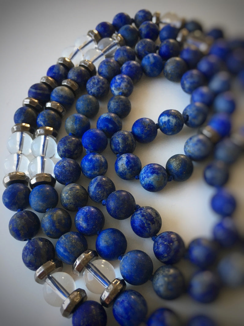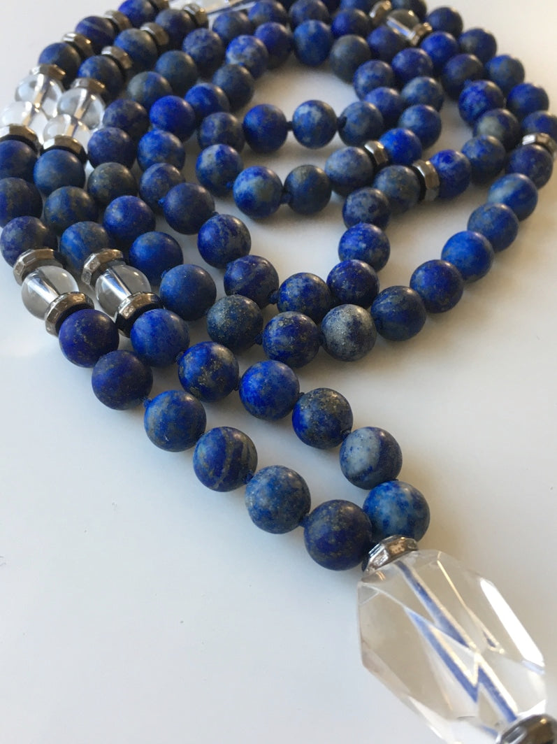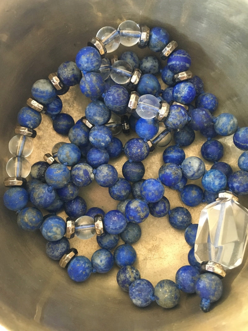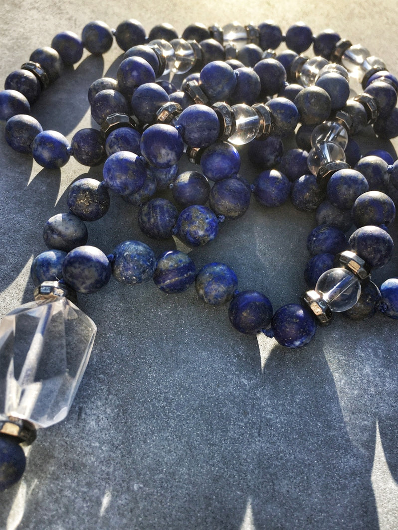 Wunderschöne Mala mit Lapislazuli und Bergkristall
