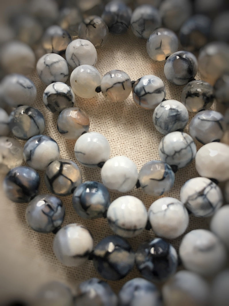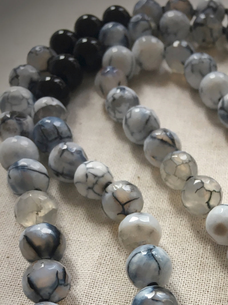 Perlen: Spinnennetz-Achat, 8mm, facettiert und Onyx, 8mm, glanz