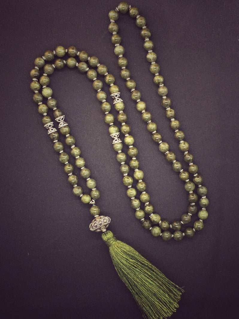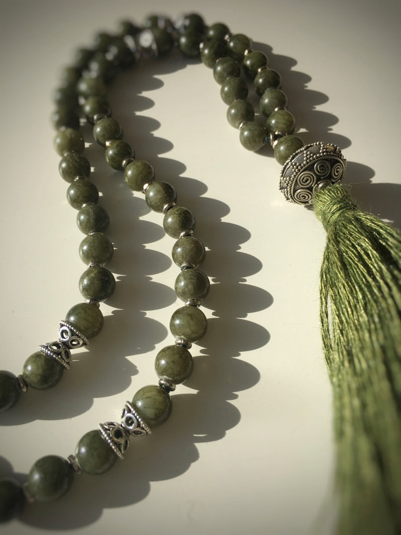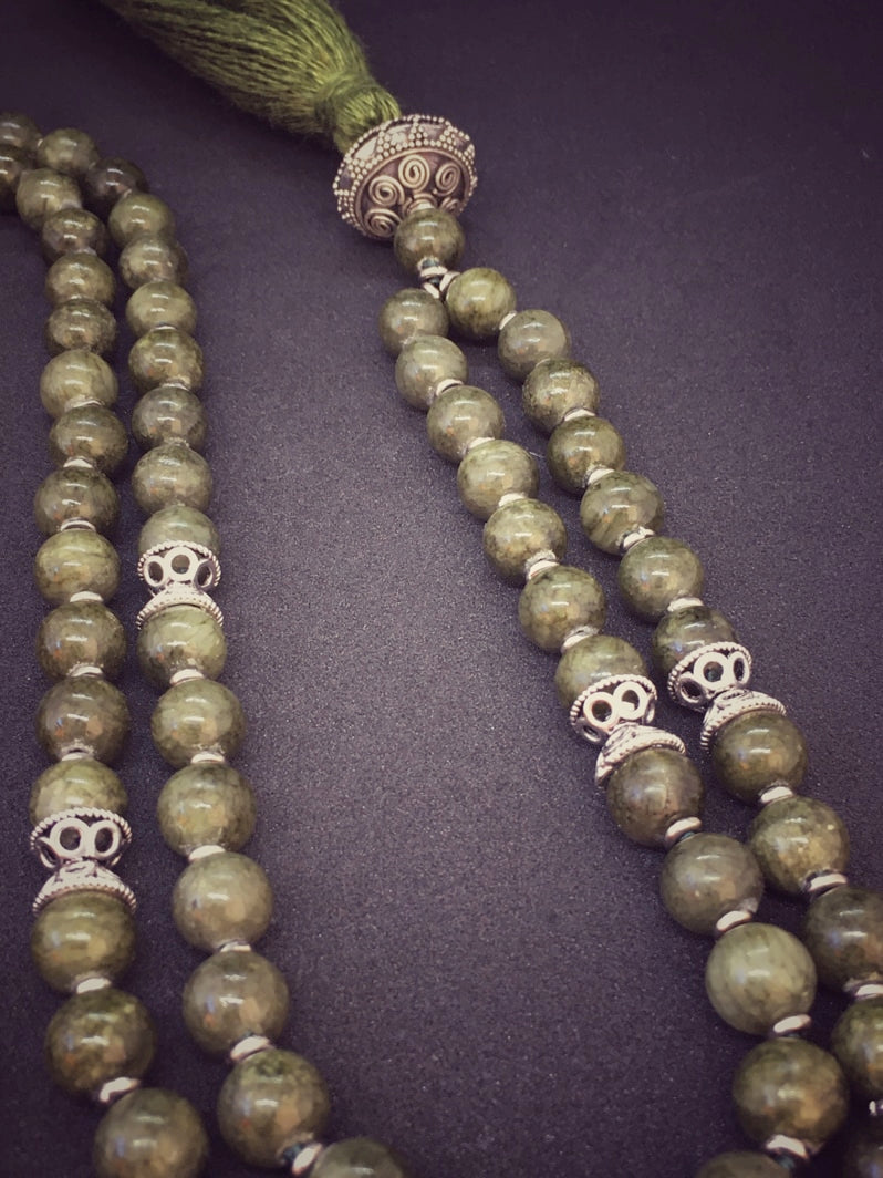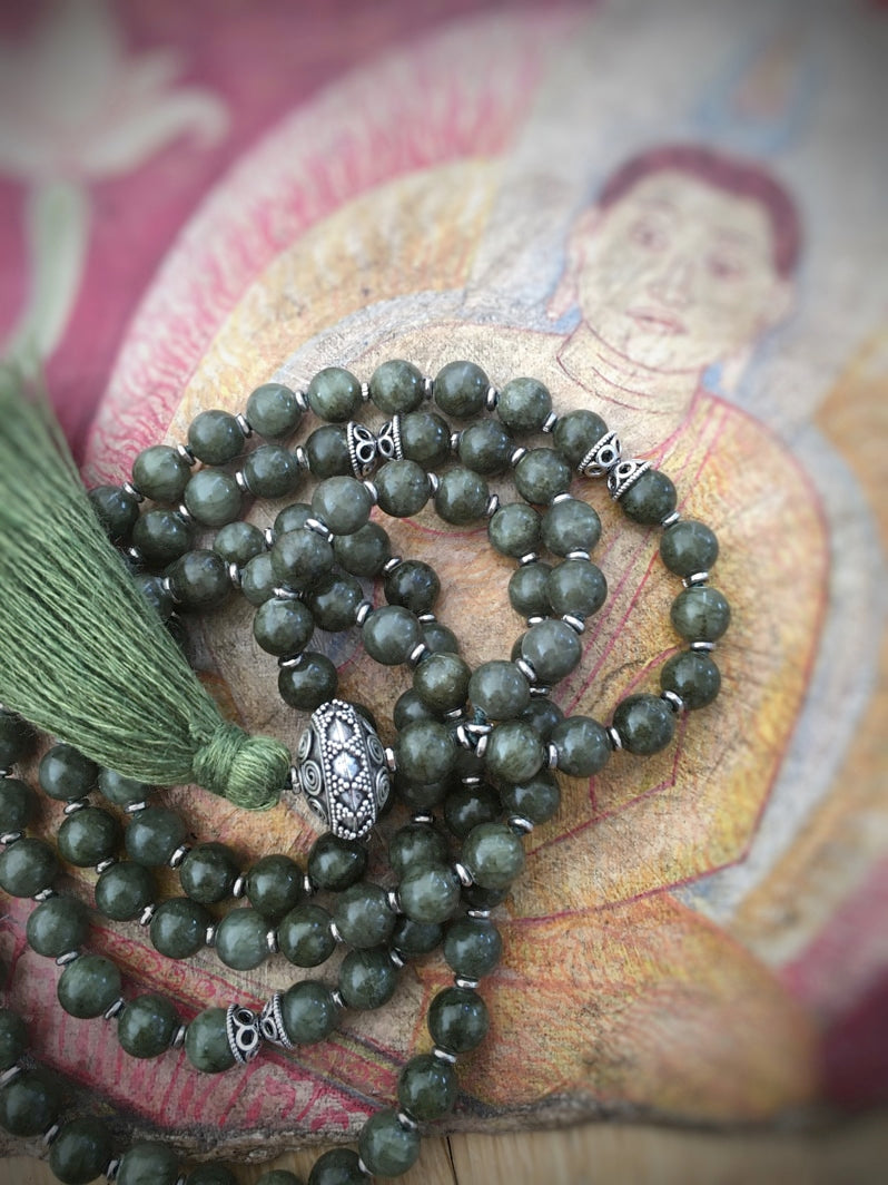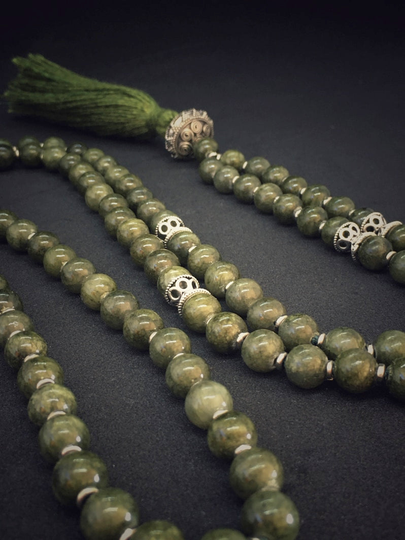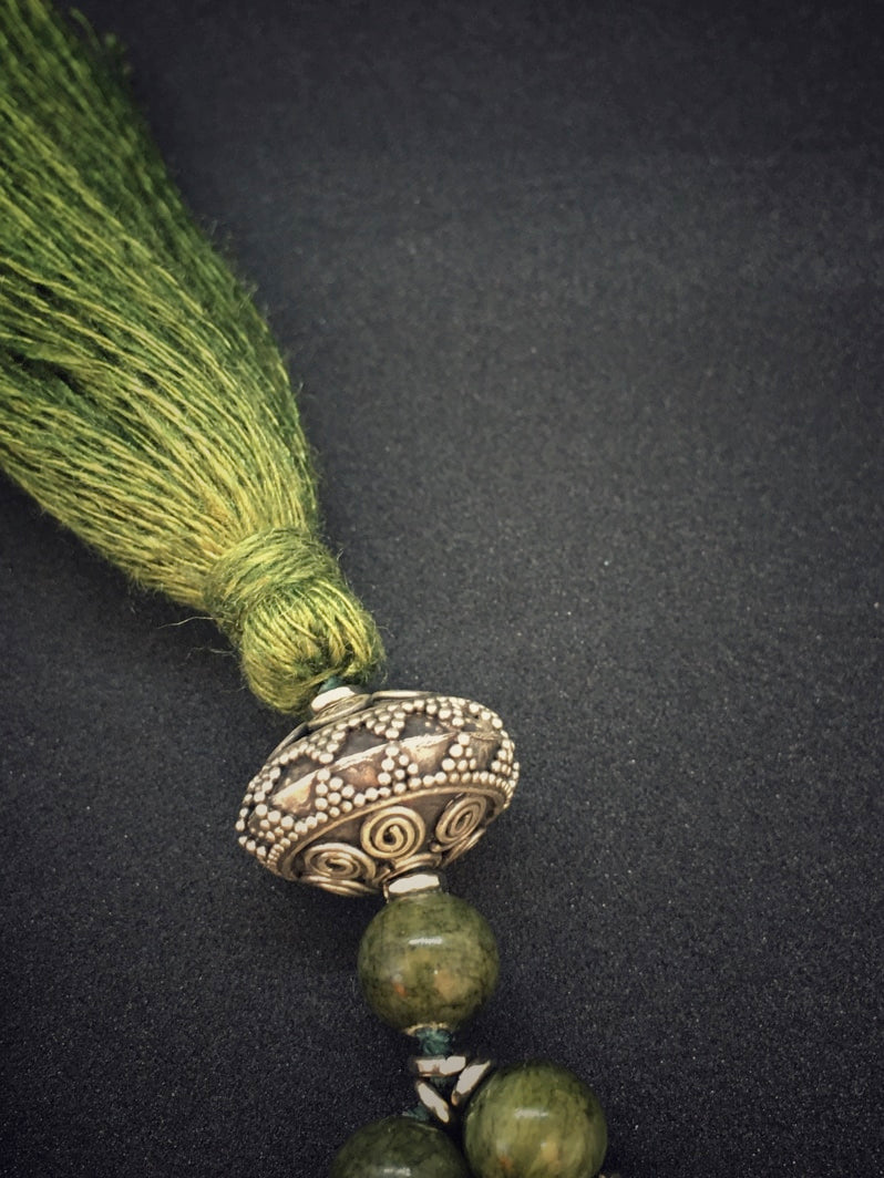 Guru-Bead: Echt-Silber-Perle aus Bali und Quaste aus italienischem Leinen-Seiden-Garn