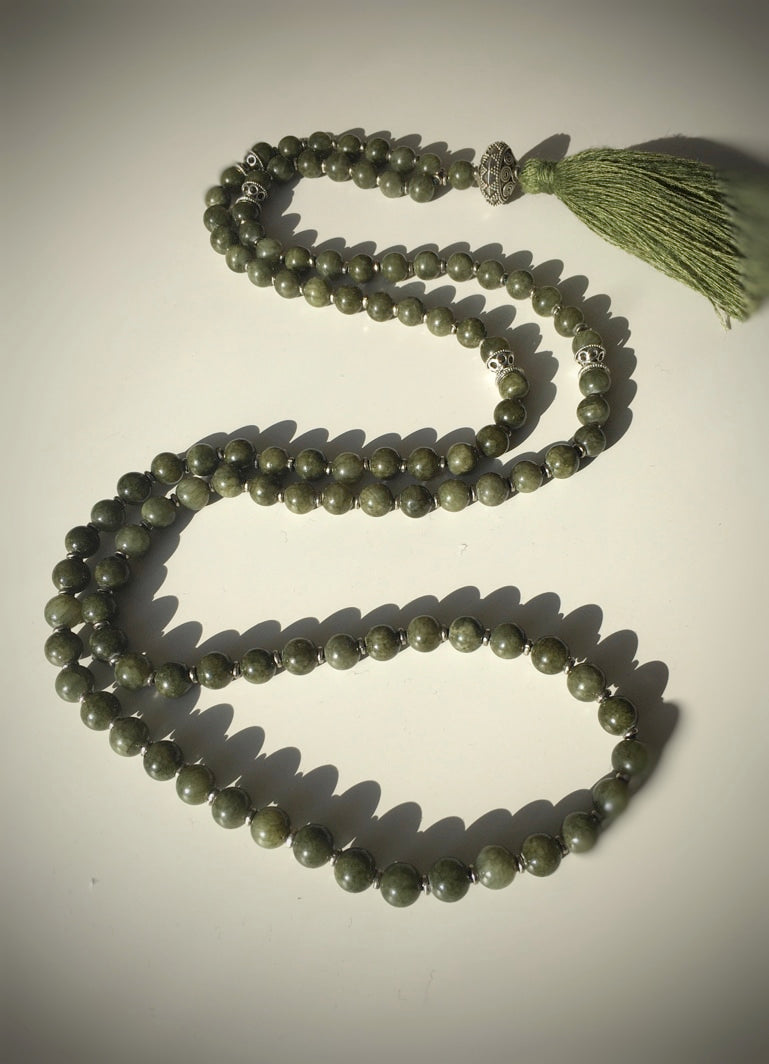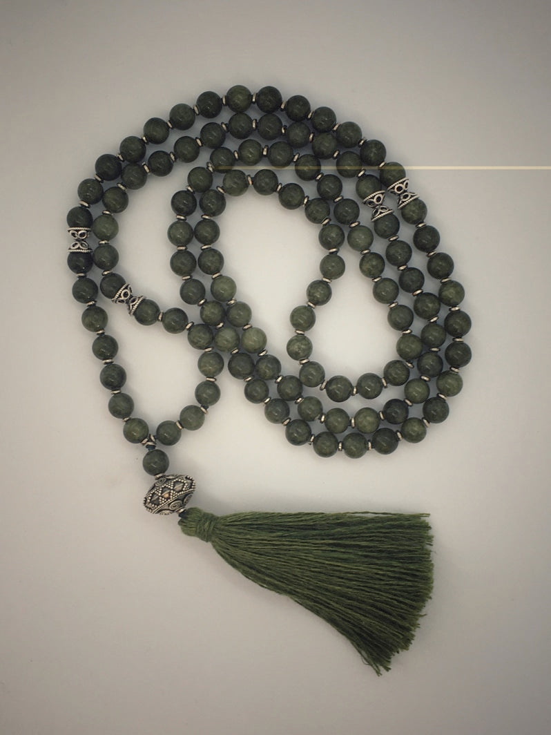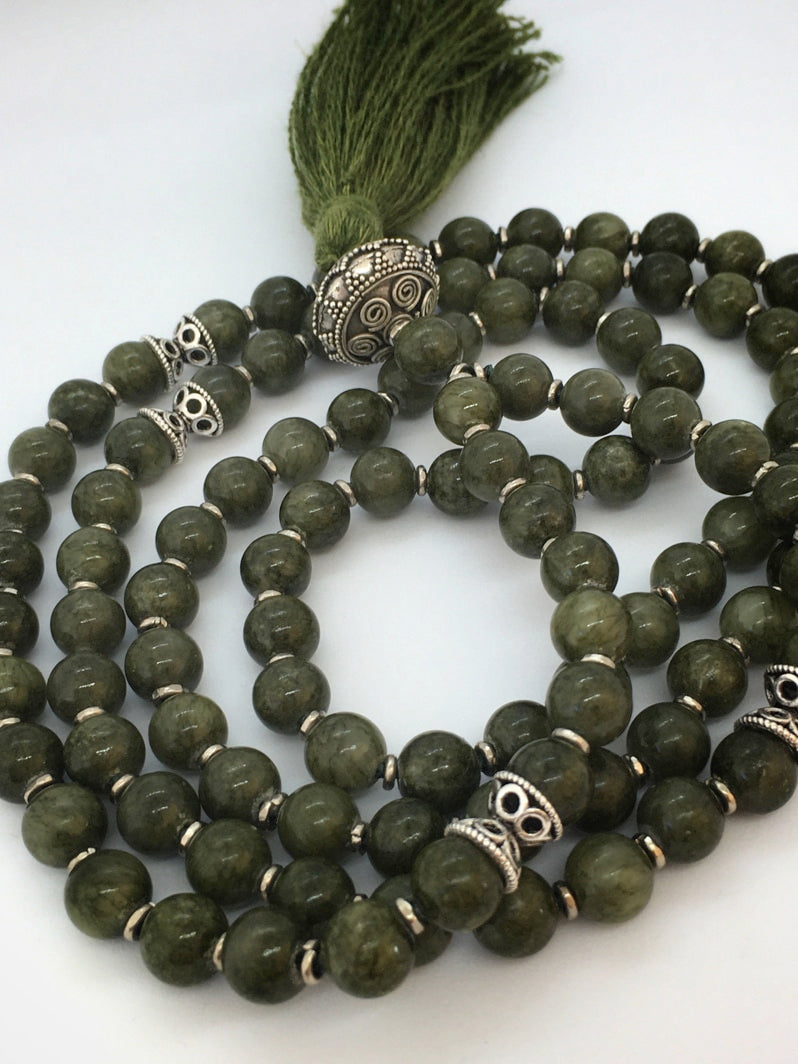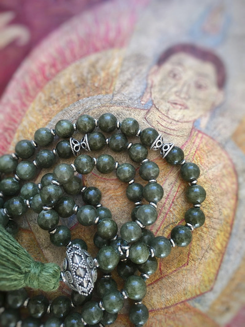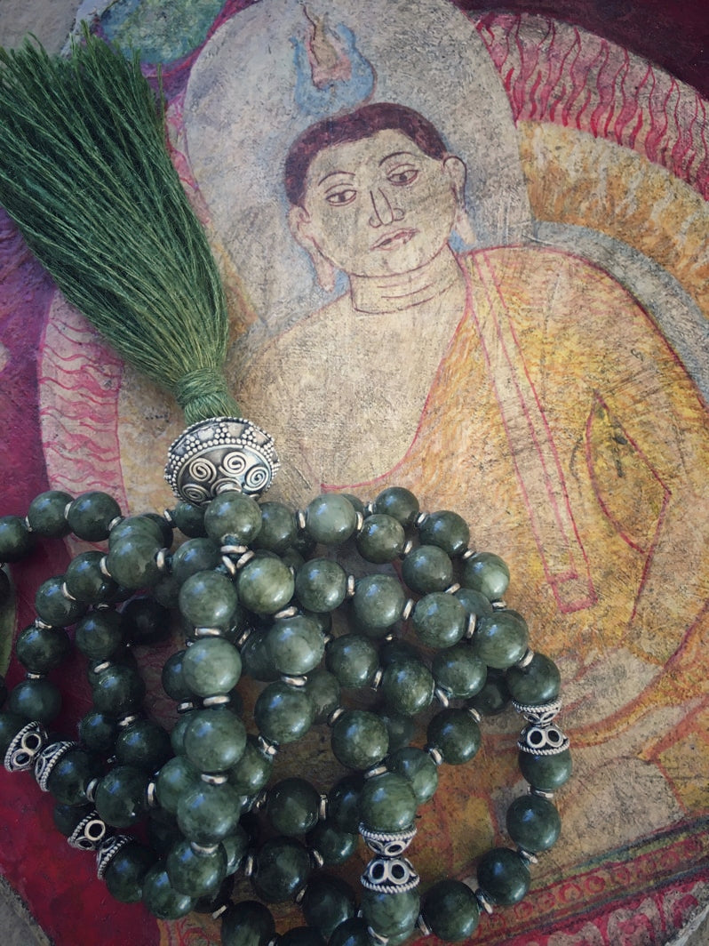 Guru-Bead: Echt-Silber-Perle aus Bali und Quaste aus italienischem Leinen-Seiden-Garn