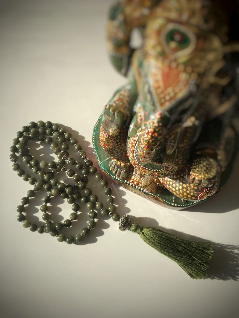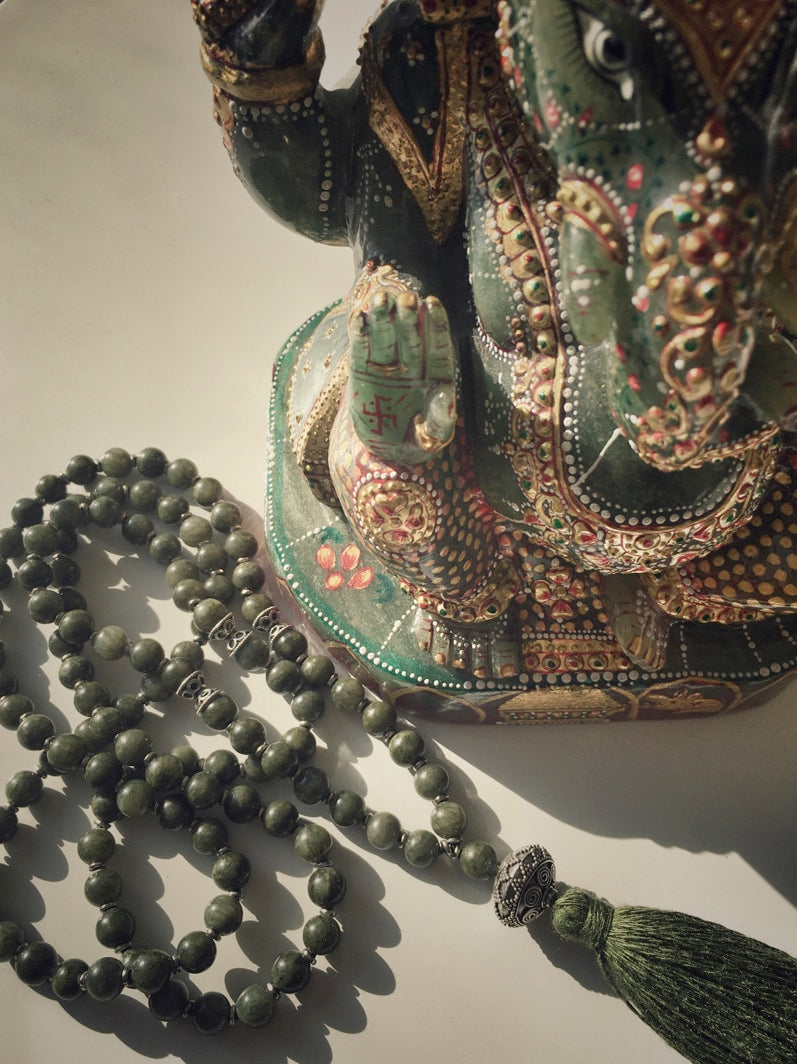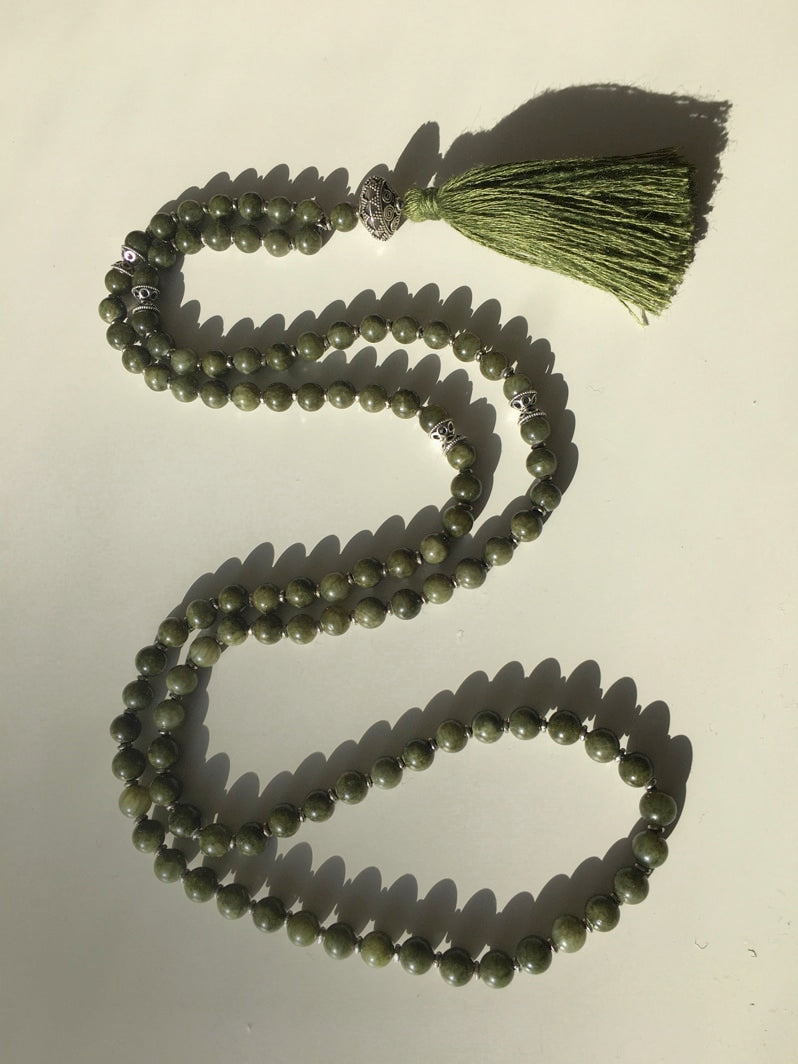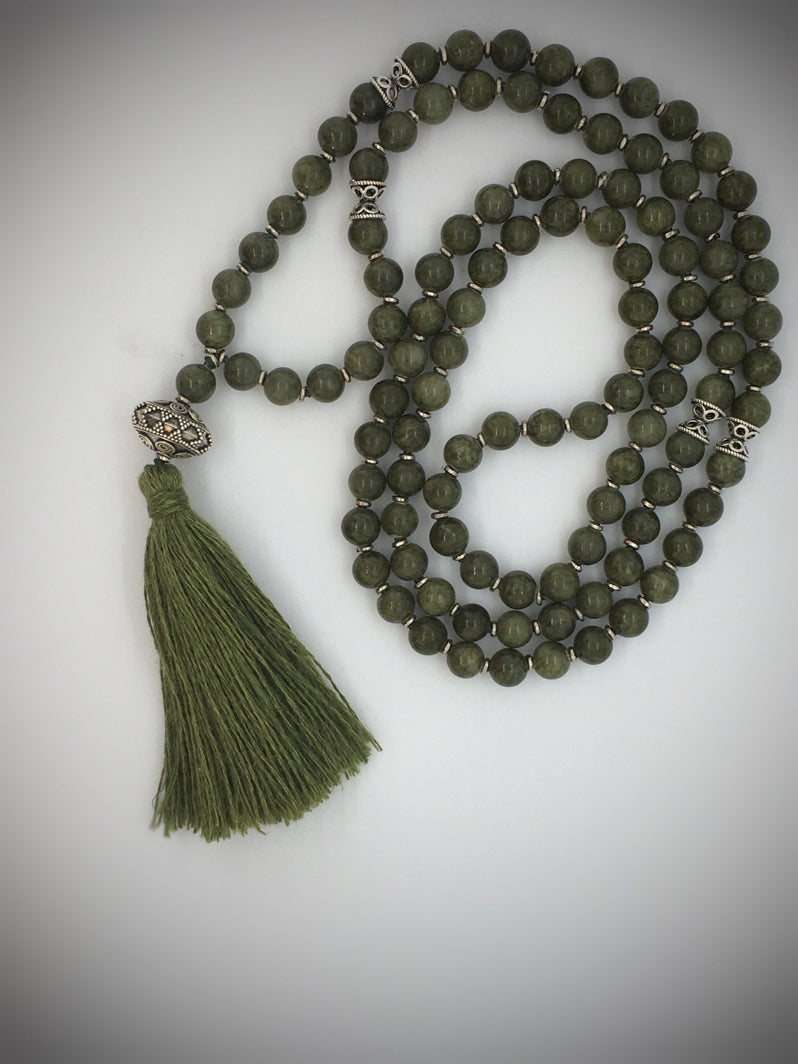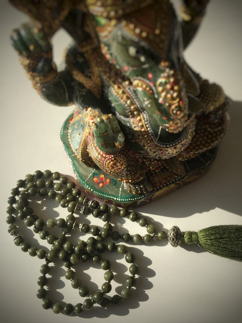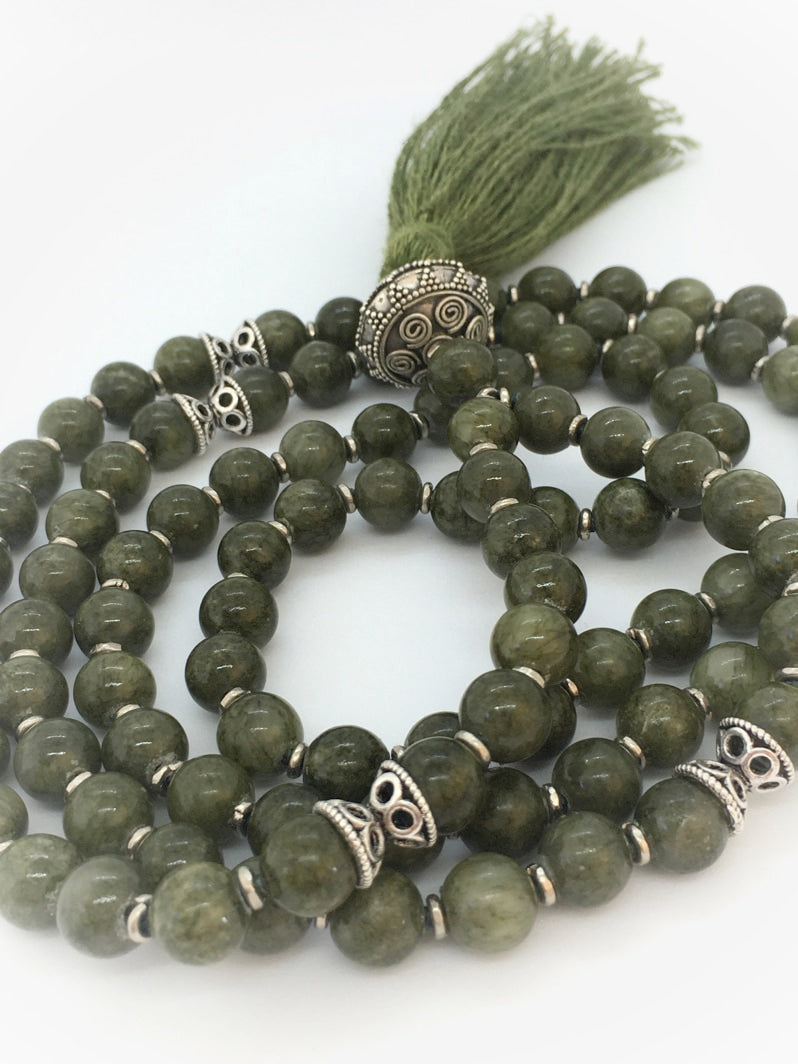 Guru-Bead: Echt-Silber-Perle aus Bali und Quaste aus italienischem Leinen-Seiden-Garn