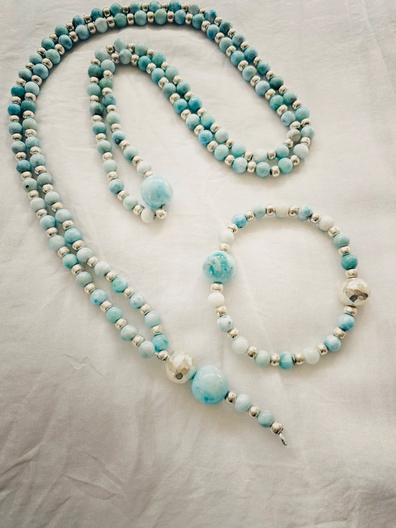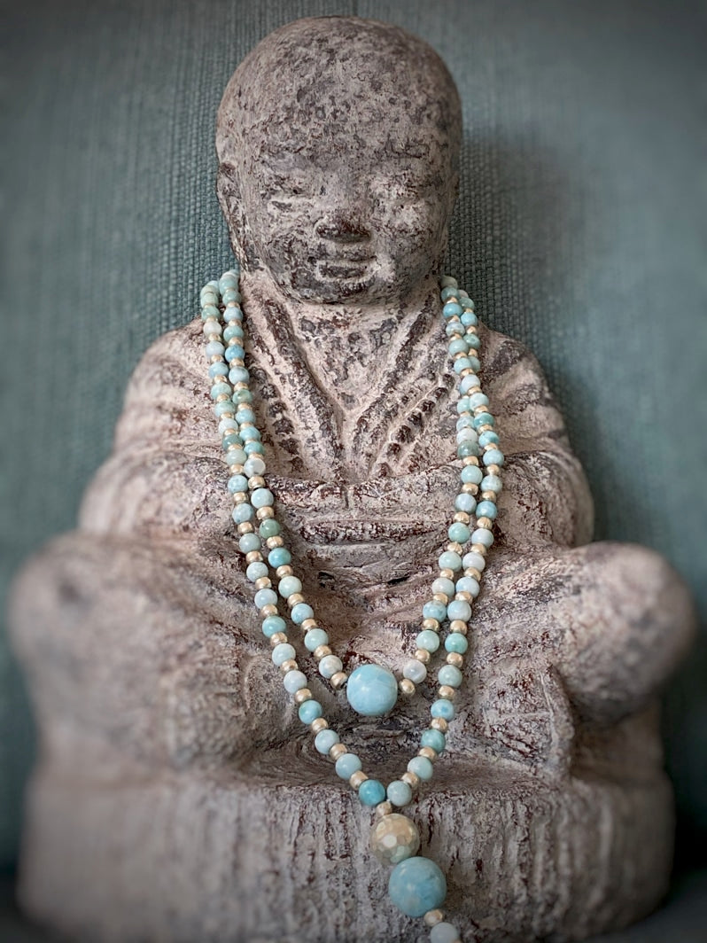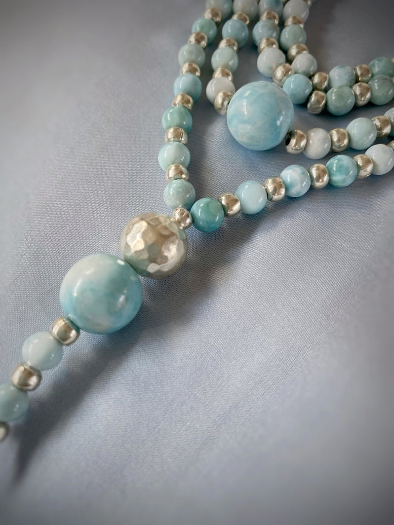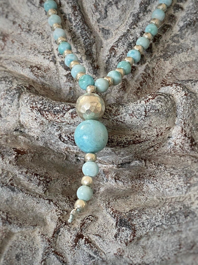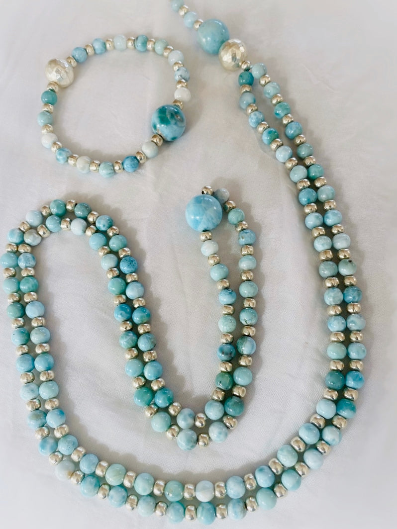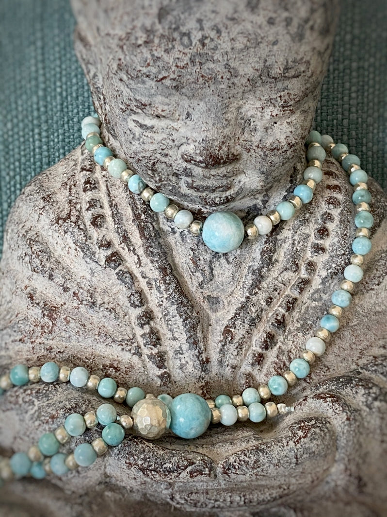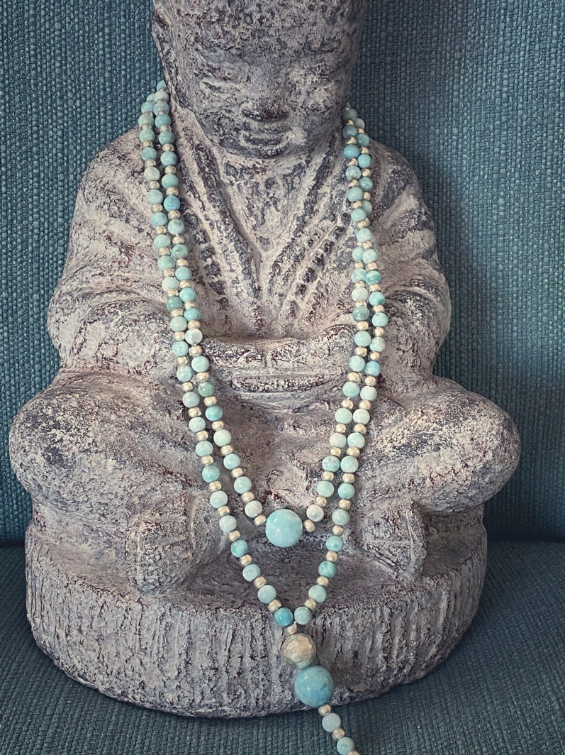 Kostbar und edel - Wandelbare Mala aus Larimar und thailändischem Silber