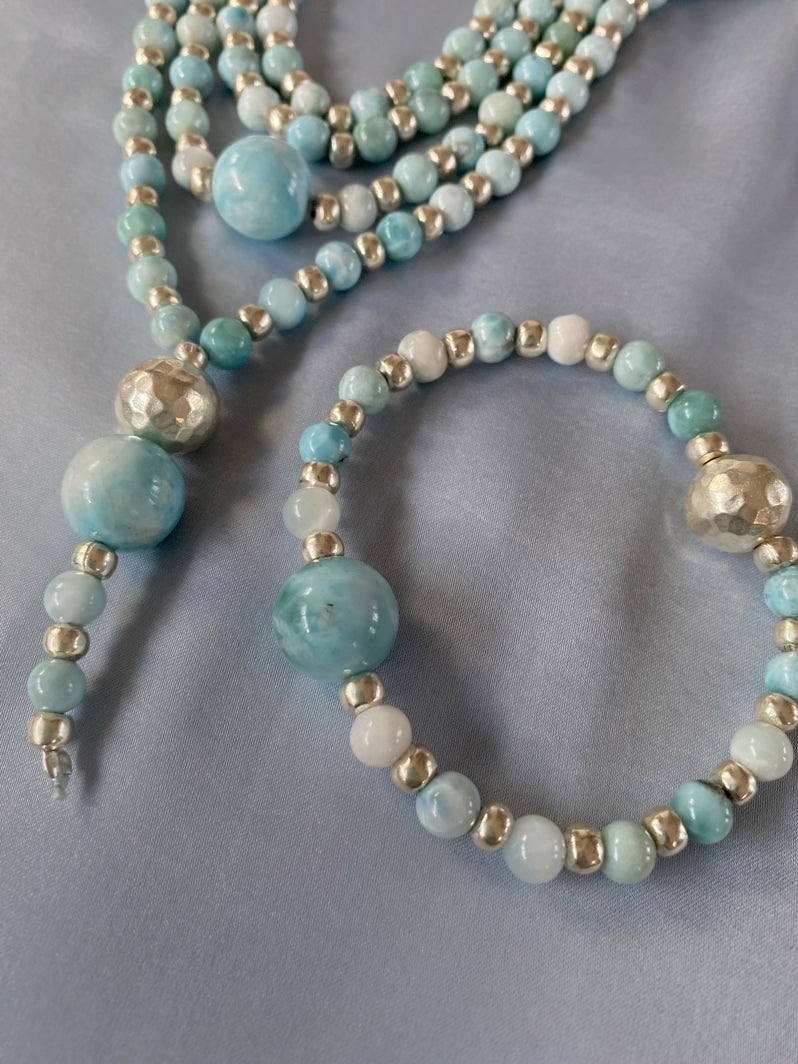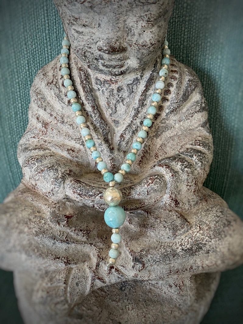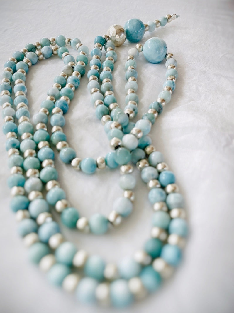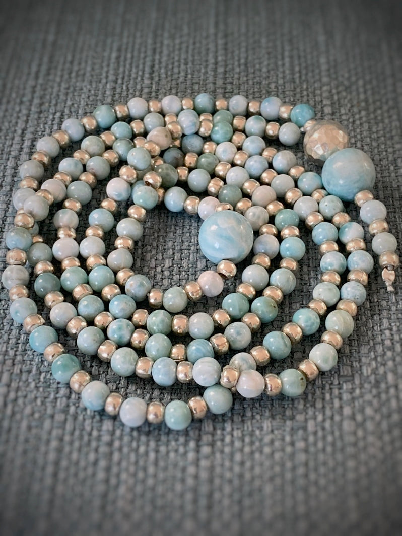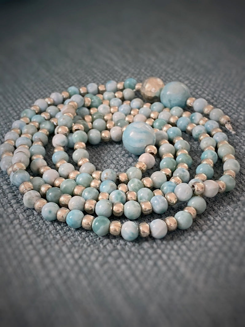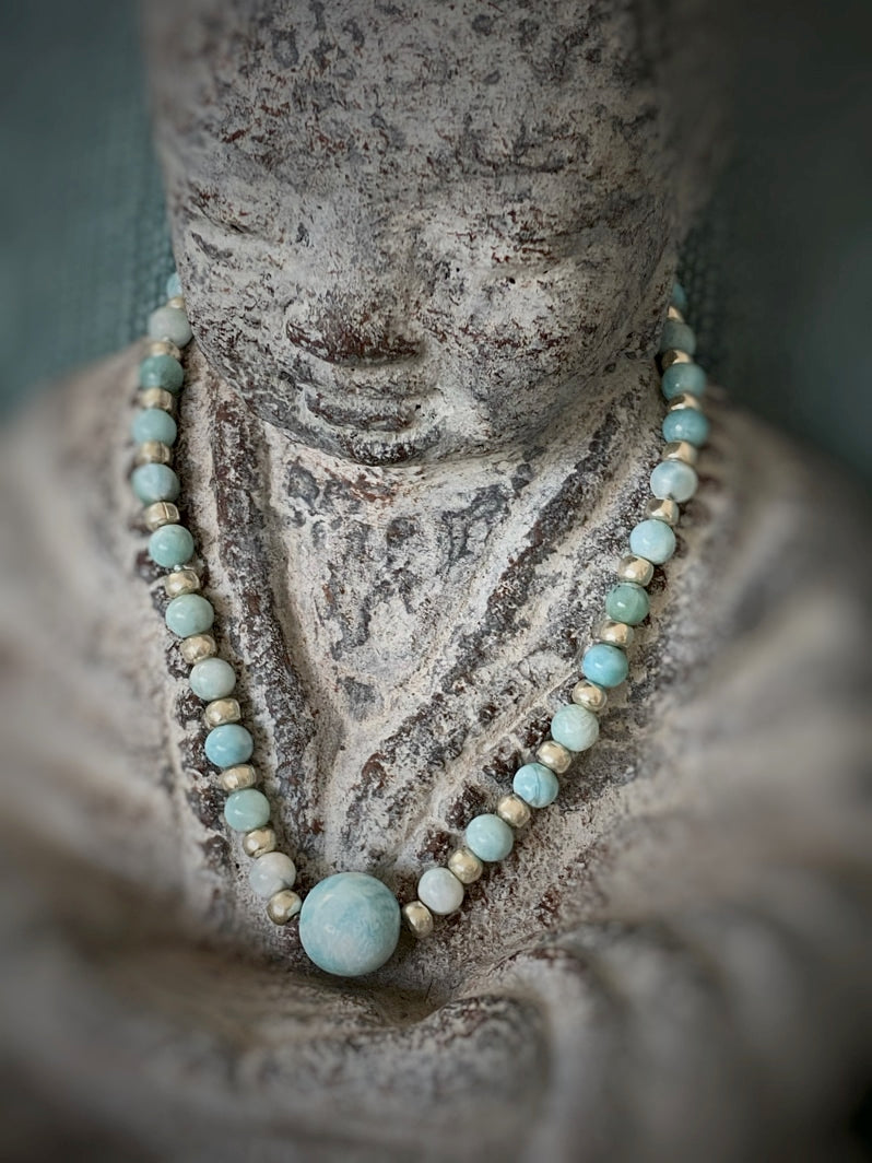 Kostbar und edel - Wandelbare Mala aus Larimar und thailändischem Silber