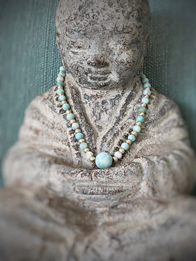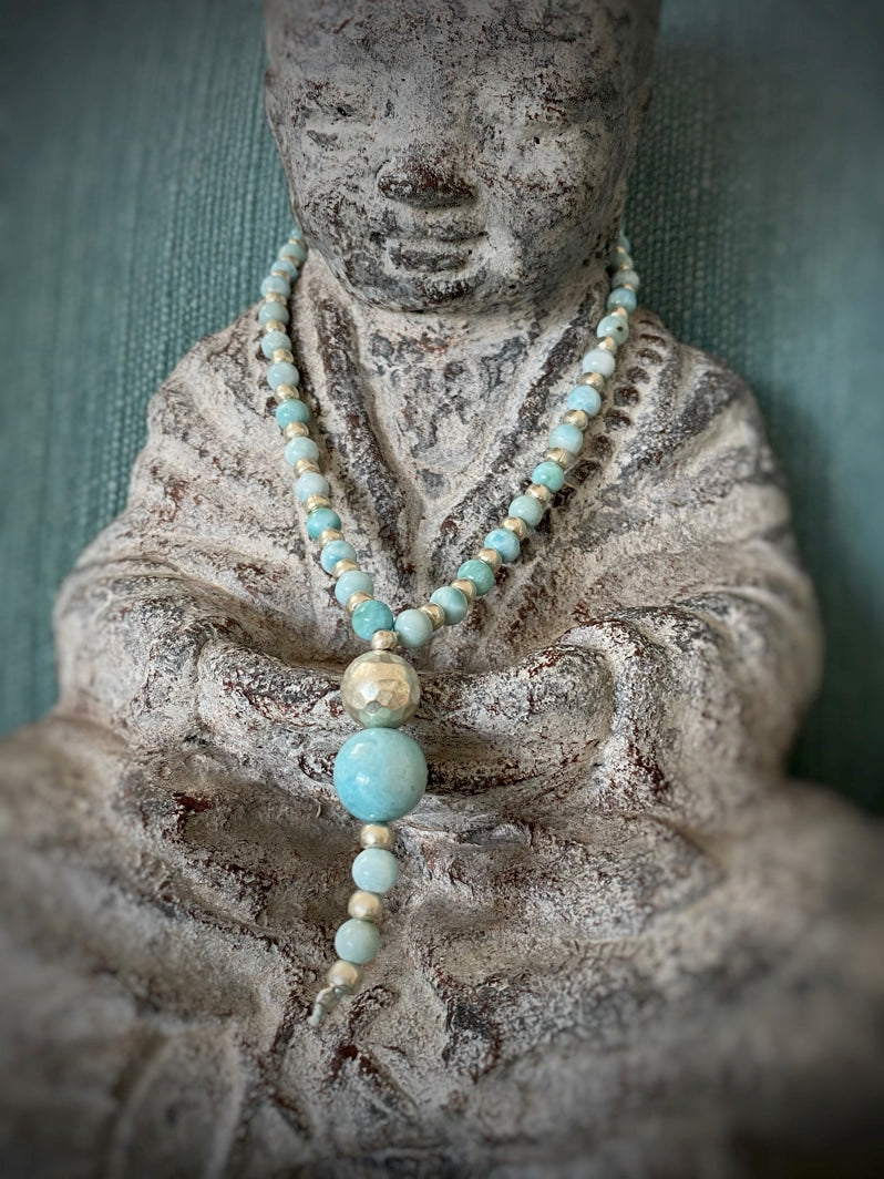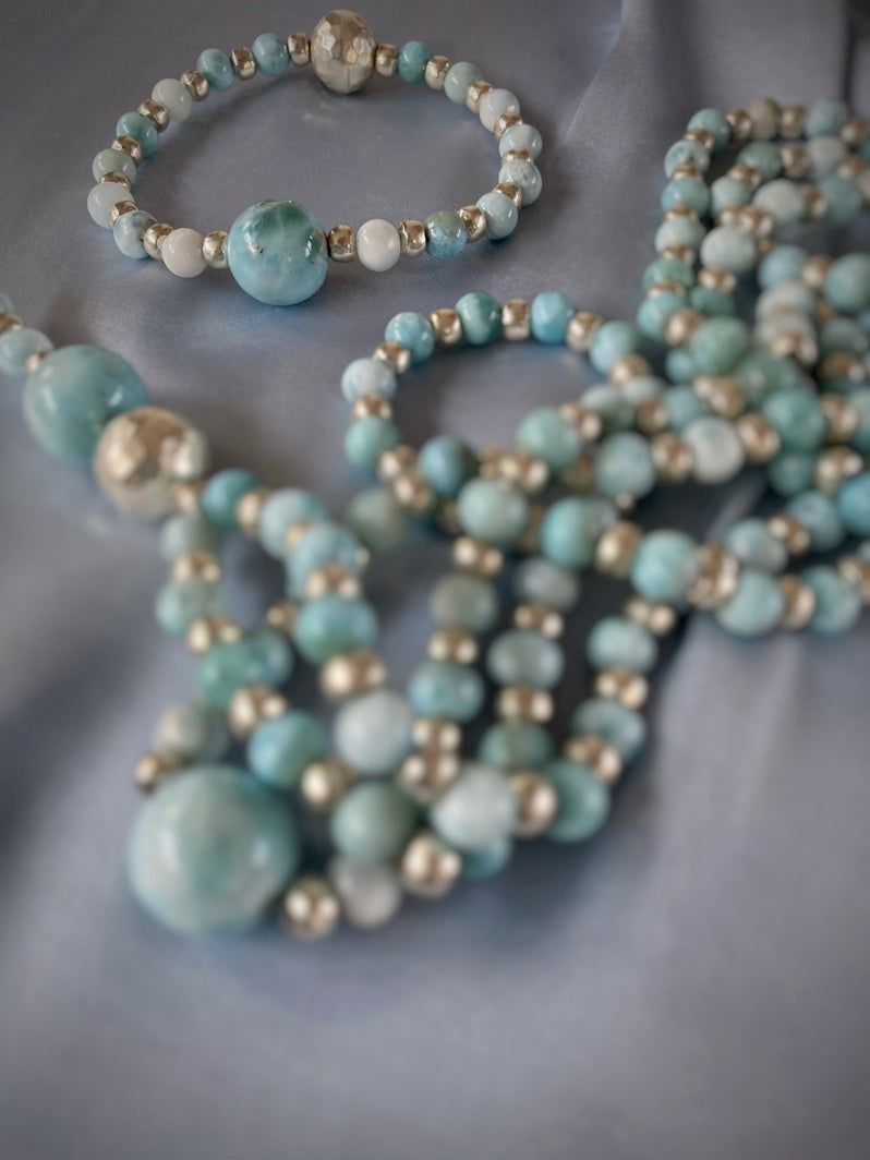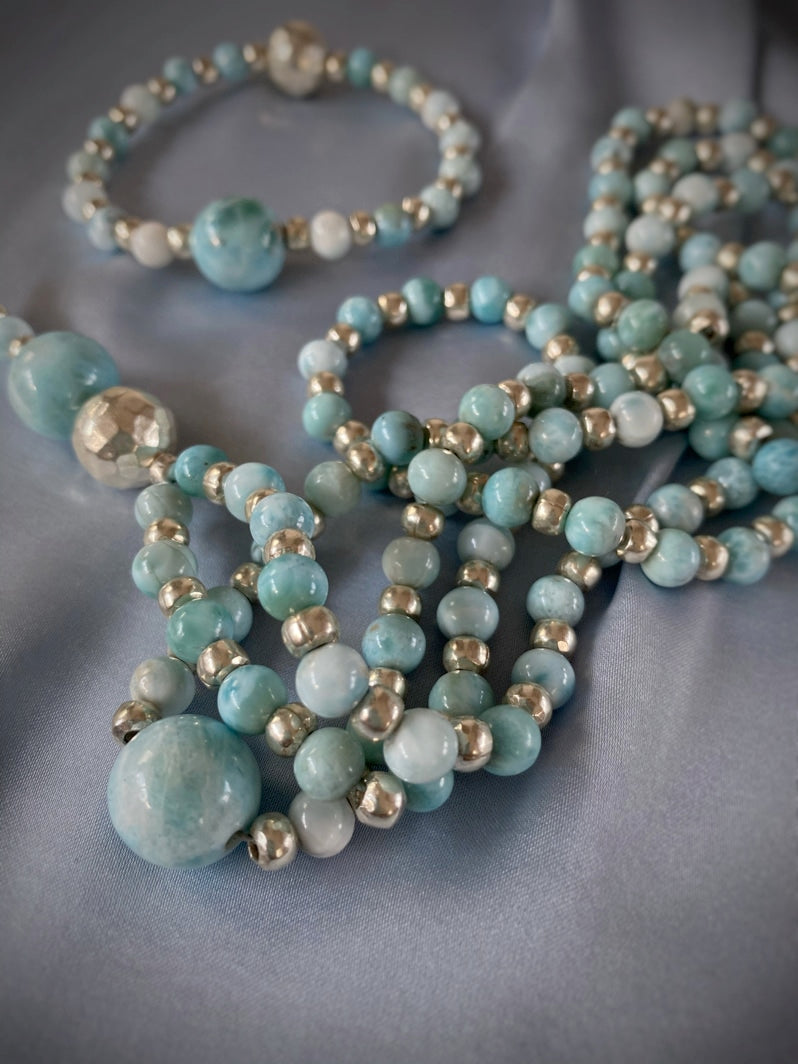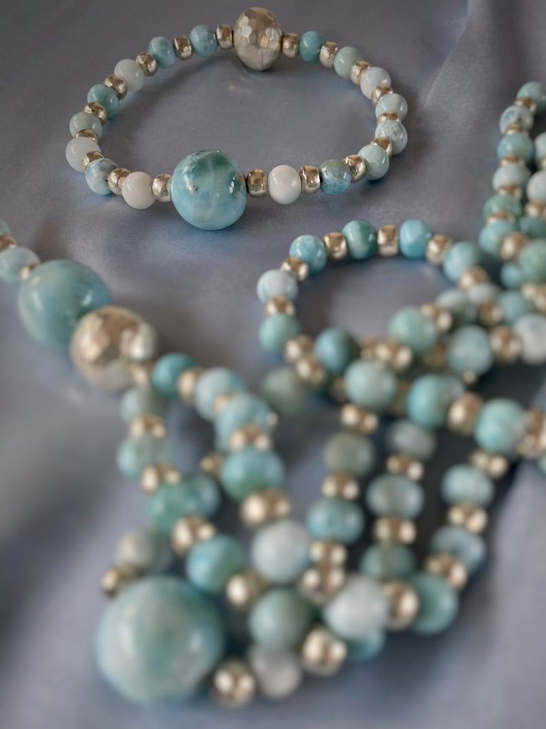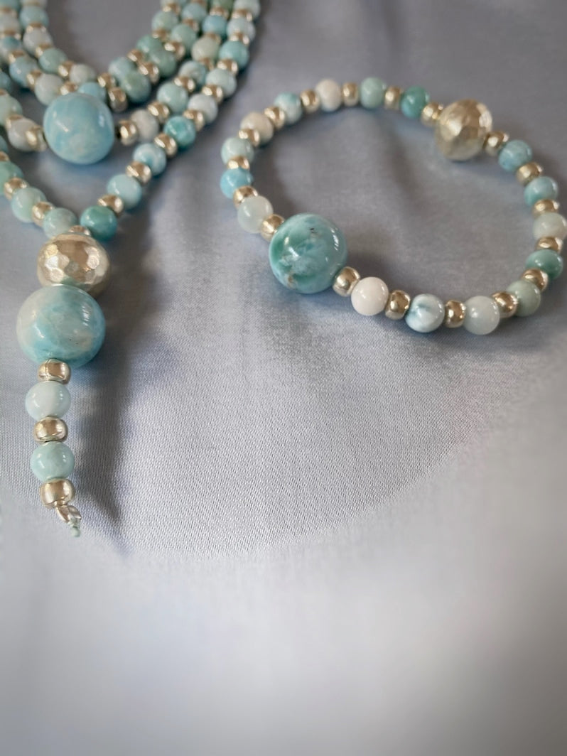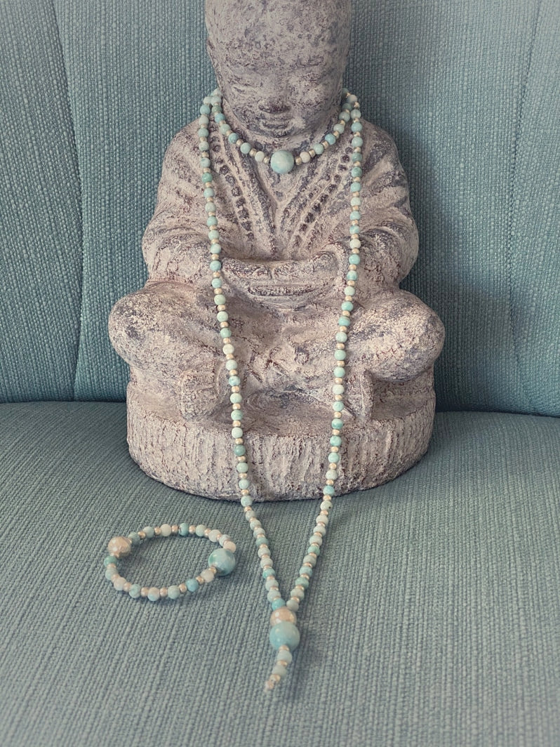 Kostbar und edel - Wandelbare Mala aus Larimar und thailändischem Silber