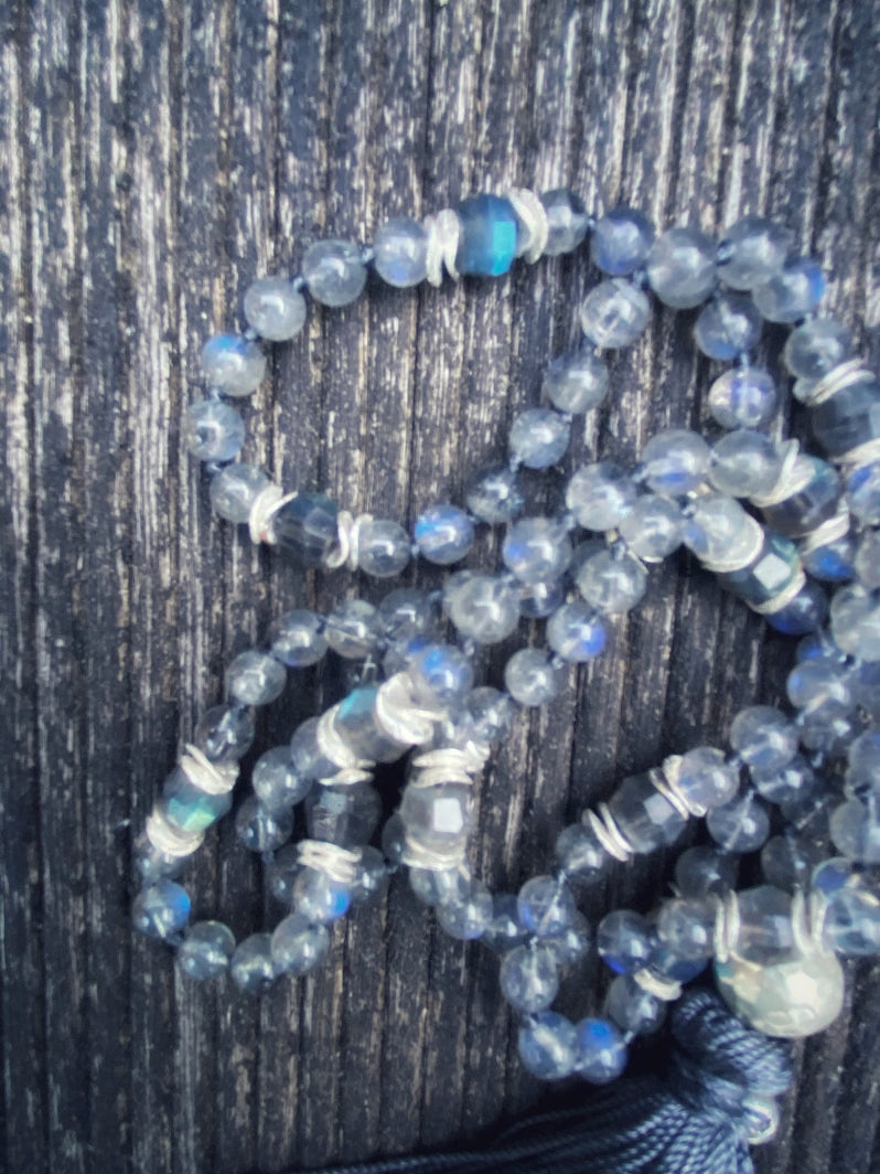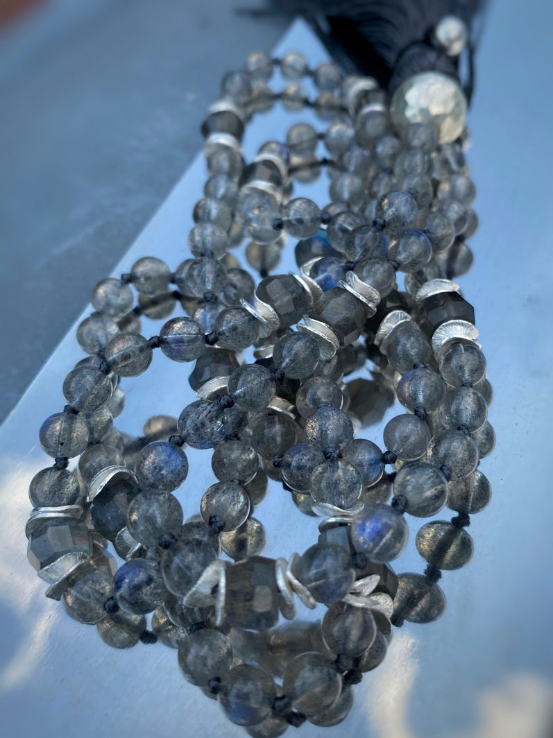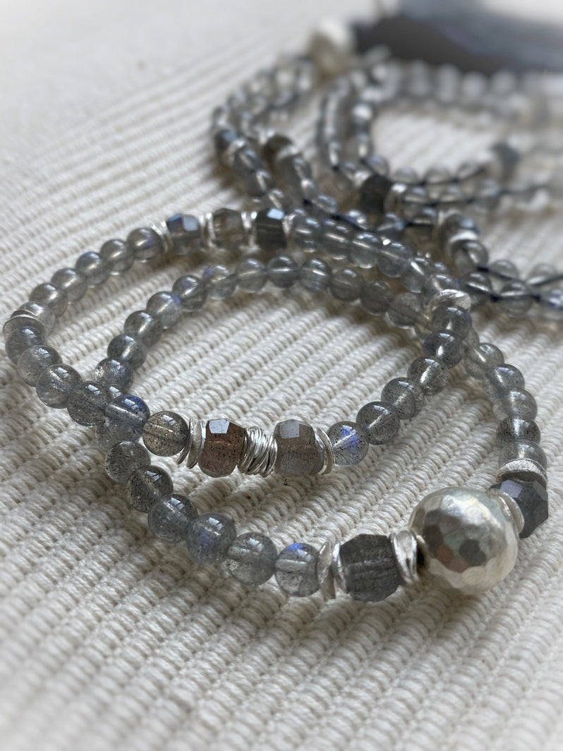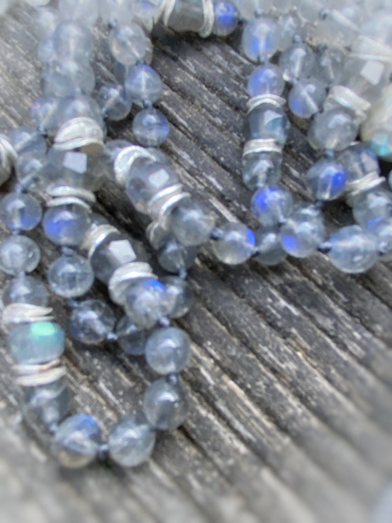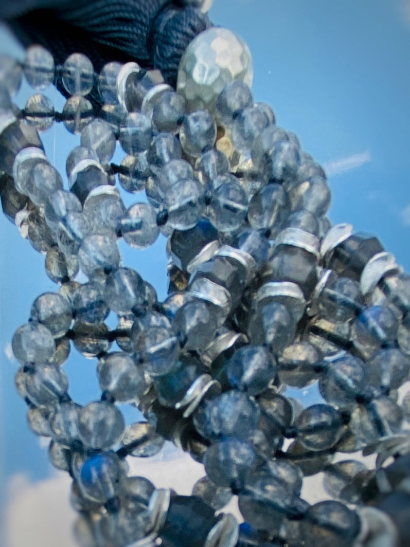 Perlen: Labradorit 6mm, facettierte Labradorit-Rondelle, versilberte Zierscheiben