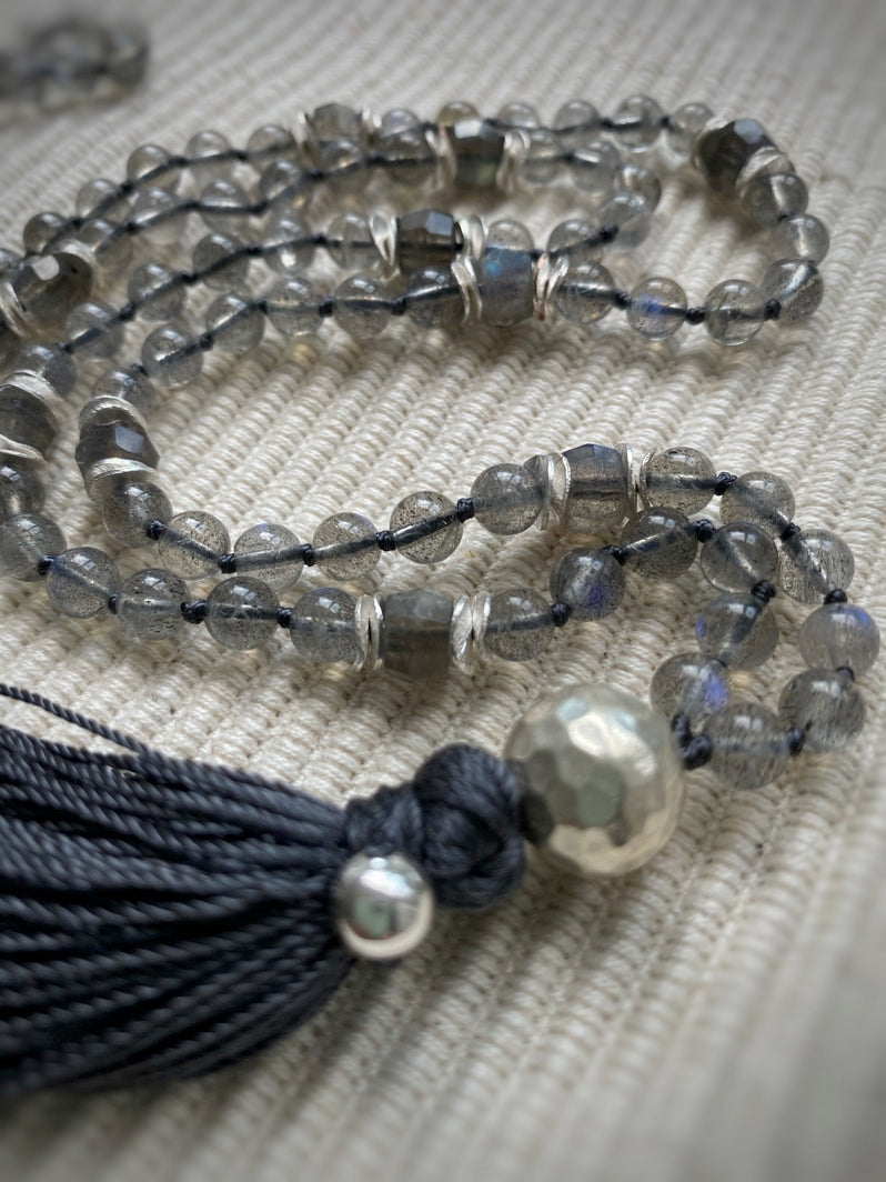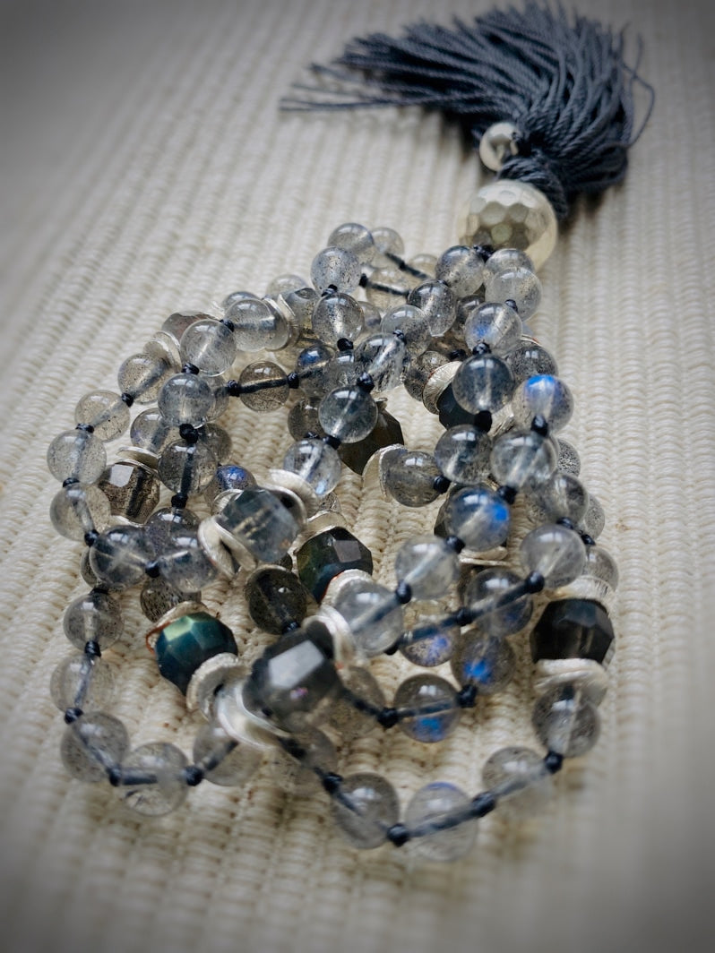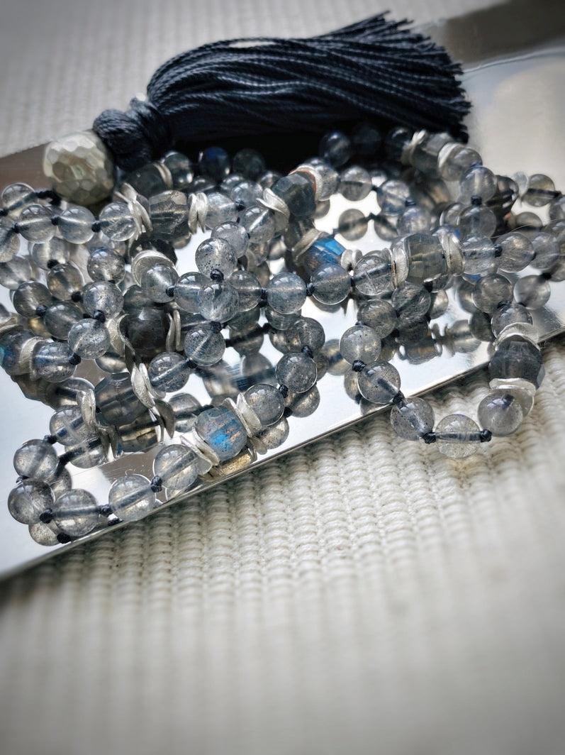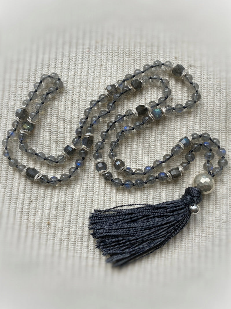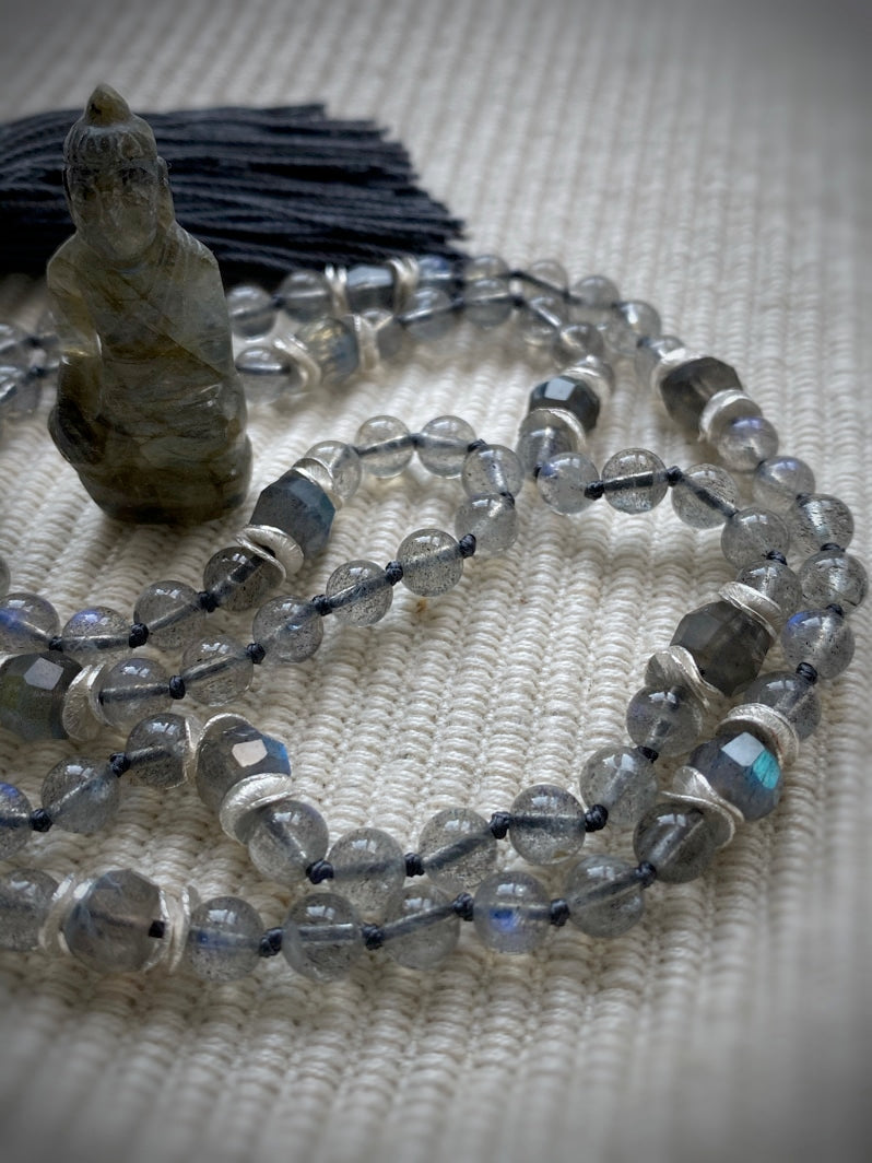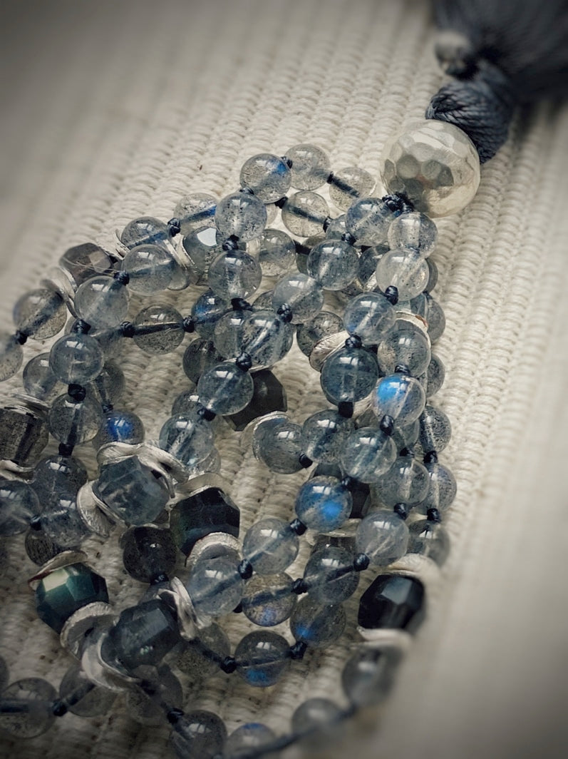 Perlen: Labradorit 6mm, facettierte Labradorit-Rondelle, versilberte Zierscheiben