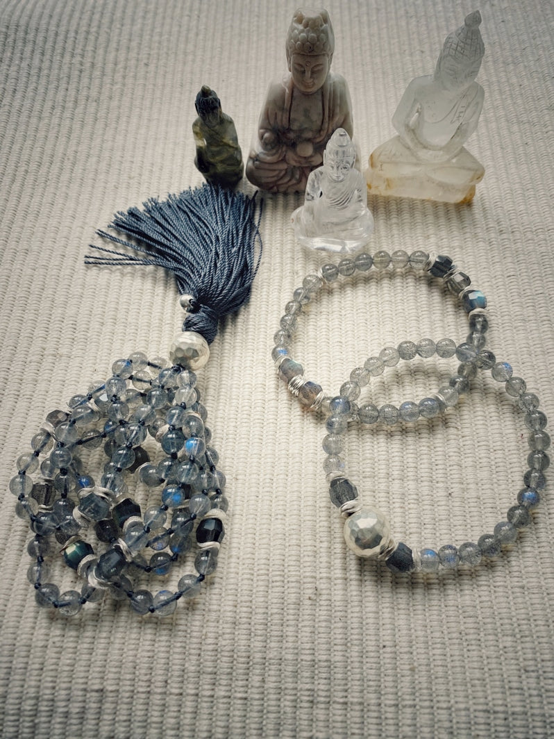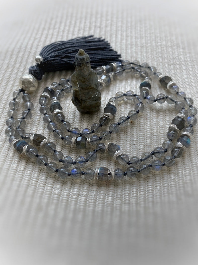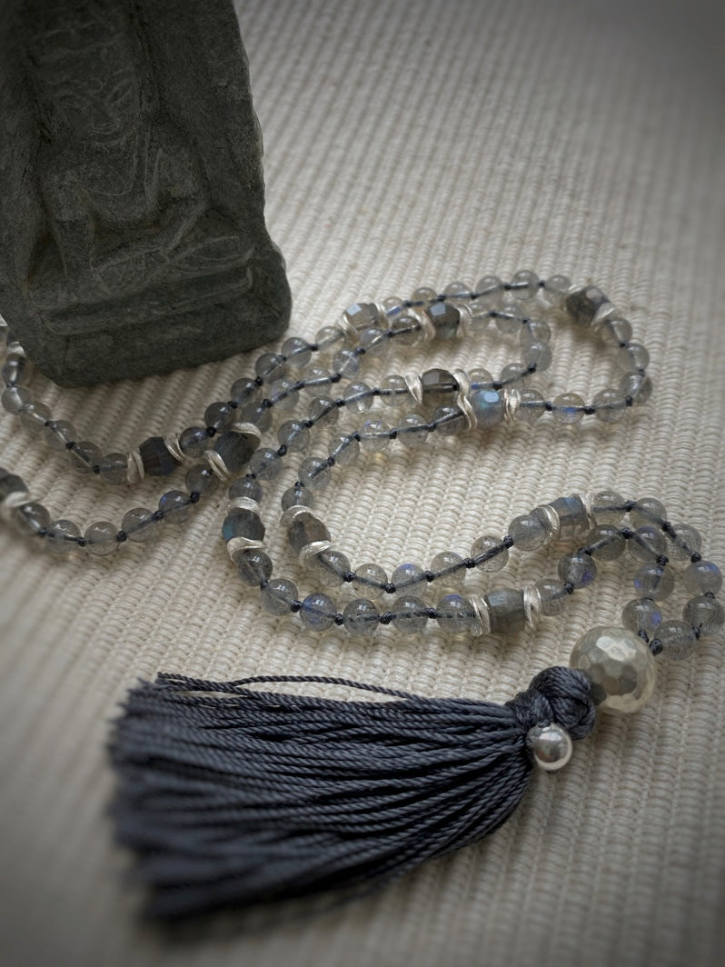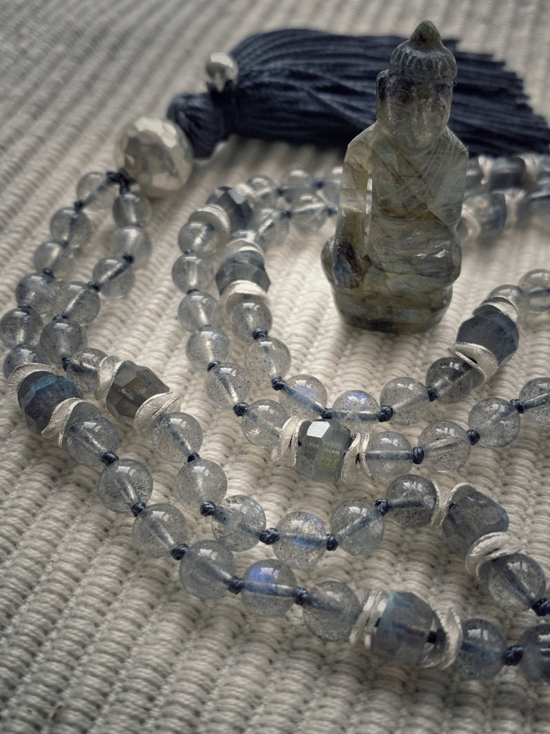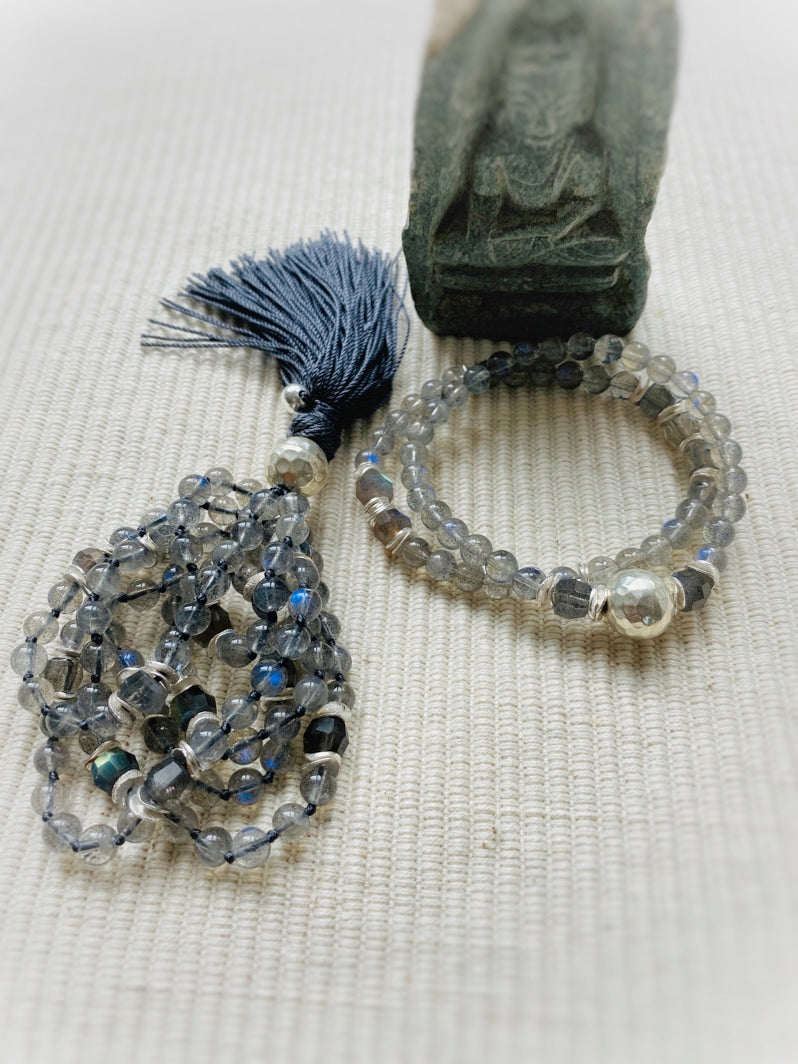 Perlen: Labradorit 6mm, facettierte Labradorit-Rondelle, versilberte Zierscheiben