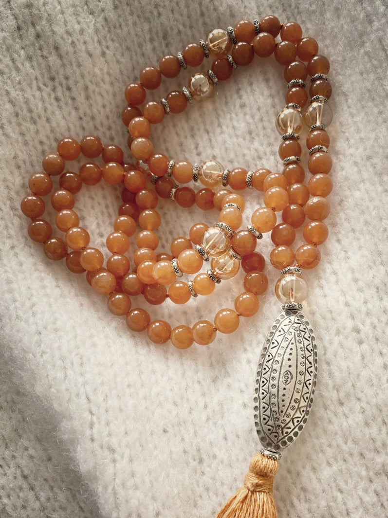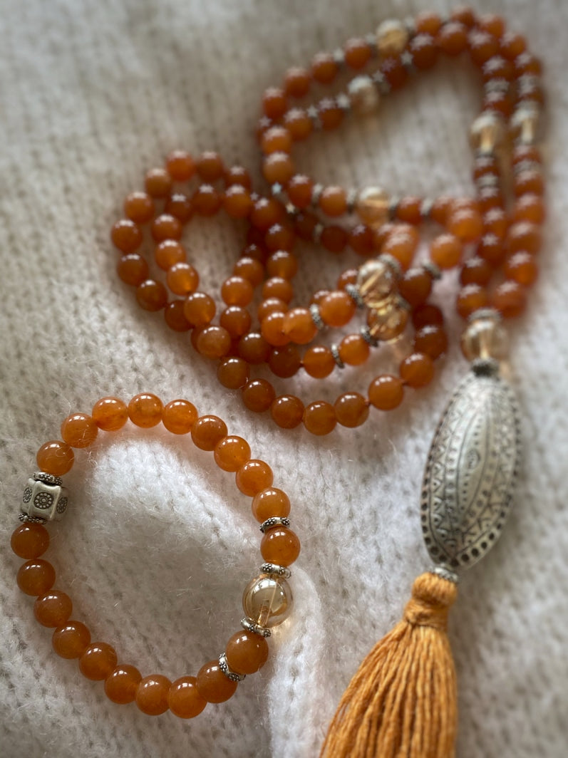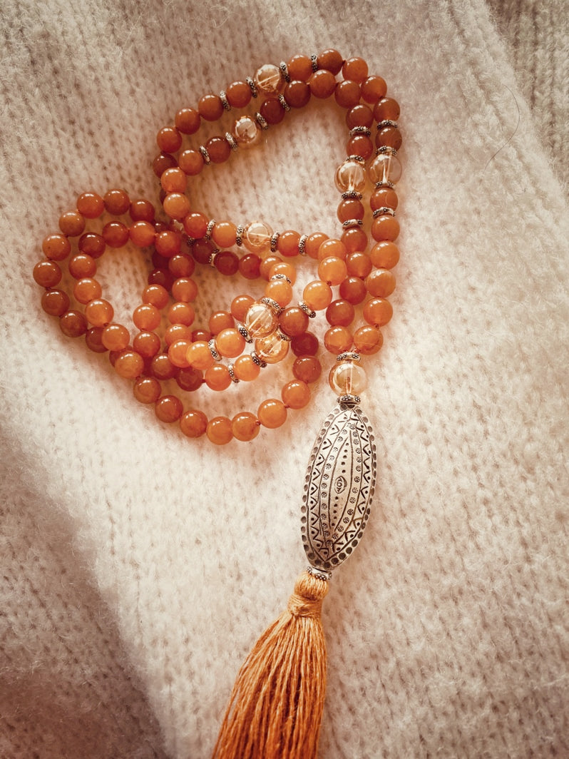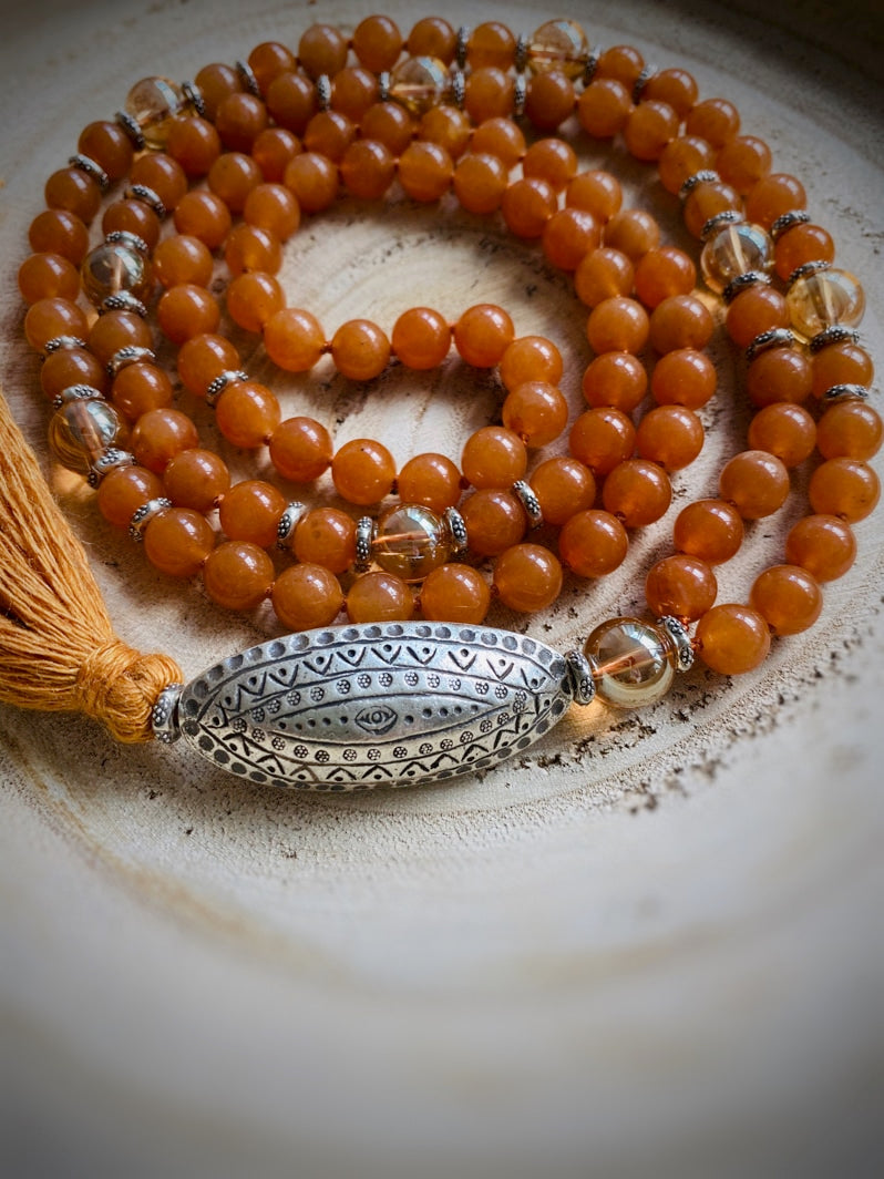Eine einzigartig schöne Mala in leuchtendem Orangerot!