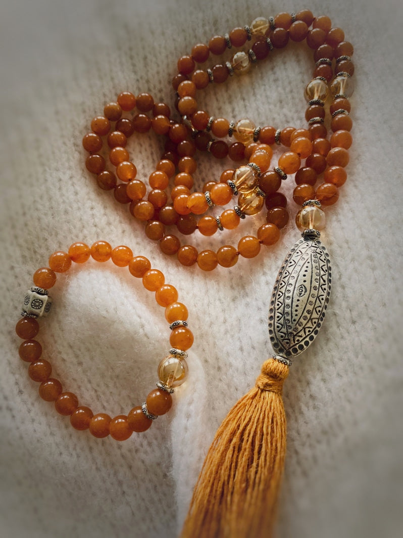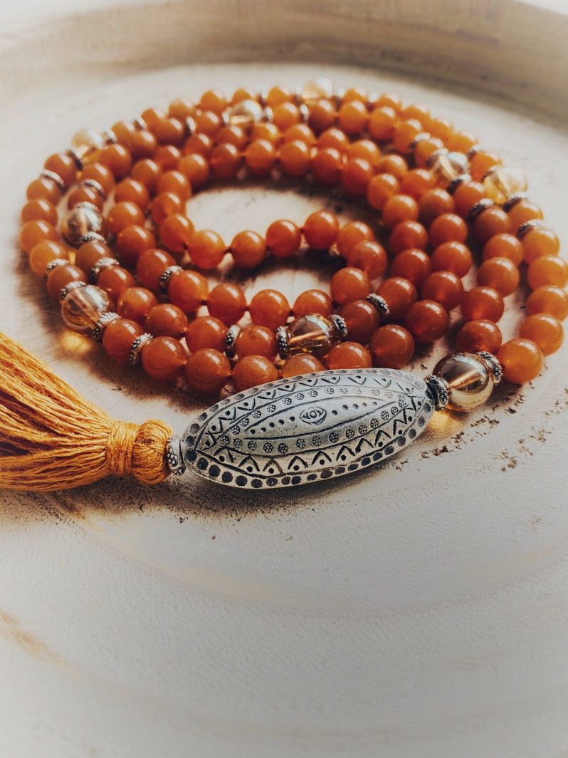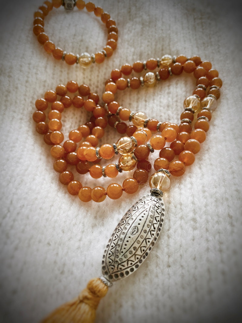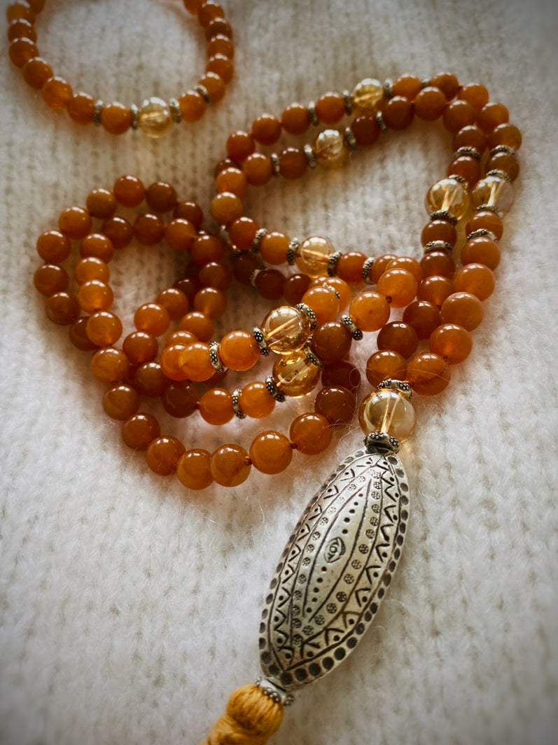 Eine einzigartig schöne Mala in leuchtendem Orangerot!