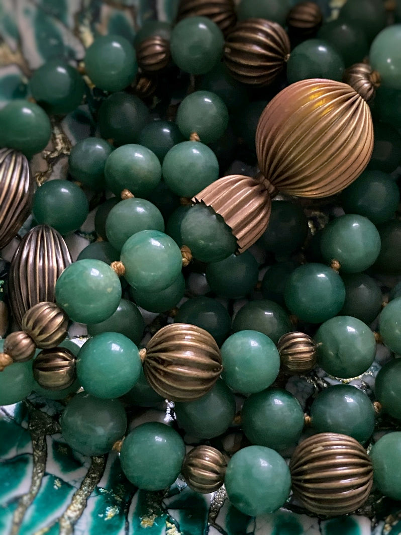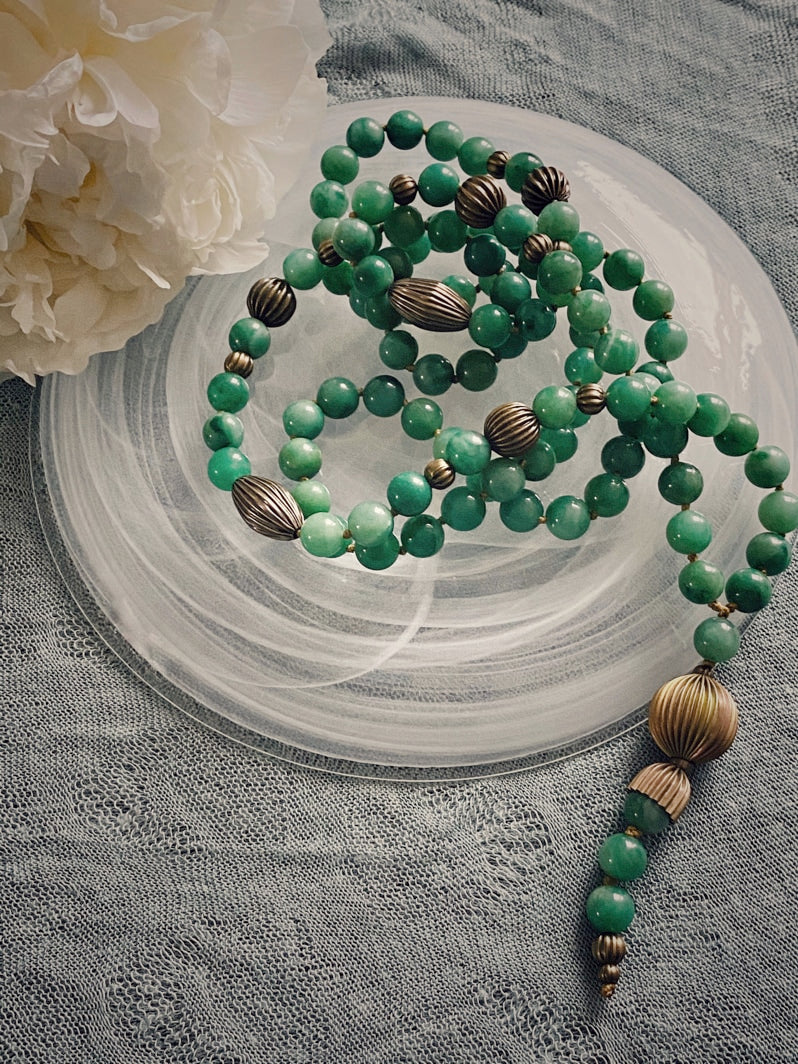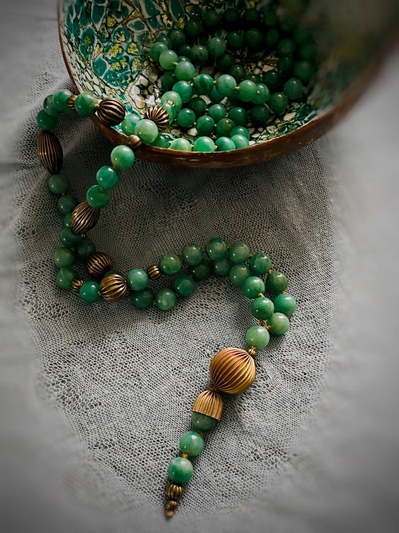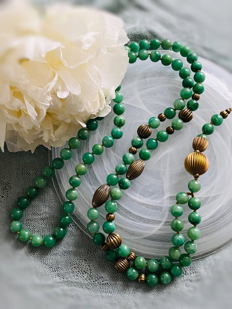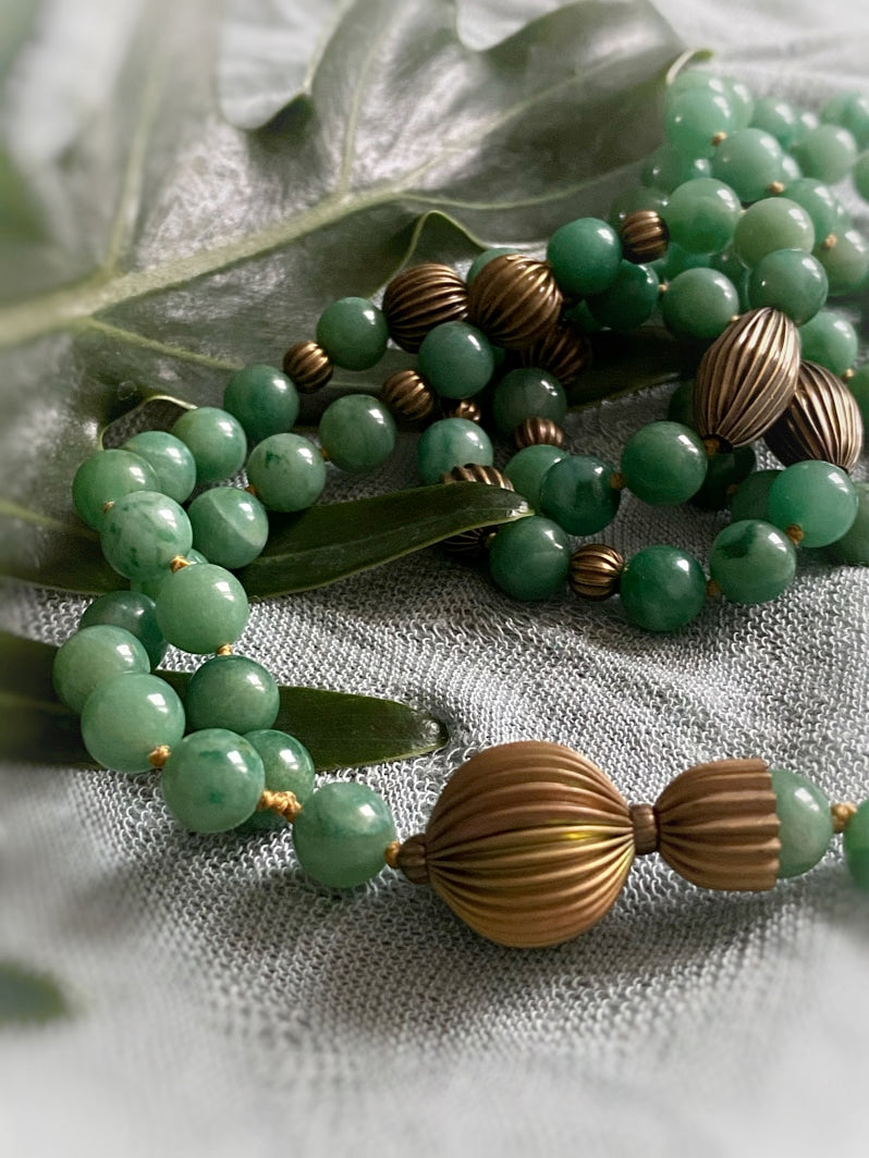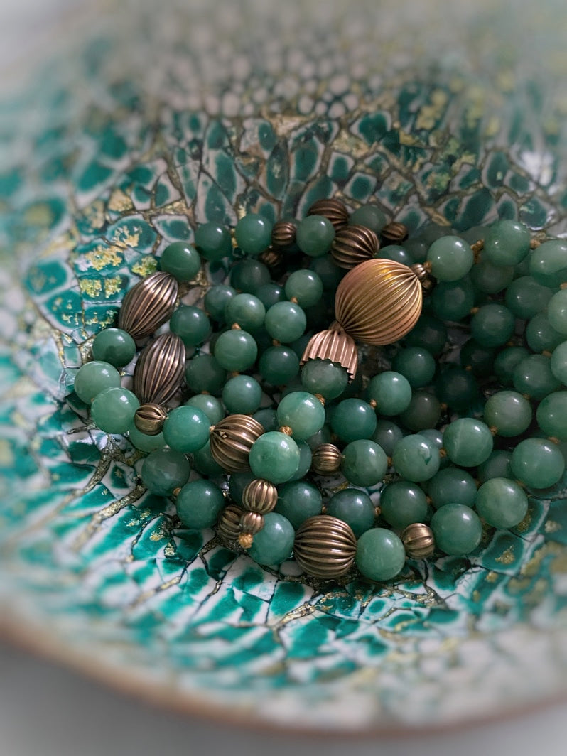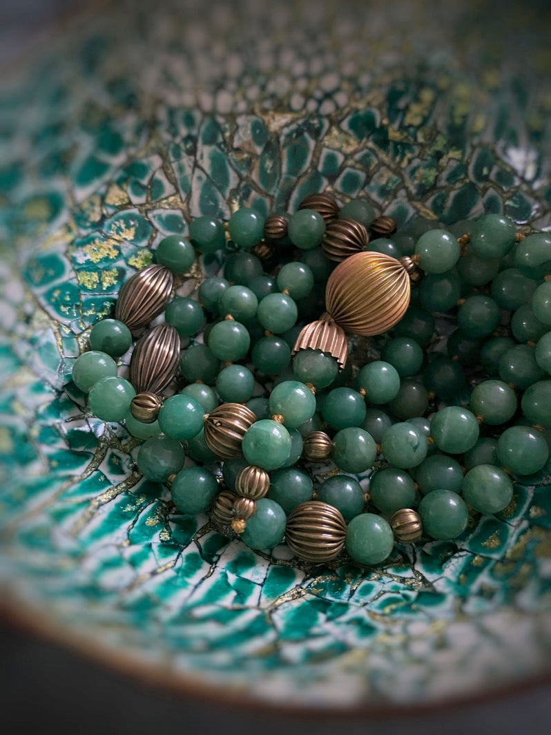 Abschluss: Messing-Perle, Messing-Perlkappe und Verdit-Perlen