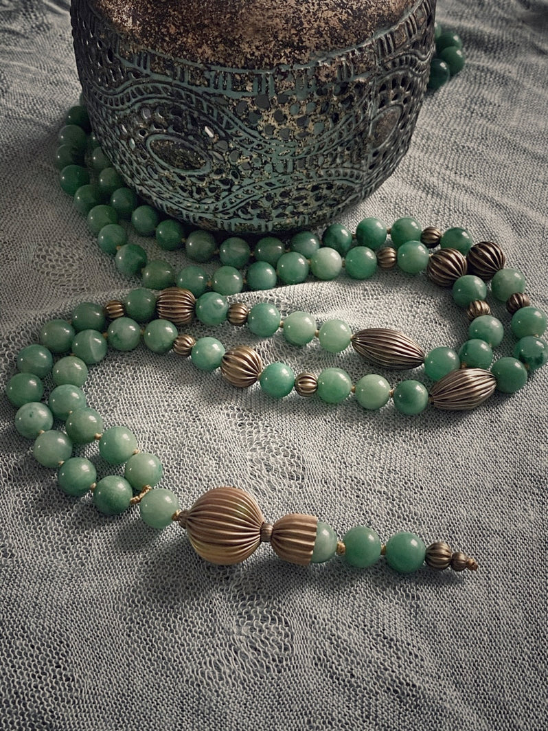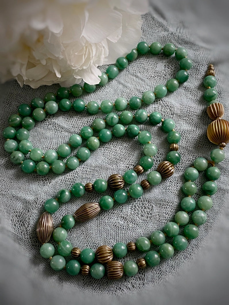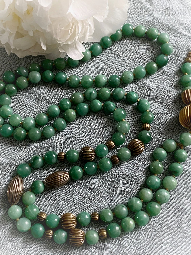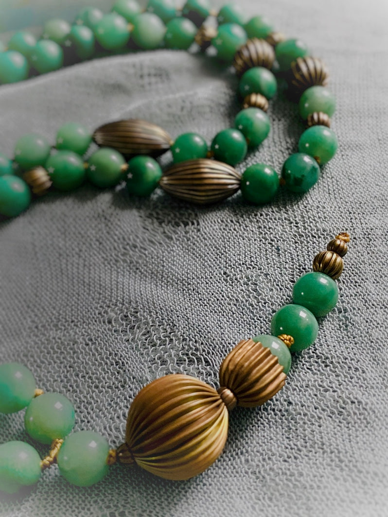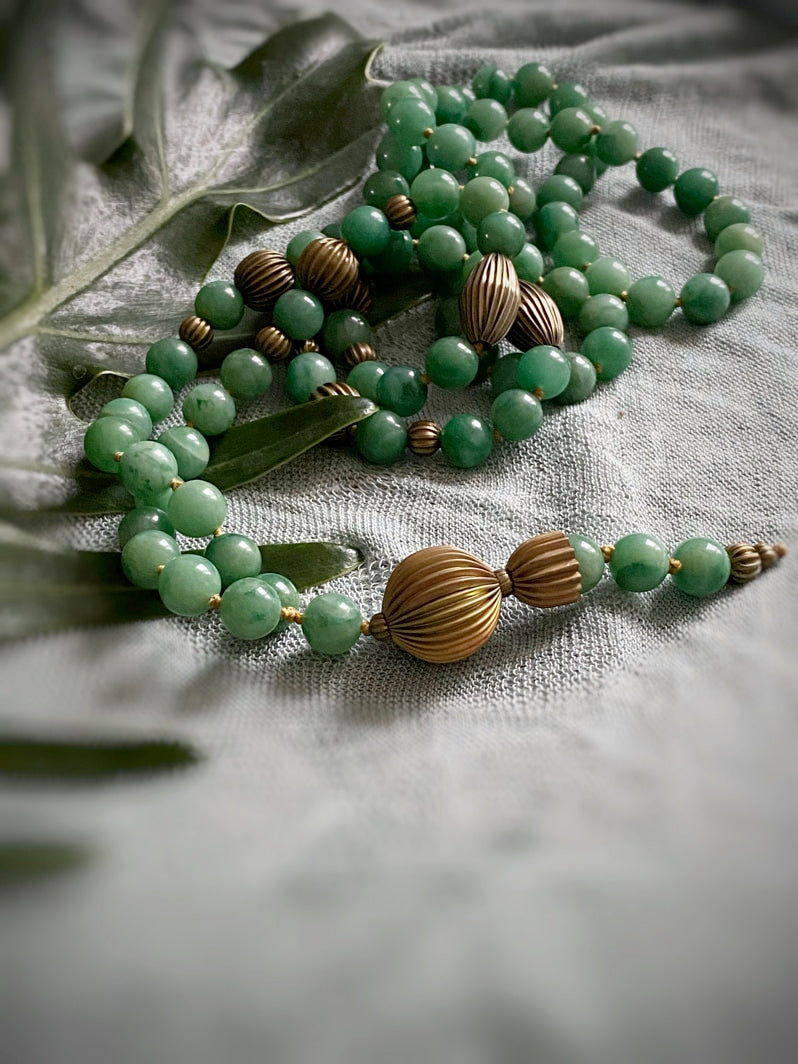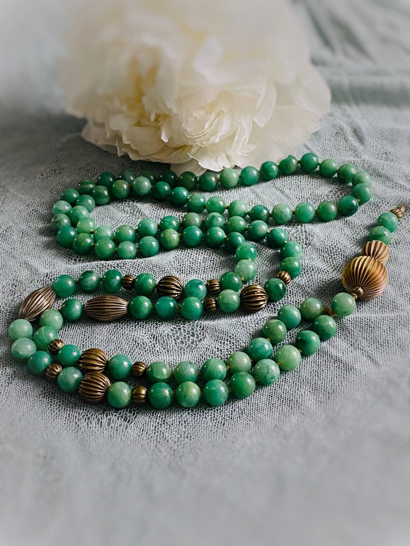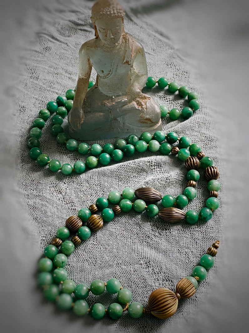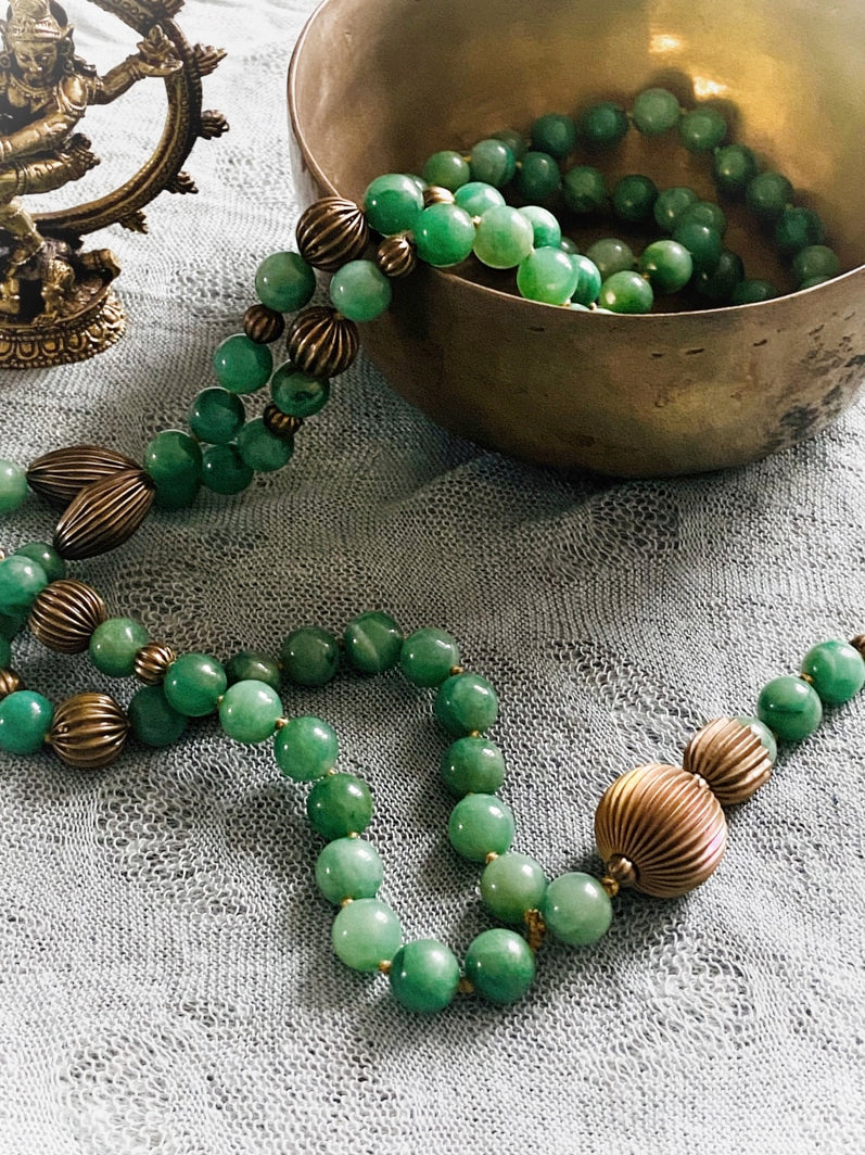 Abschluss: Messing-Perle, Messing-Perlkappe und Verdit-Perlen