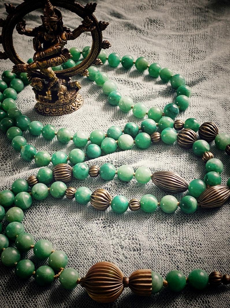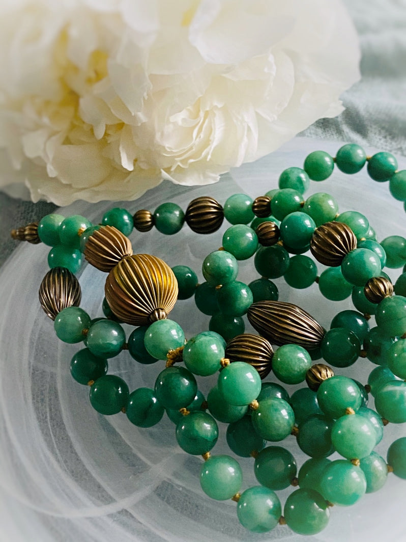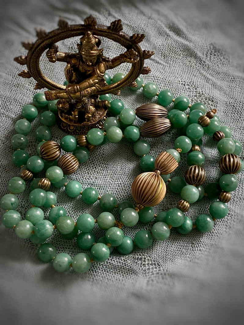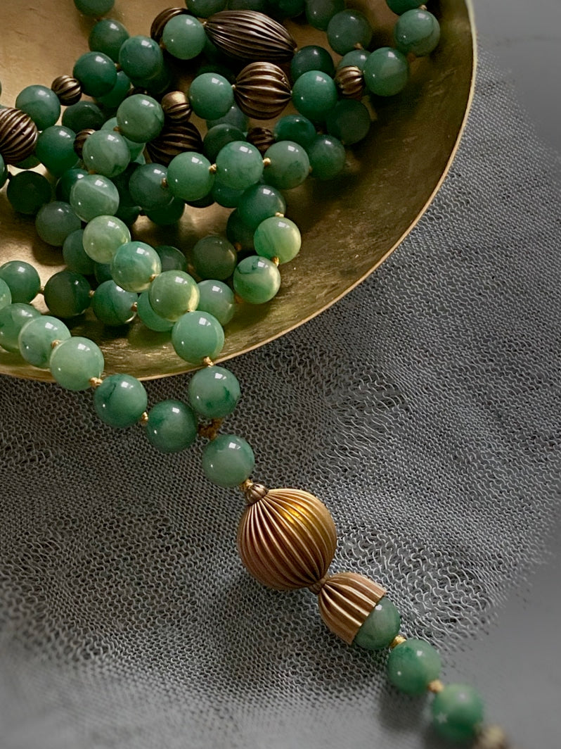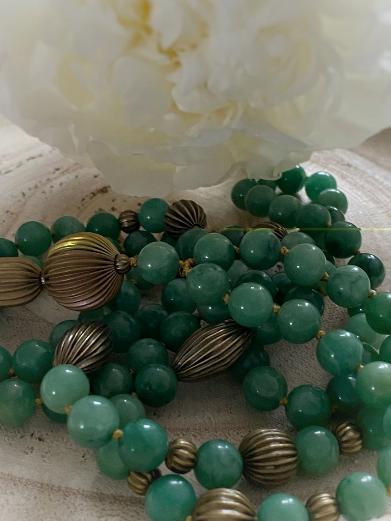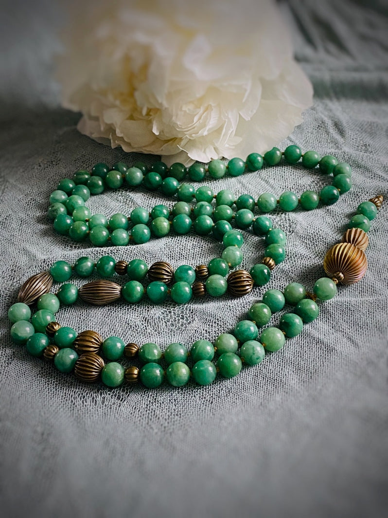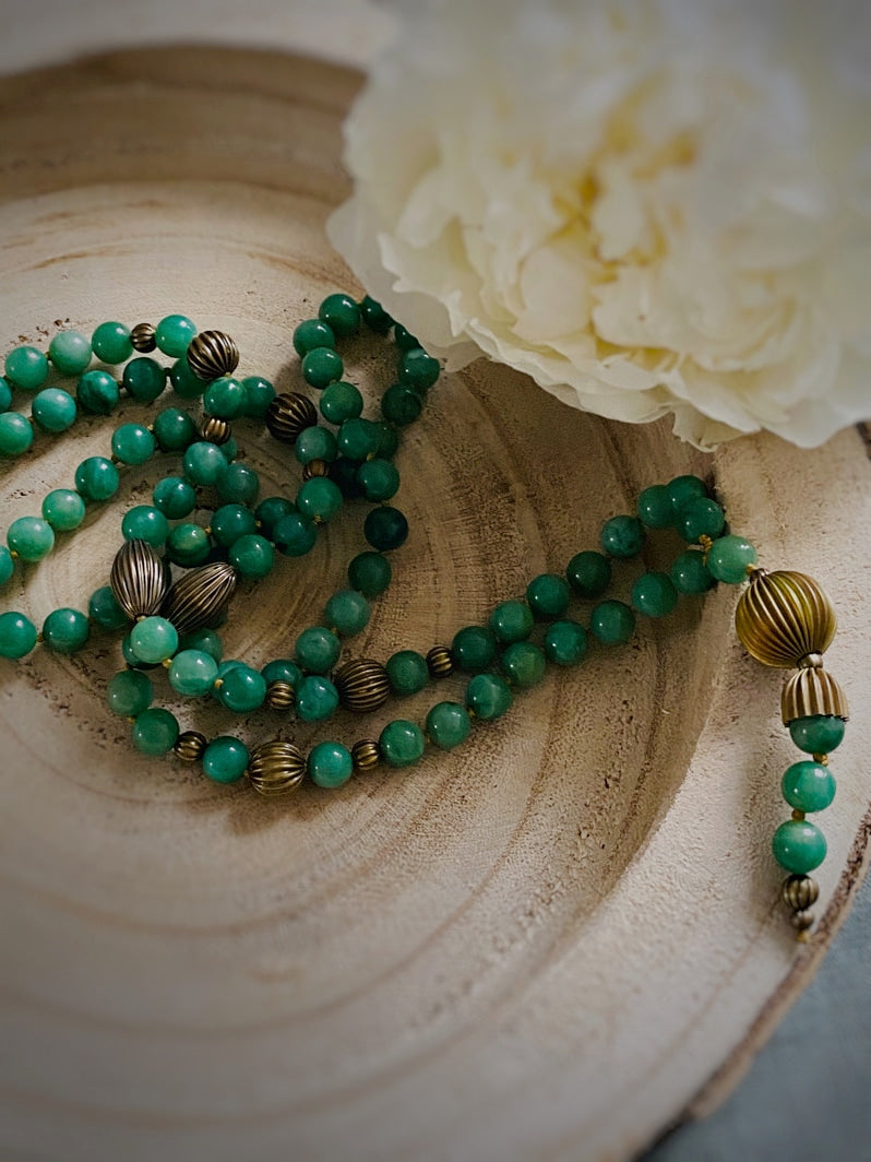 Abschluss: Messing-Perle, Messing-Perlkappe und Verdit-Perlen