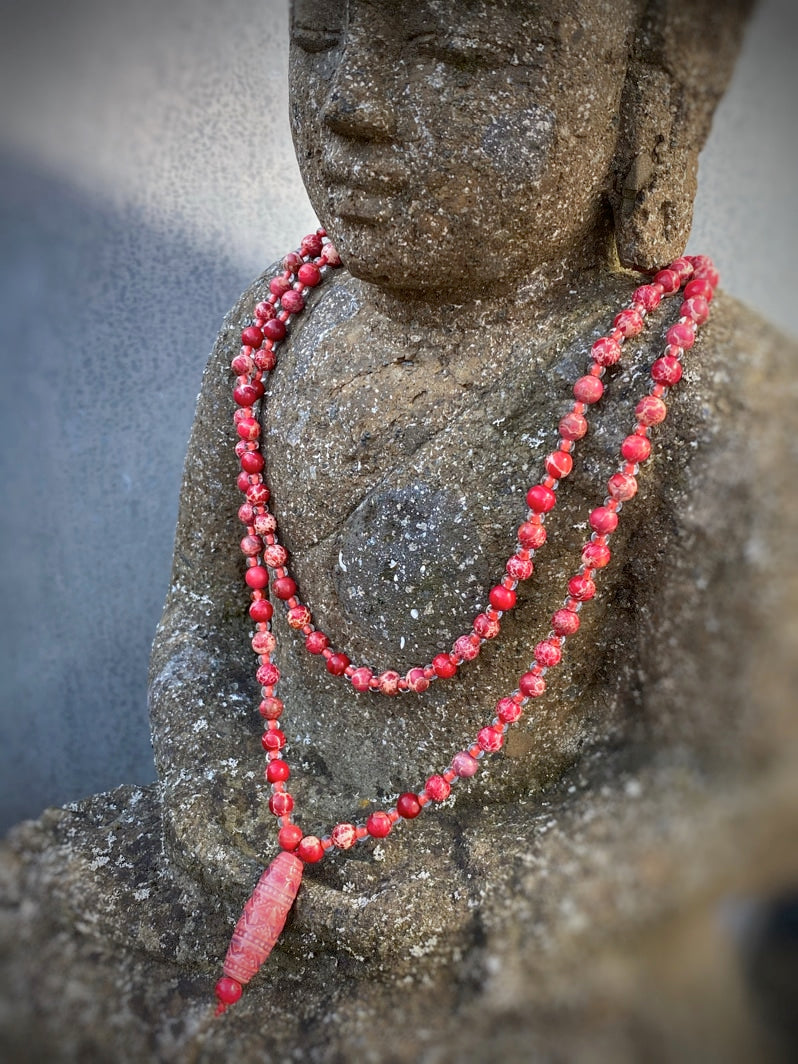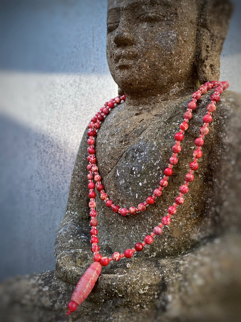 Roter Jaspis bringt innere Harmonie und Zufriedenheit. Er kann von Blockaden befreien, weil er für Verständnis sorgt. Er schützt vor äußeren Einflüssen und gibt Mut. Er stärkt die Willenskraft und in schwierigen Situationen die Konfliktbereitschaft.
