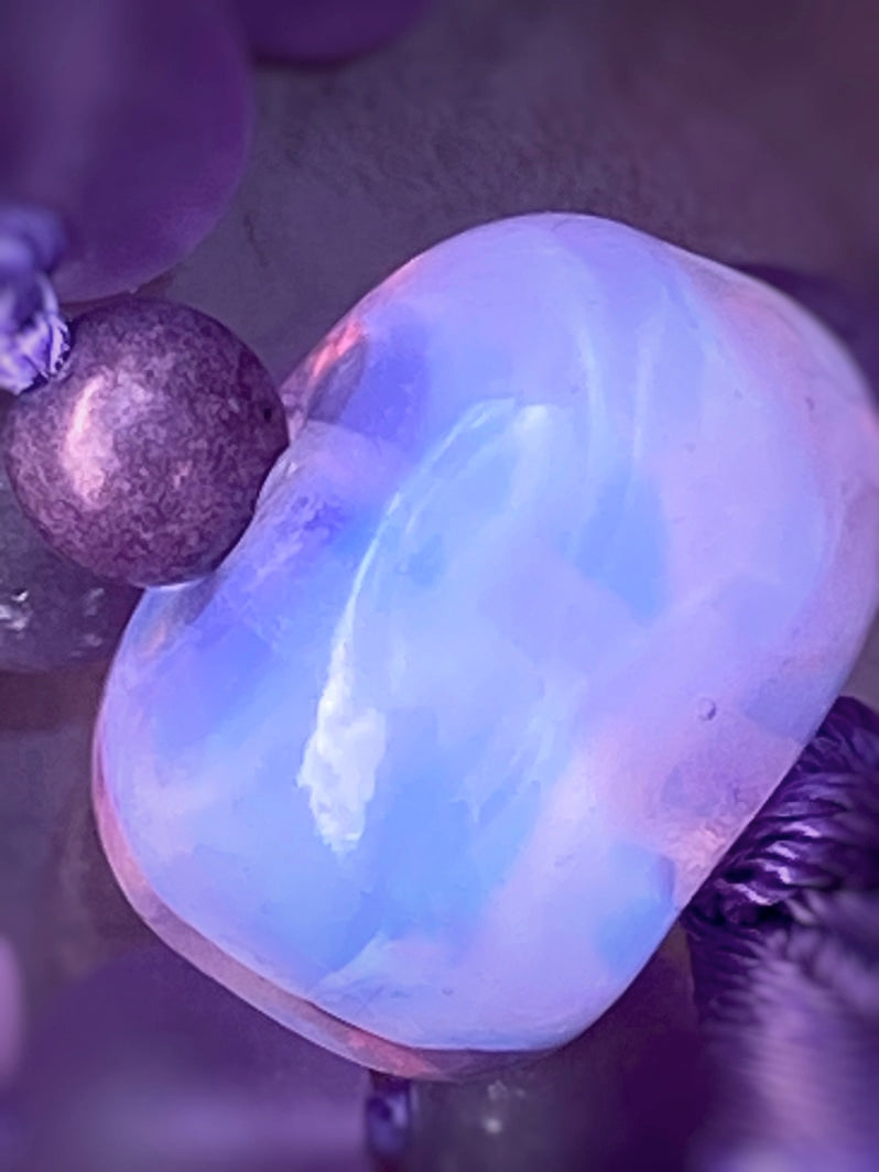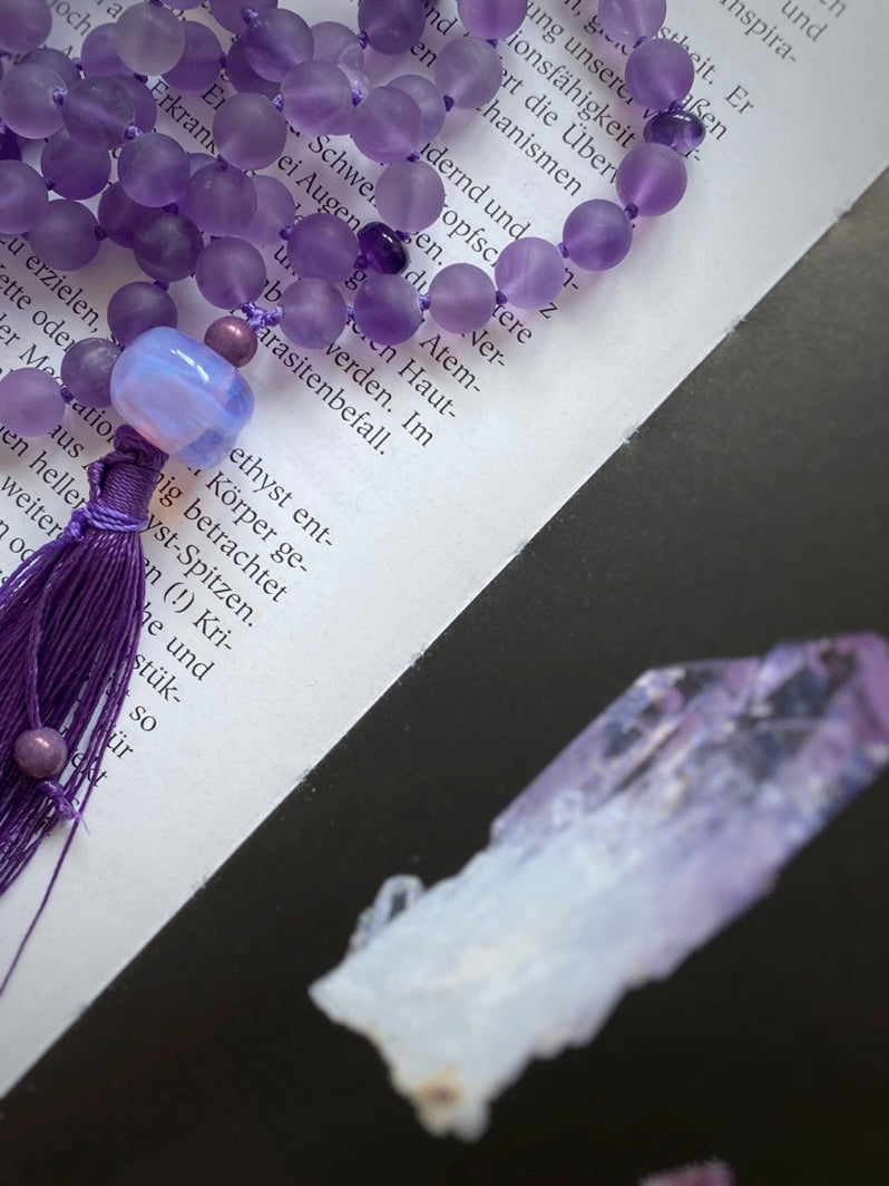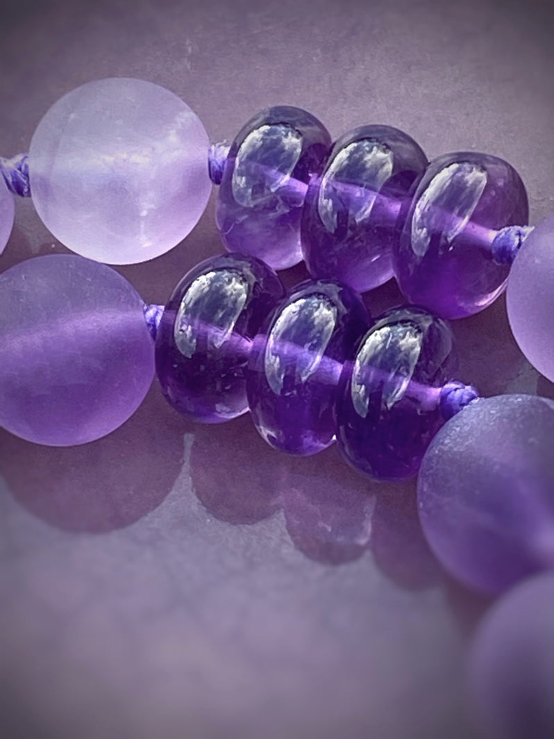 Amethyst ist sehr kraftvoll, reinigend und schützend mit einer hohen spirituellen Vibration. Er wirkt natürlich beruhigend, er unterstützt die emotionale, physische und mentale Balance und reinigt die Aura. Amethyst beflügelt die Phantasie und löst Blockaden.