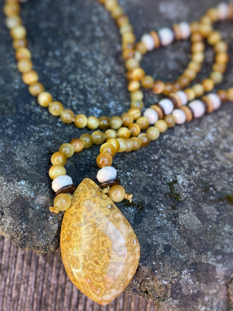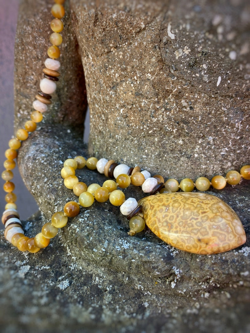 Tigerauge gibt Mut, Schutz und Sicherheit. Es hilft beim Treffen wichtiger Entscheidungen, weil es den Überblick bewahren hilft. Es schützt auch vor den Einflüssen von Stress, Belastungen und Zweifeln. Versteinerte Koralle gibt Kraft und Energie und kann so zu Erfolgen beitragen. Der Stein fördert den Gemeinschaftssinn und Berührungsängste werden abgebaut.
