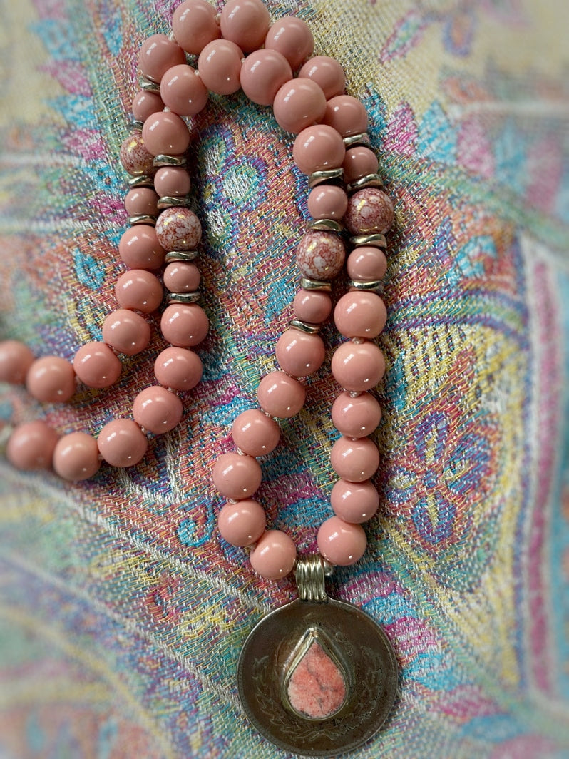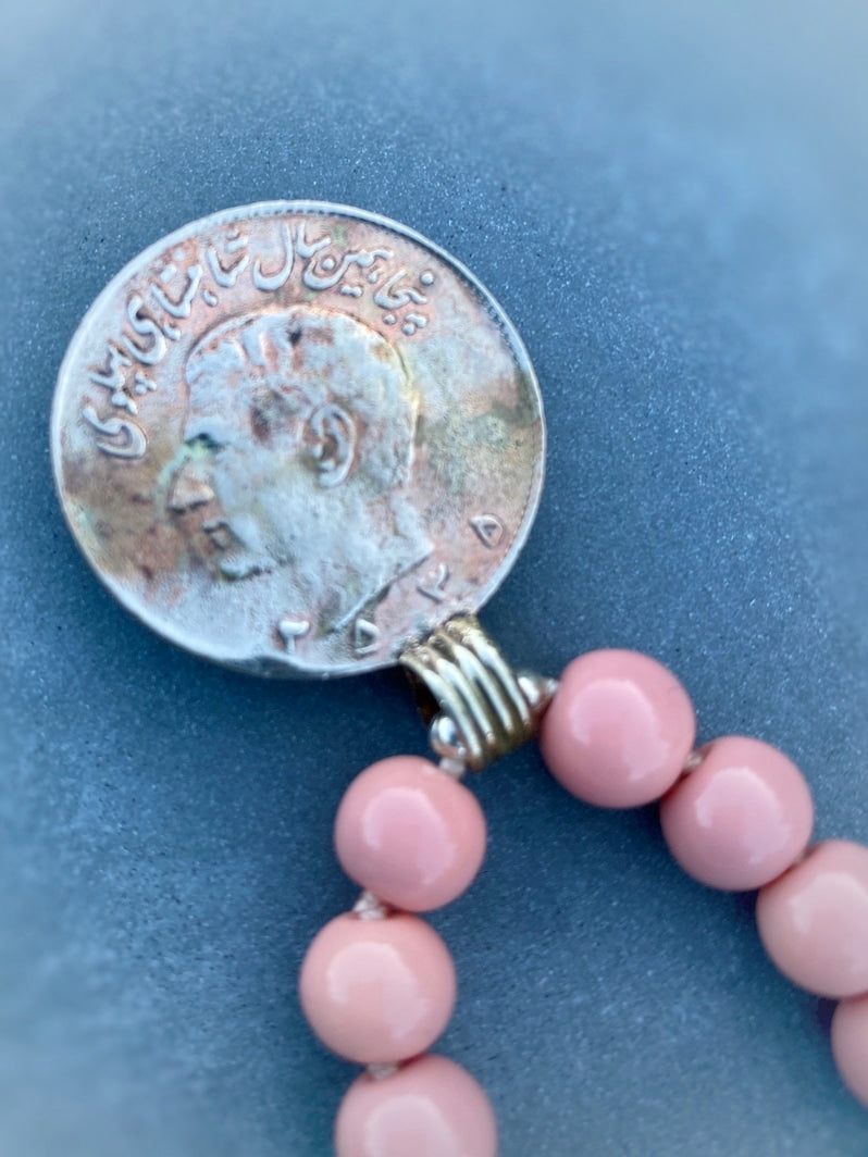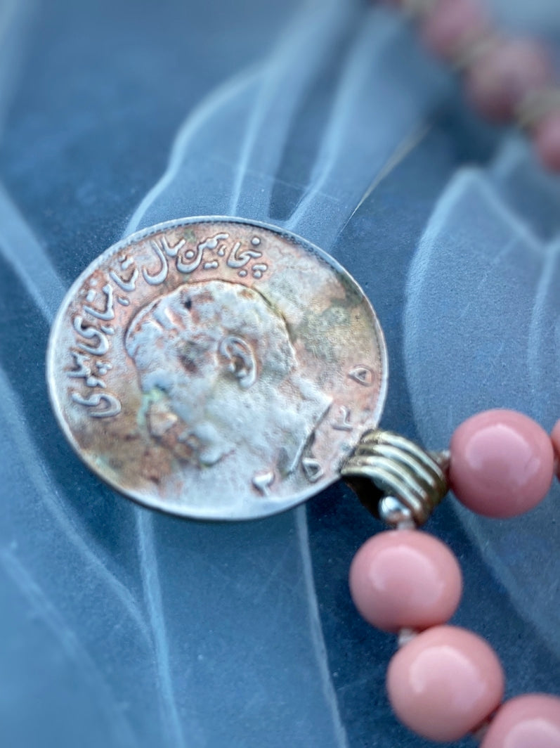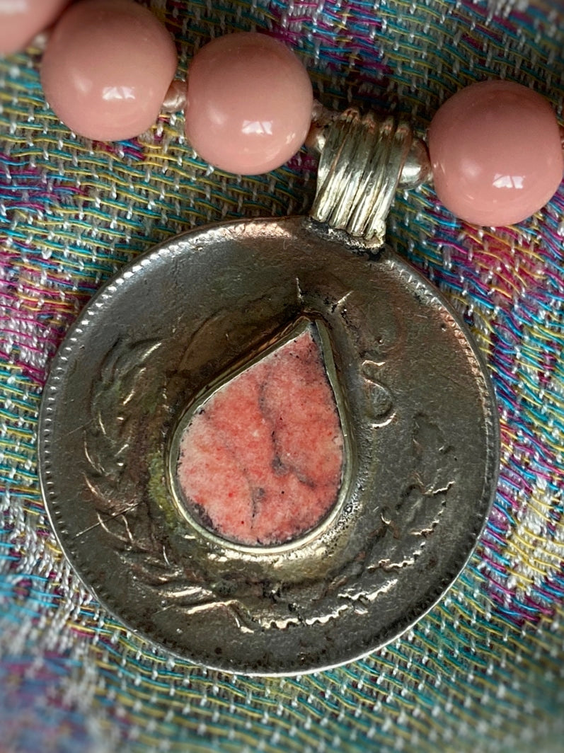 Abschluss: Kuchi-Tribal-Münze mit rosa Achattropfen