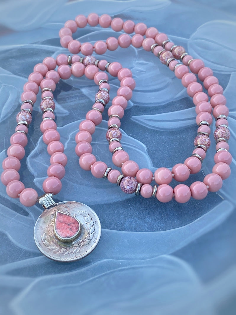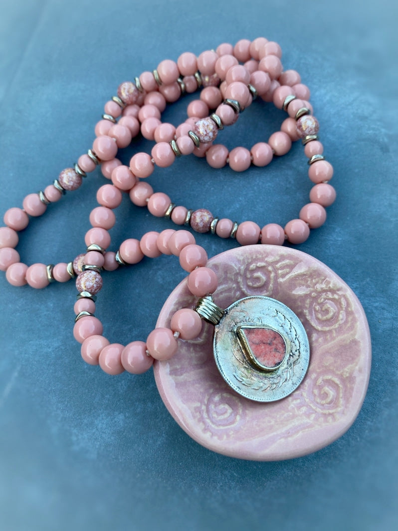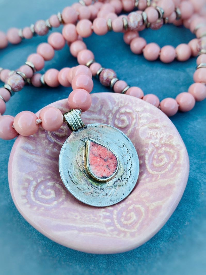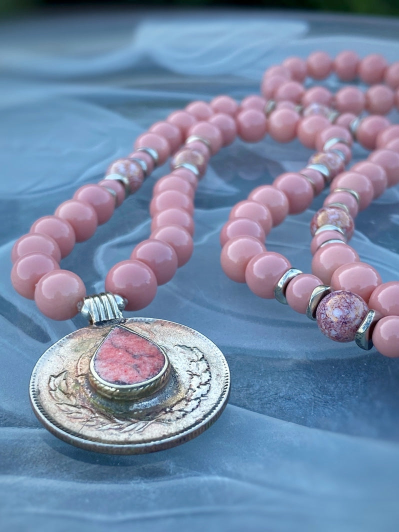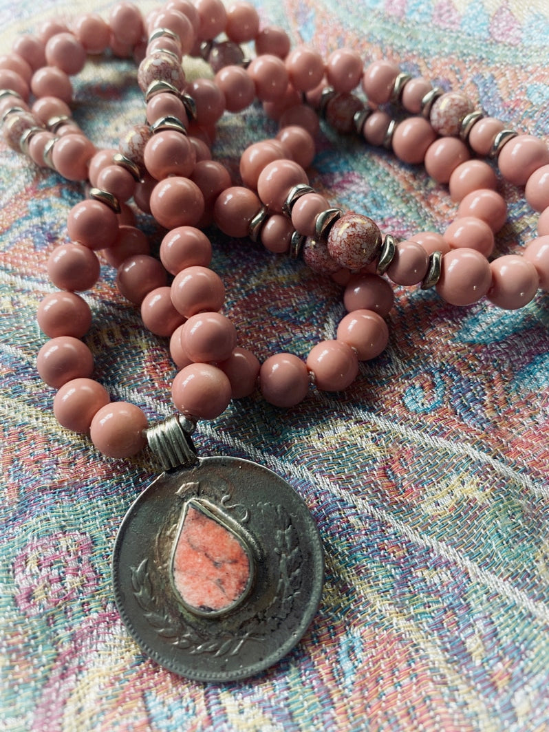 Abschluss: Kuchi-Tribal-Münze mit rosa Achattropfen