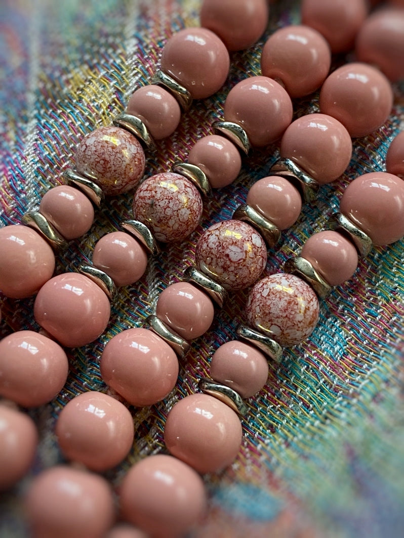 Marker: Altrosa lackierte Glasperlen, 6mm mit marmorierten böhmischen Glasperlen