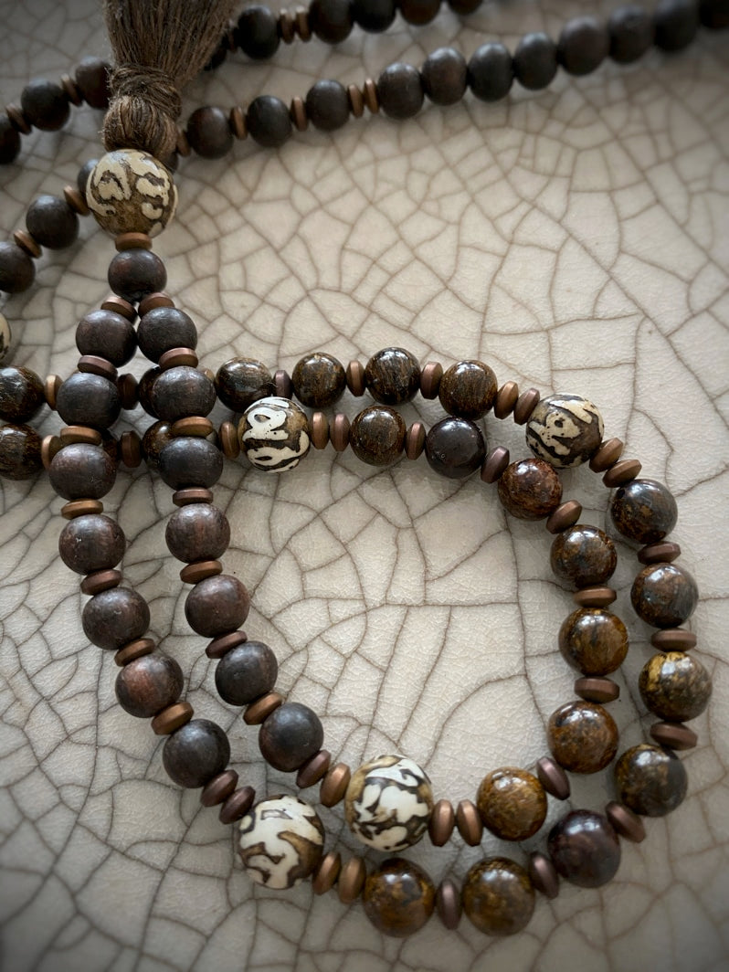 Perlen: Dunkelbraunes Greywood 6mm, Bronzit 6mm