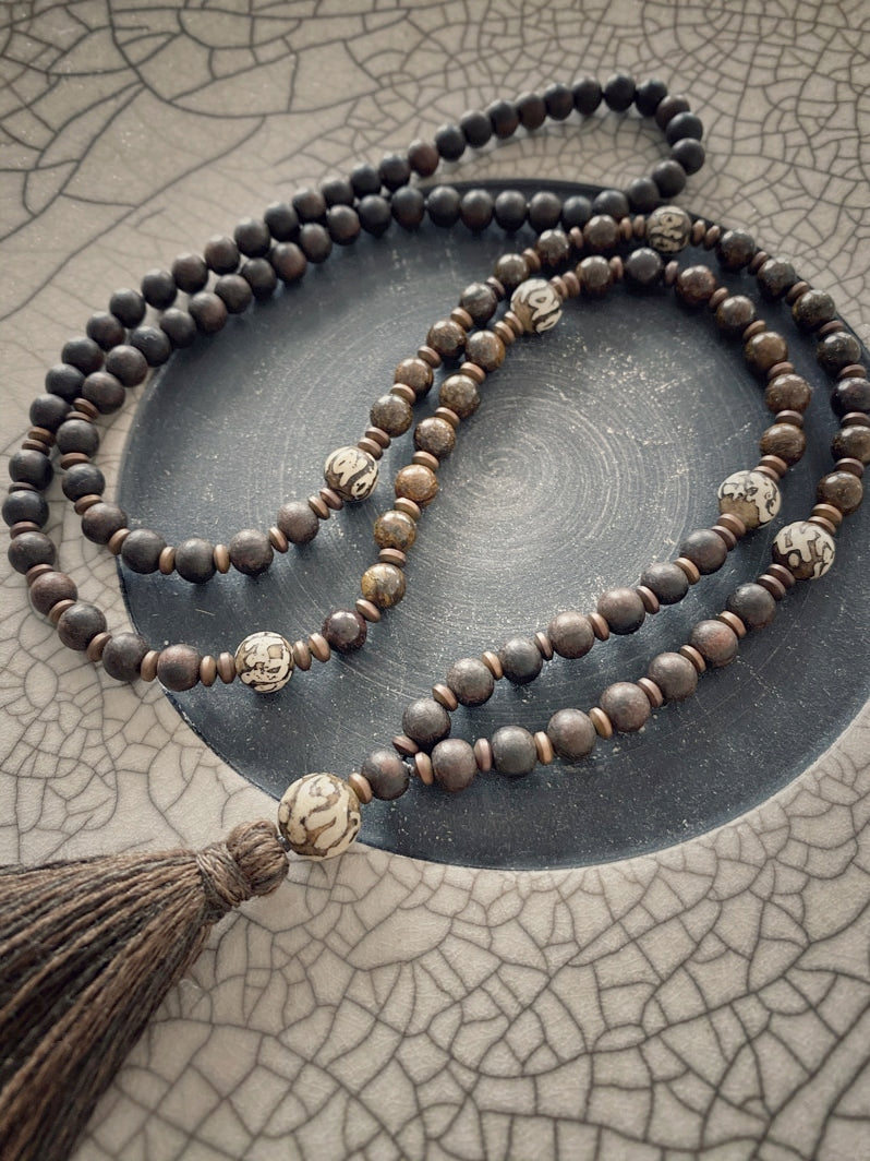 Abschluss: Tibetische Mantraperle und Leinen-Seiden-Quaste