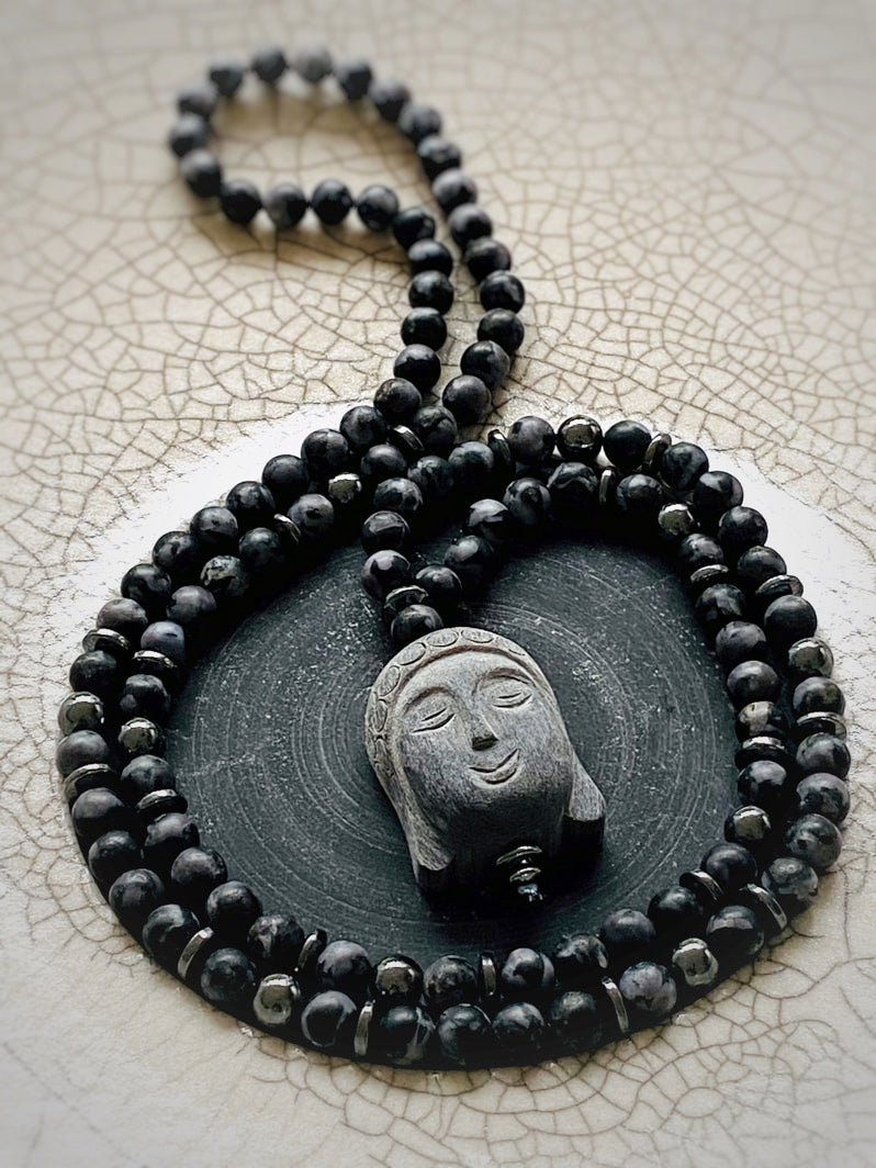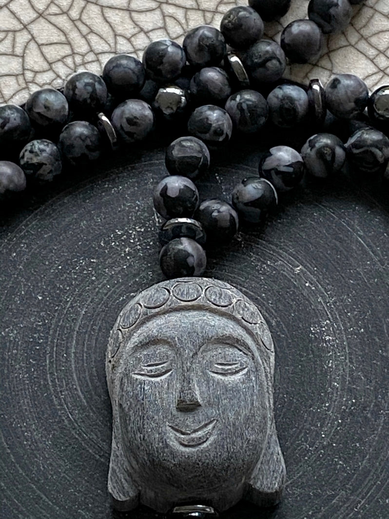 Abschluss: Handgeschnitzter Buddha-Anhänger aus Grauholz
