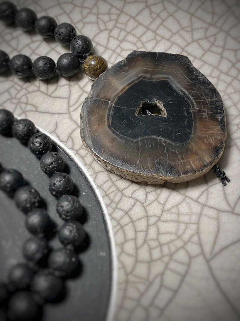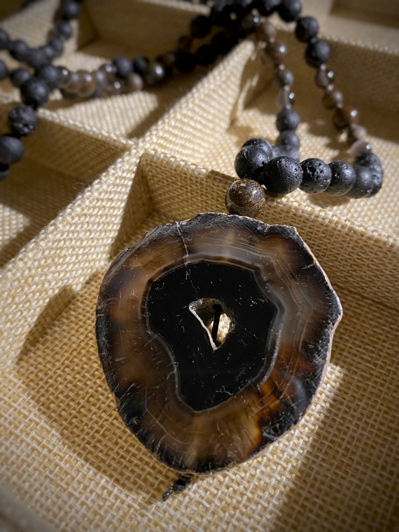 Lava verbindet Erd- und Feuerelement, bringt das Feuer aus dem Inneren ins Außen. Rauchobsidian (Apachenträne) lässt Ängste weichen und baut Stress und innere Unruhe ab. Er macht Platz für Heiterkeit, Optimismus und Lebensfreude. Außerdem wird diesem Stein eine besondere spirituelle Wirkung nachgesagt, die Inspiration und Intuition stärkt. Bronzit wirkt anregend und belebend. Er stärkt die Konzentration, besänftigt das Gemüt und verleiht innere Ruhe und Gelassenheit. Hämatit spendet Mut, schenkt Lebenskraft und Lebensfreude. Auch Spontanität, Selbstständigkeit, Entspannung und Entschlossenheit werden gesteigert. So trägt er zu mehr Lebensqualität bei. Achat ist ein wichtiger Schutzstein - er schützt vor negativen Einflüssen und trägt so zur inneren Ausgeglichenheit bei.