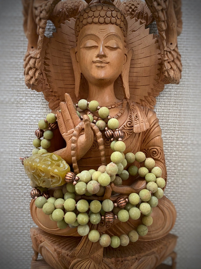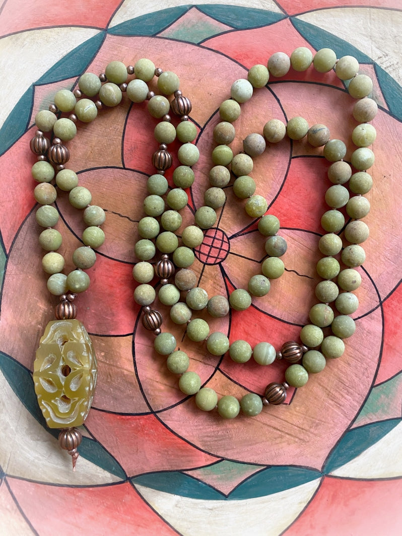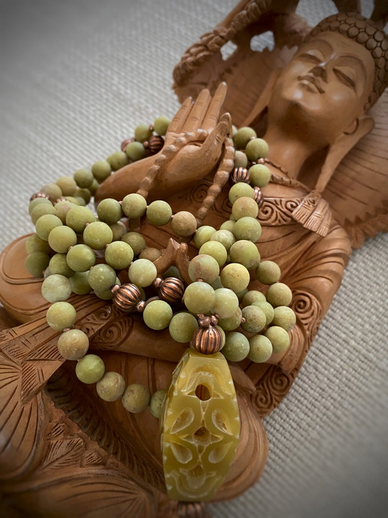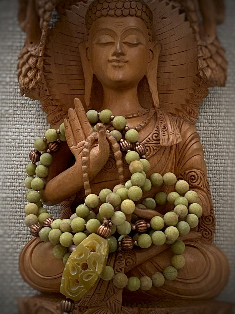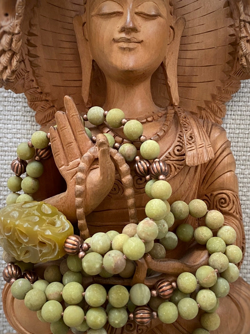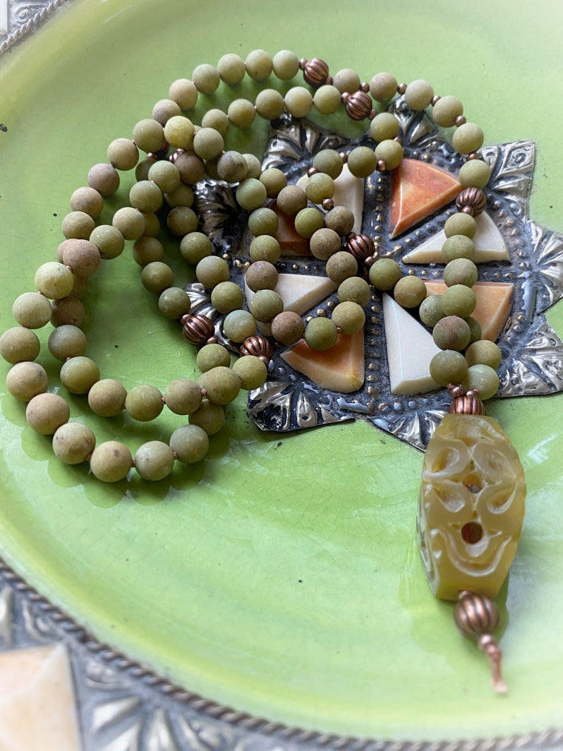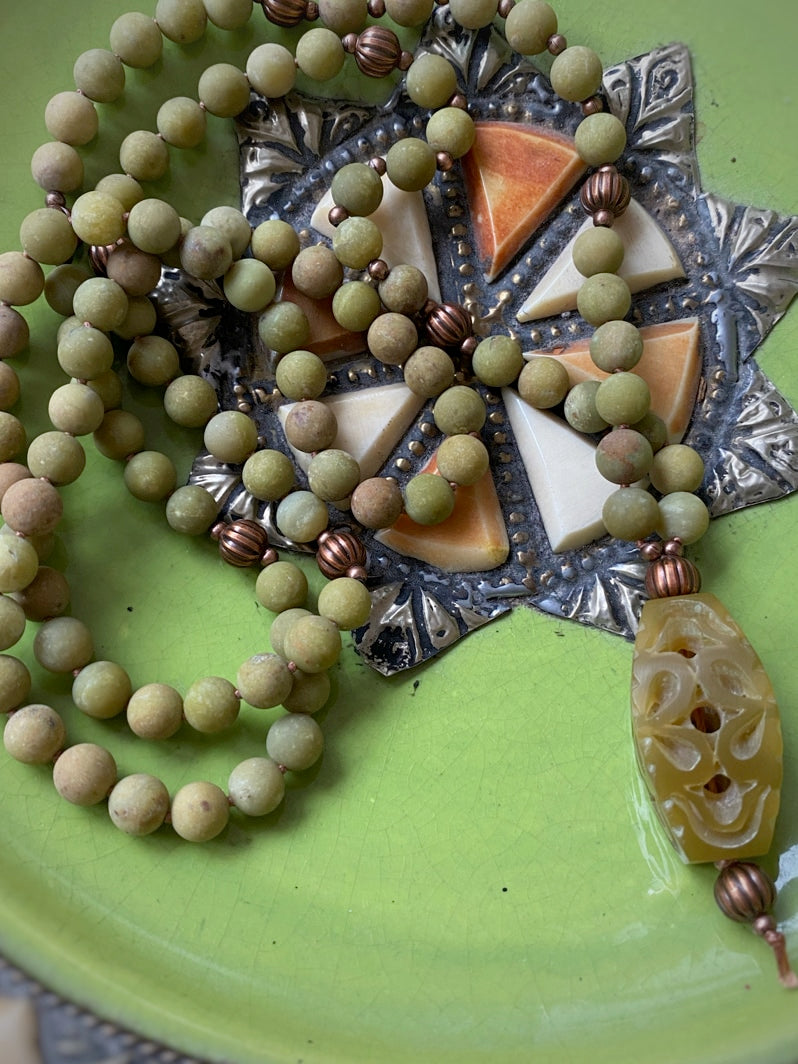 Abschluss: Filigraner handgeschnitzter olivgrüner Eye-Catcher