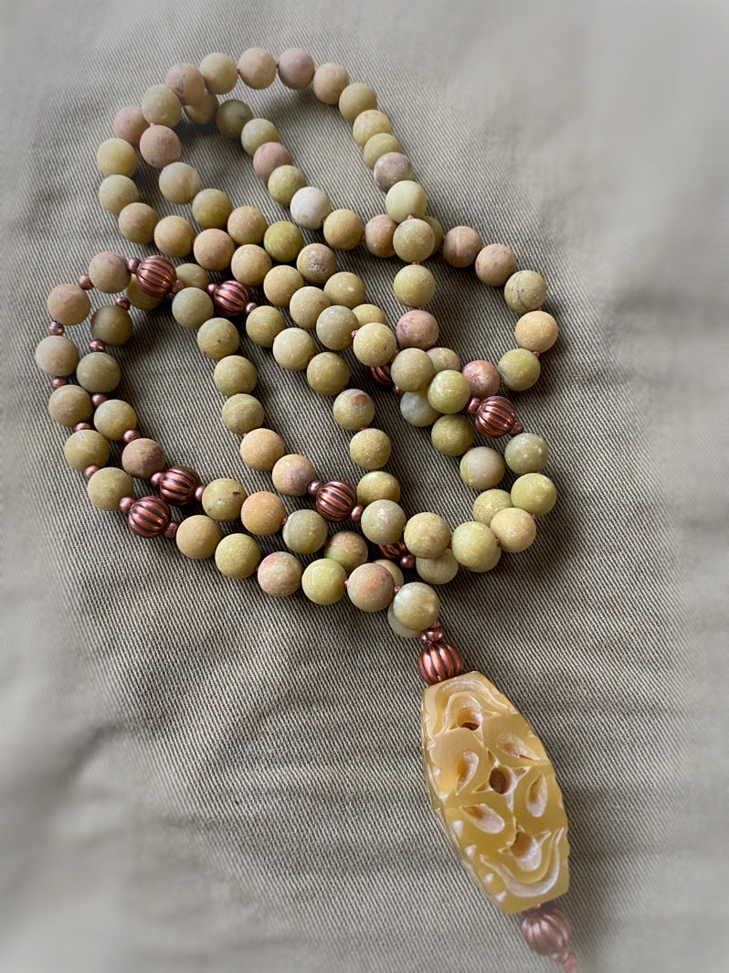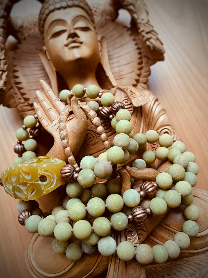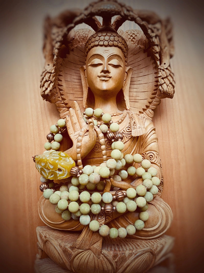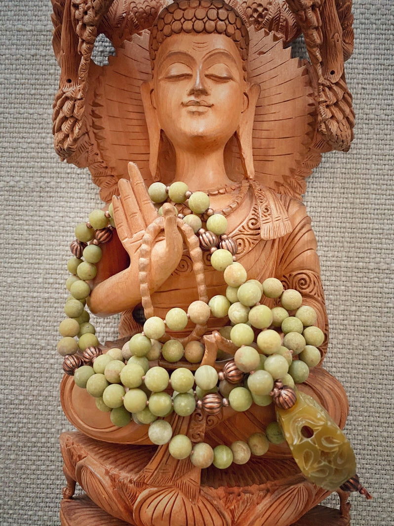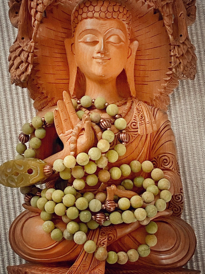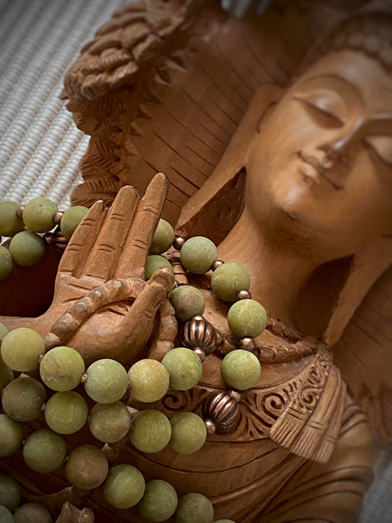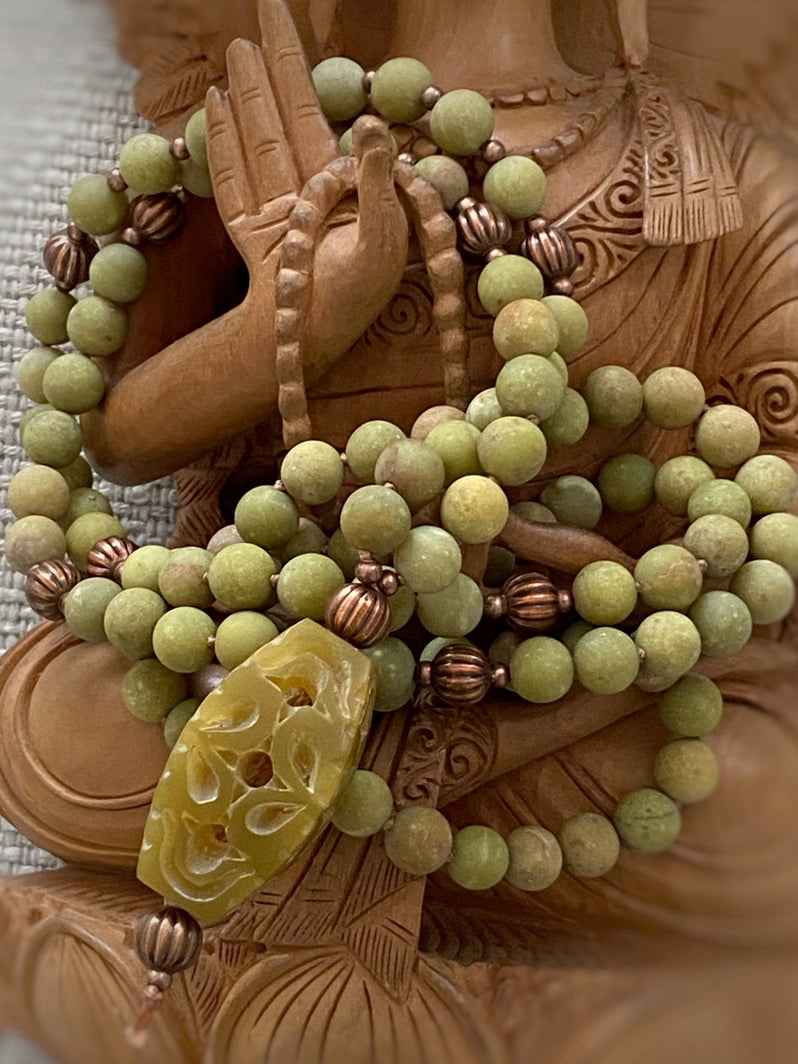 Abschluss: Filigraner handgeschnitzter olivgrüner Eye-Catcher