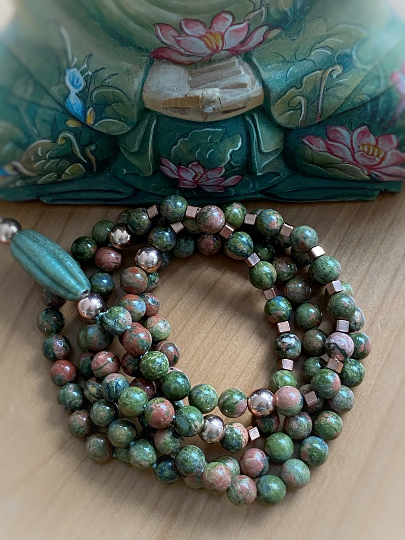 Epidot in grünen und rosafarbenen Farbtönen hilft, sich psychisch zu erholen und fördert dadurch die geistige Leistungsfähigkeit. Er kann Kummer und Selbstmitleid vertreiben. Außerdem macht er geduldiger. Eigene Vorstellungen und Ziele werden leichter umsetzbar. Der Epidot hilft, sich gesellschaftlich einzubringen und kann so auch Einsamkeit vorbeugen.