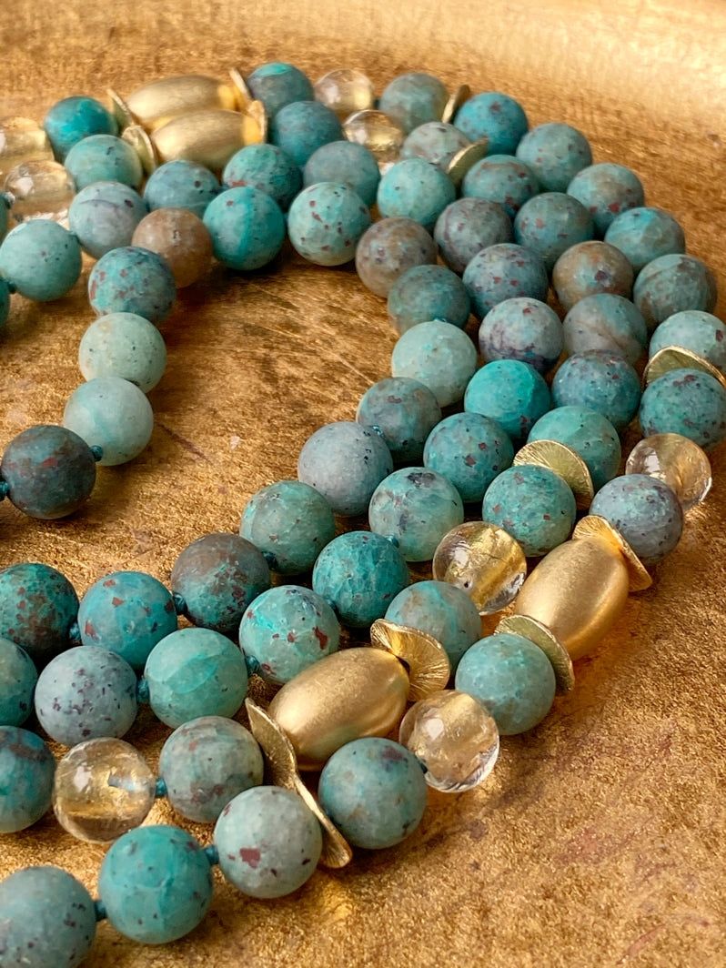 Chrysokoll ist ein wunderbarer Stein für Ausgeglichenheit. Er wirkt beruhigend auf die Nerven und lindert übermäßige Anspannung und verringert Stress. So besänftigt er auch das Gemüt und kann Zorn oder auch Hass reduzieren. Chrysokoll schenkt Herzlichkeit, Geduld, Toleranz und Gelassenheit. Außerdem hilft der Heilstein in notwendigen Situationen einen kühlen Kopf zu bewahren. Durch eine gesteigerte Intuition lassen sich Entscheidungen besser treffen.