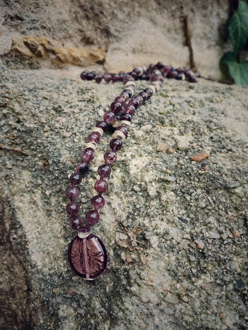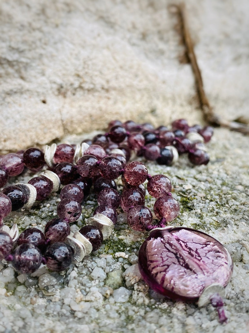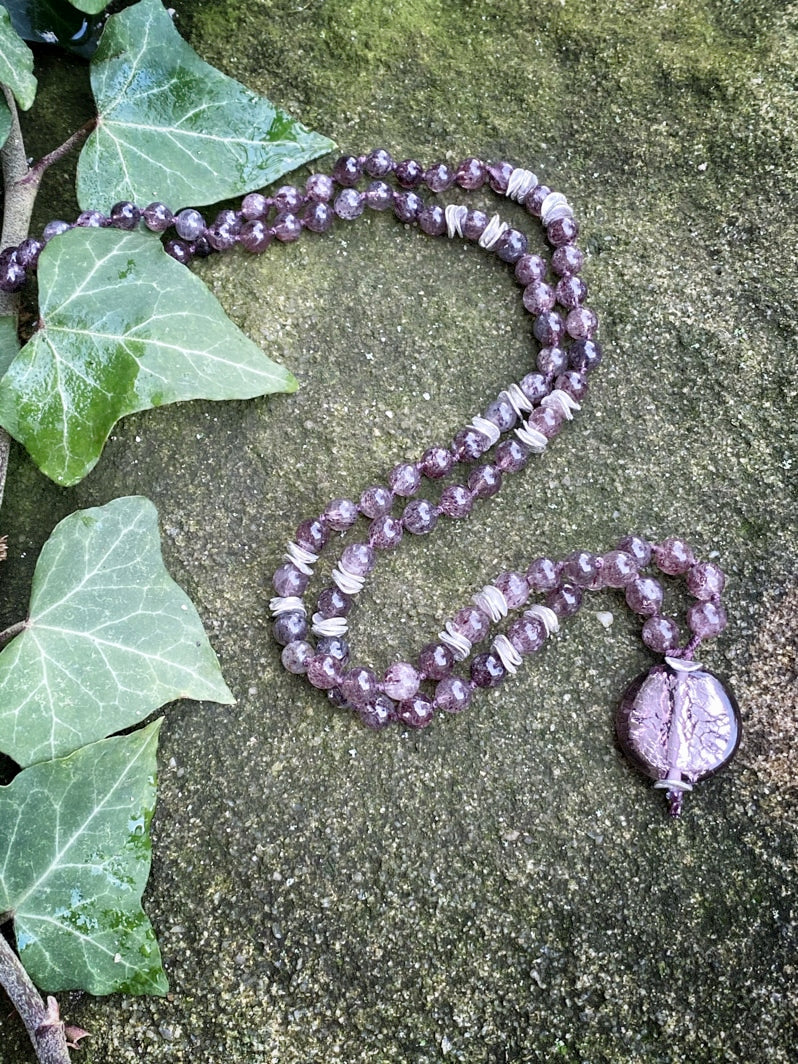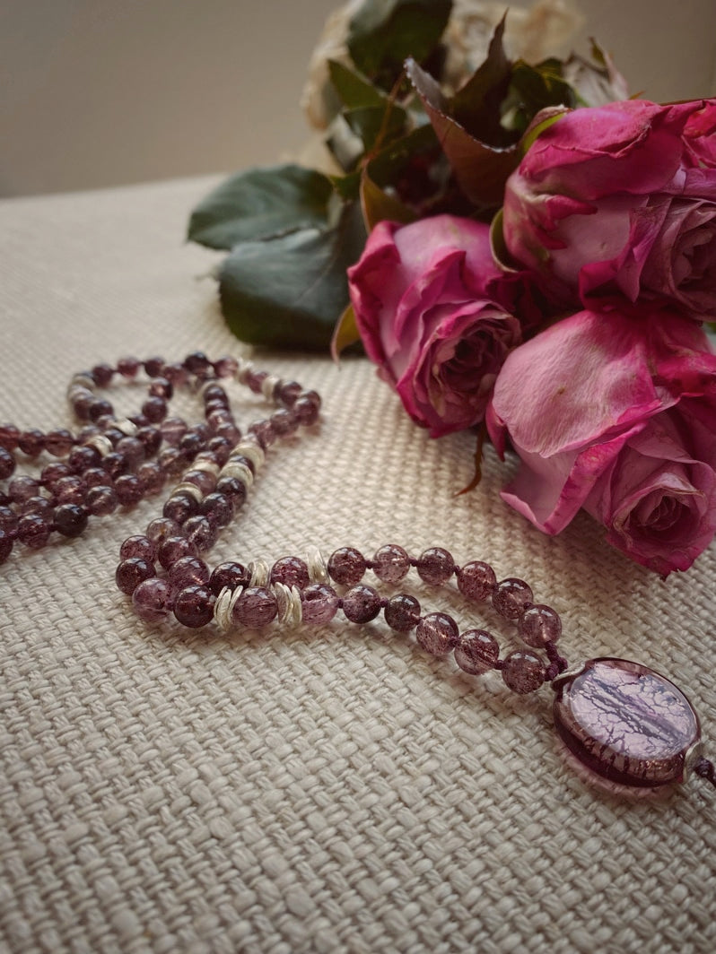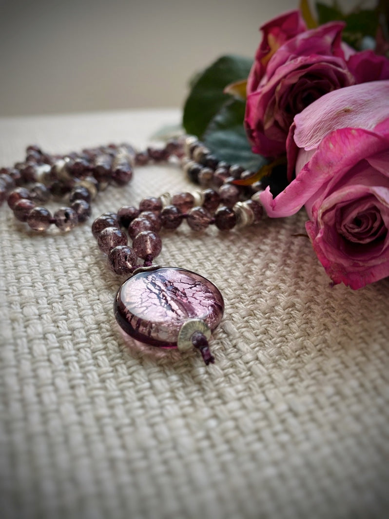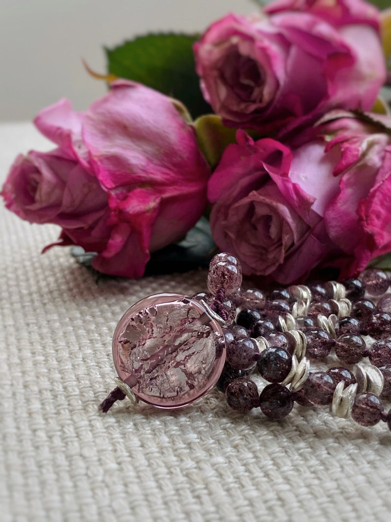 Abschluss: Böhmisches Glasfolien-Medaillon in schönstem Lila