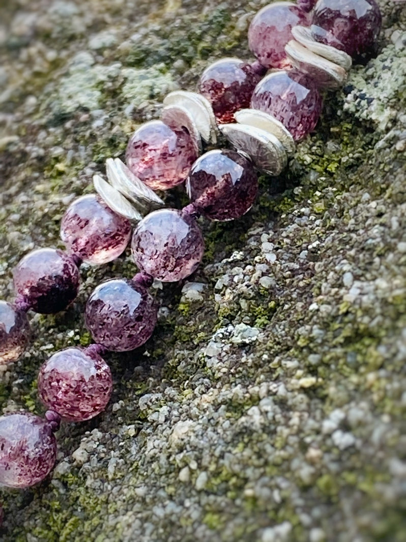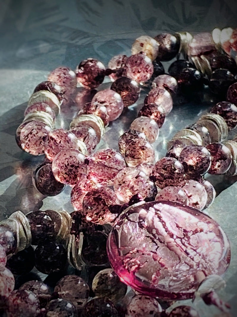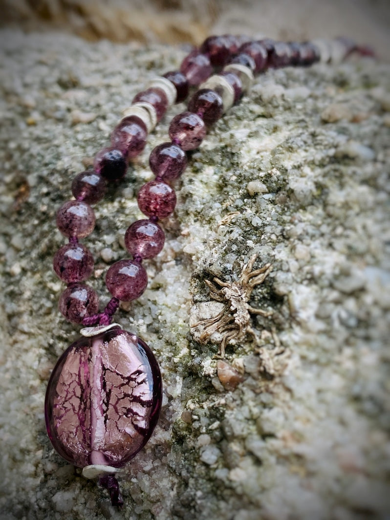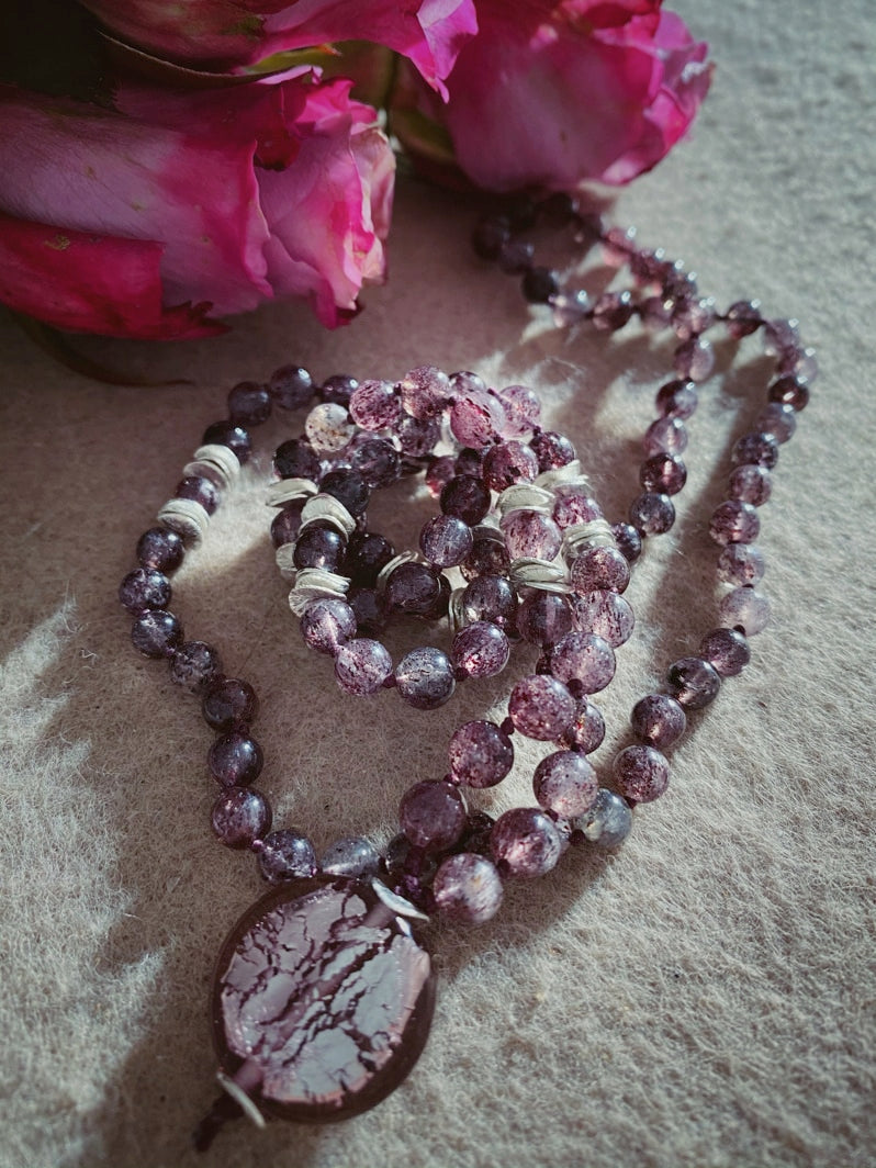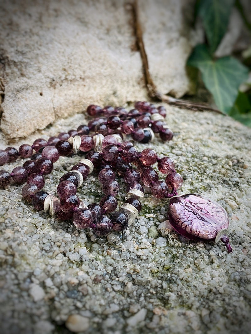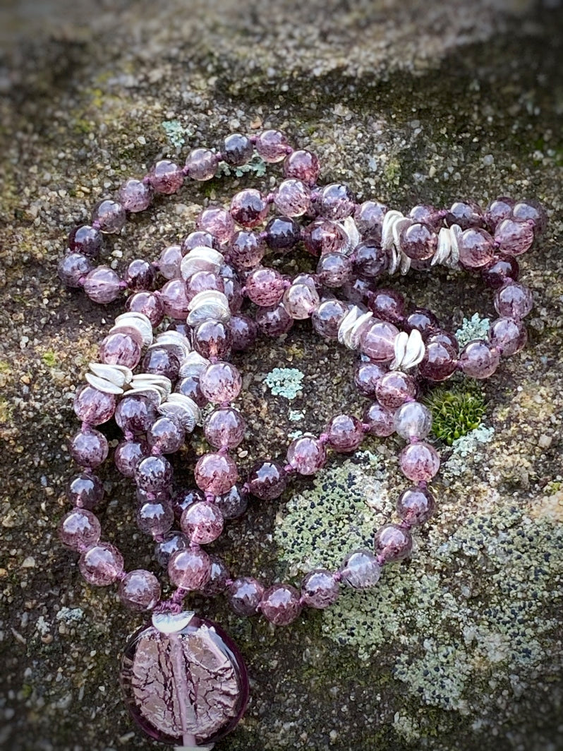 Abschluss: Böhmisches Glasfolien-Medaillon in schönstem Lila