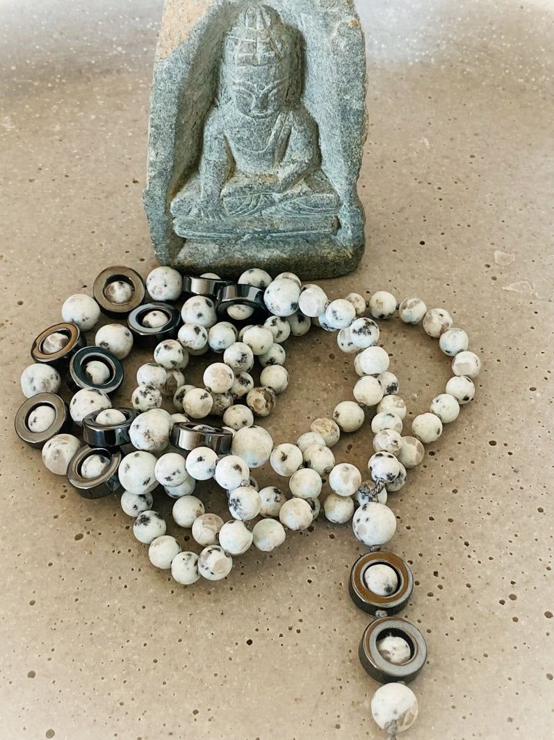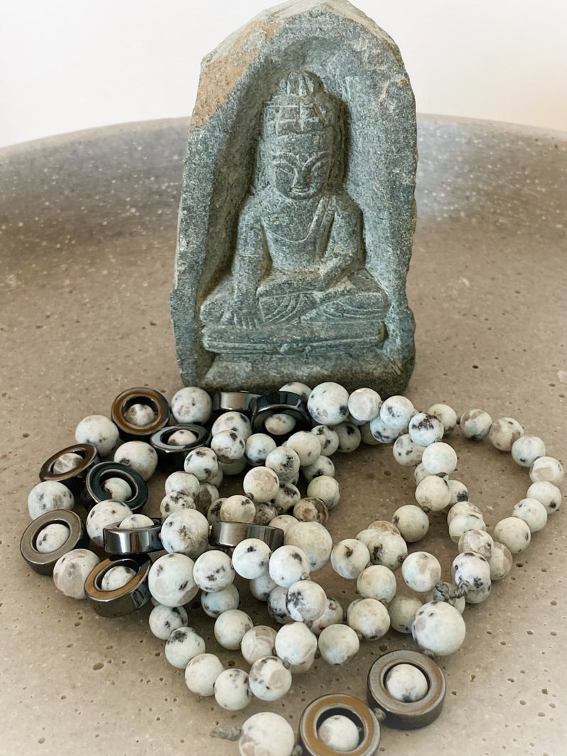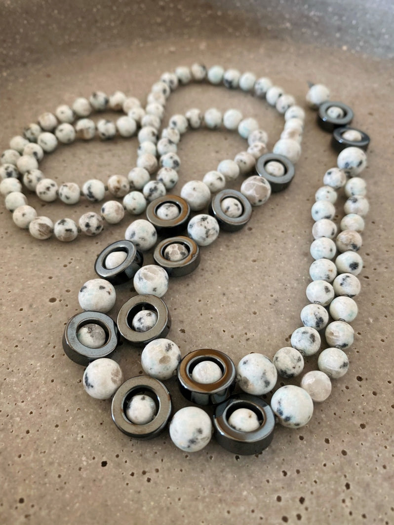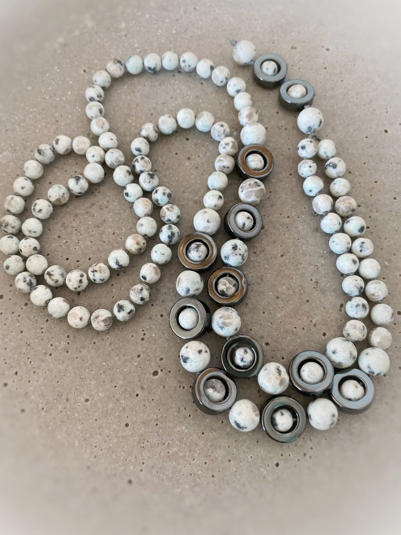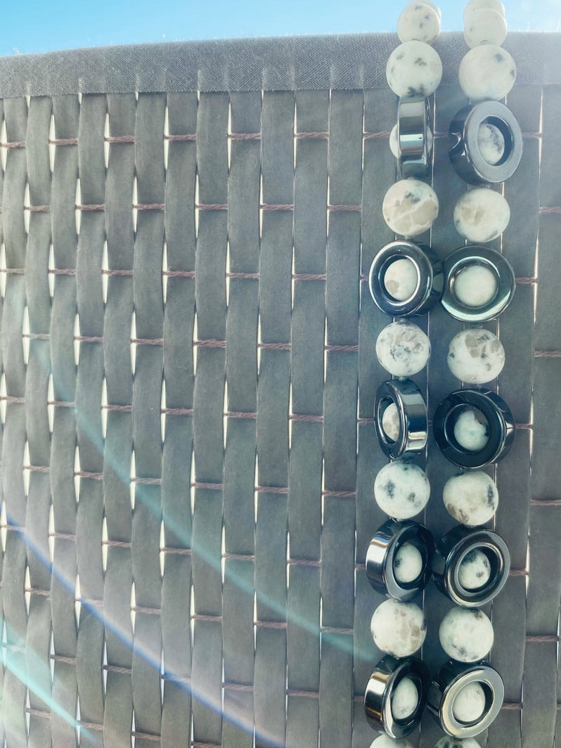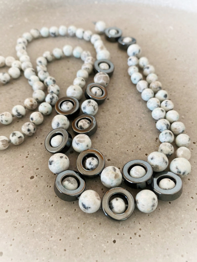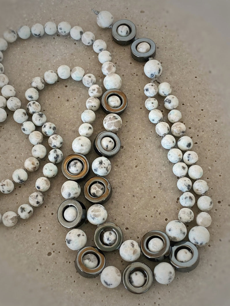 Abschluss: Hämatit-Rahmenringe mit Sky Mountain Blue Jaspis 6mm
