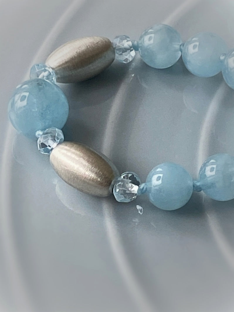Marker: Versilberte gebürstete Oliven 6mm, Aquamarin 8mm