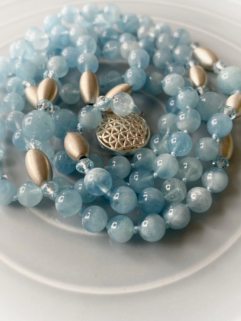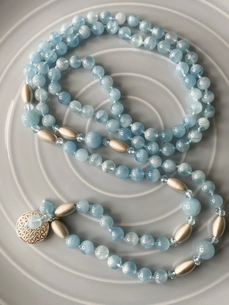 Mala mit wunderschönen himmelblauen Aquamarinperlen...