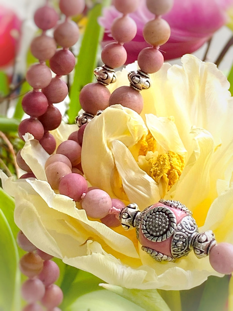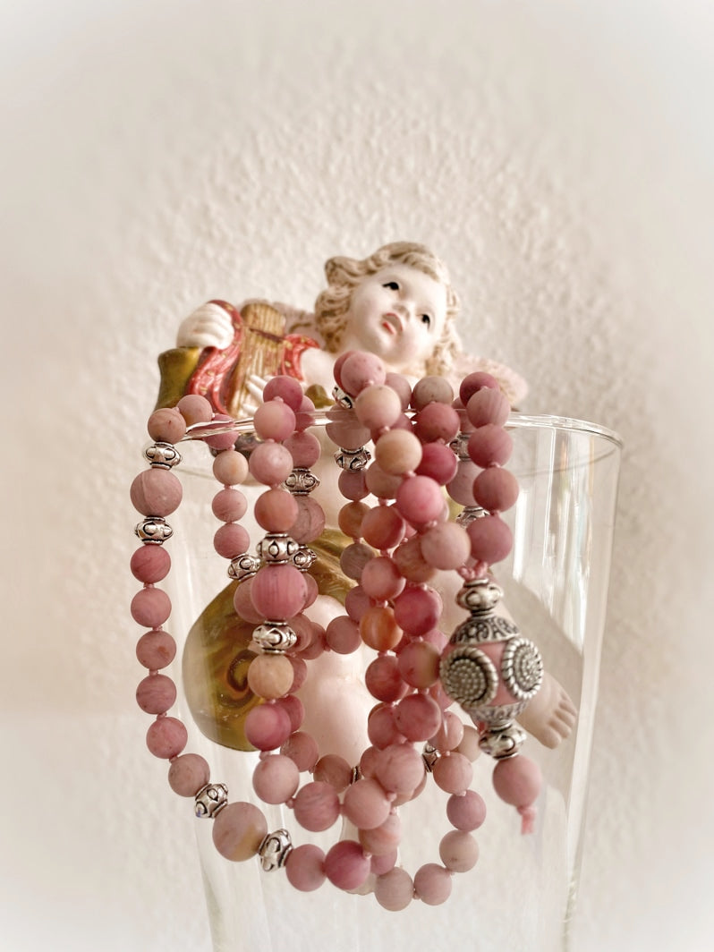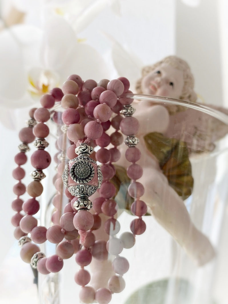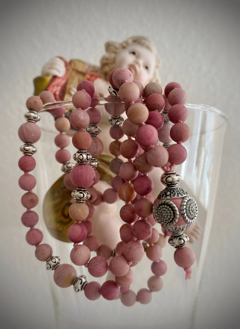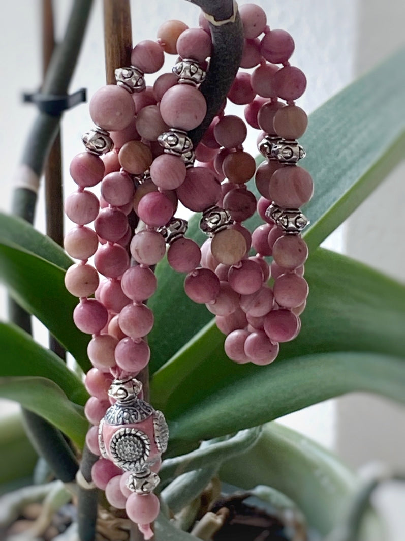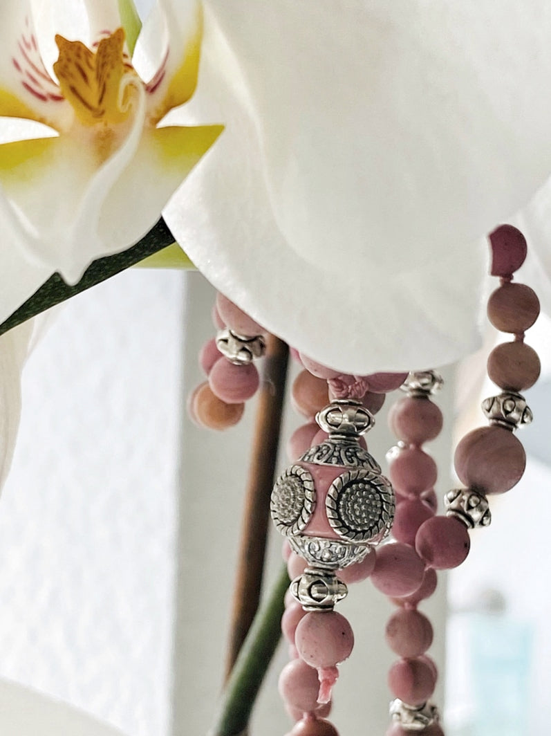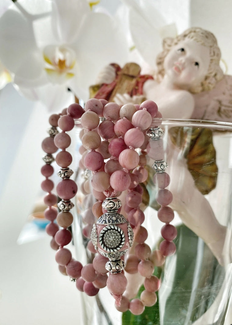 Rhodonit soll unsere Emotionen ins Gleichgewicht bringen können, in dem er unser Herzchakra stärkt - so soll er unsere Liebe nähren, uns menschlicher werden lassen, unser Vertrauen stärken, uns Herzenswärme schenken. Dem Rhodonit wird nachgesagt, dass er uns die Kraft gibt, Veränderungsprozesse gut zu bewältigen. Er schenkt Lebensfreude, Zuversicht und Offenheit für neue Lebensabschnitte. So kann man aus jeder Situation das Beste machen. Rhodonit ermöglicht auch in gefährlichen Situationen gelassen zu reagieren und Ruhe zu bewahren. Genauso soll er auch hilfreich sein, Schocks und traumatische Erlebnisse aus der Vergangenheit seelisch besser verarbeiten zu können. Rhodonit soll unterstützen, sich gegen ungerechtfertigte Kritik behaupten zu können und gleichzeitig sich selbst gegenüber ehrlich zu sein und sich seinen Fehlern stellen zu können. Er wirkt ausgleichend auf Stimmungsschwankungen. Er wandelt Resignation und Groll in Optimismus und Tatkraft. Er stärkt das Verständnis für Mitmenschen und hilft zu Verzeihen.