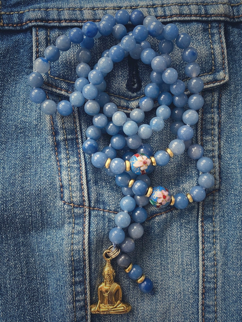 Mala mit Cloisonné-Lotusperlen und Buddha