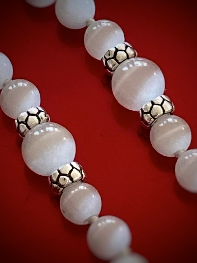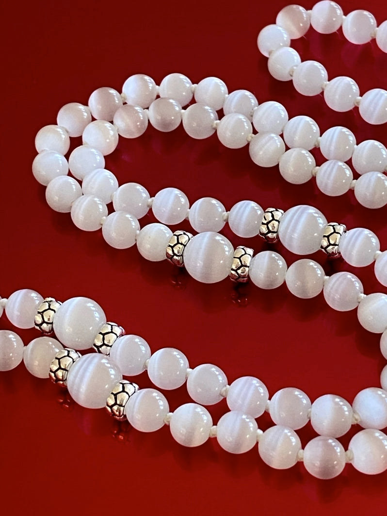 Selenit (auch Katzenauge genannt) wird nachgesagt, dass er für geistige Stabilität und Konzentration sorgt. Er soll auch die Kreativität fördern und die Vitalität steigern.